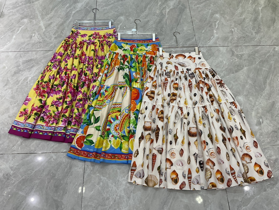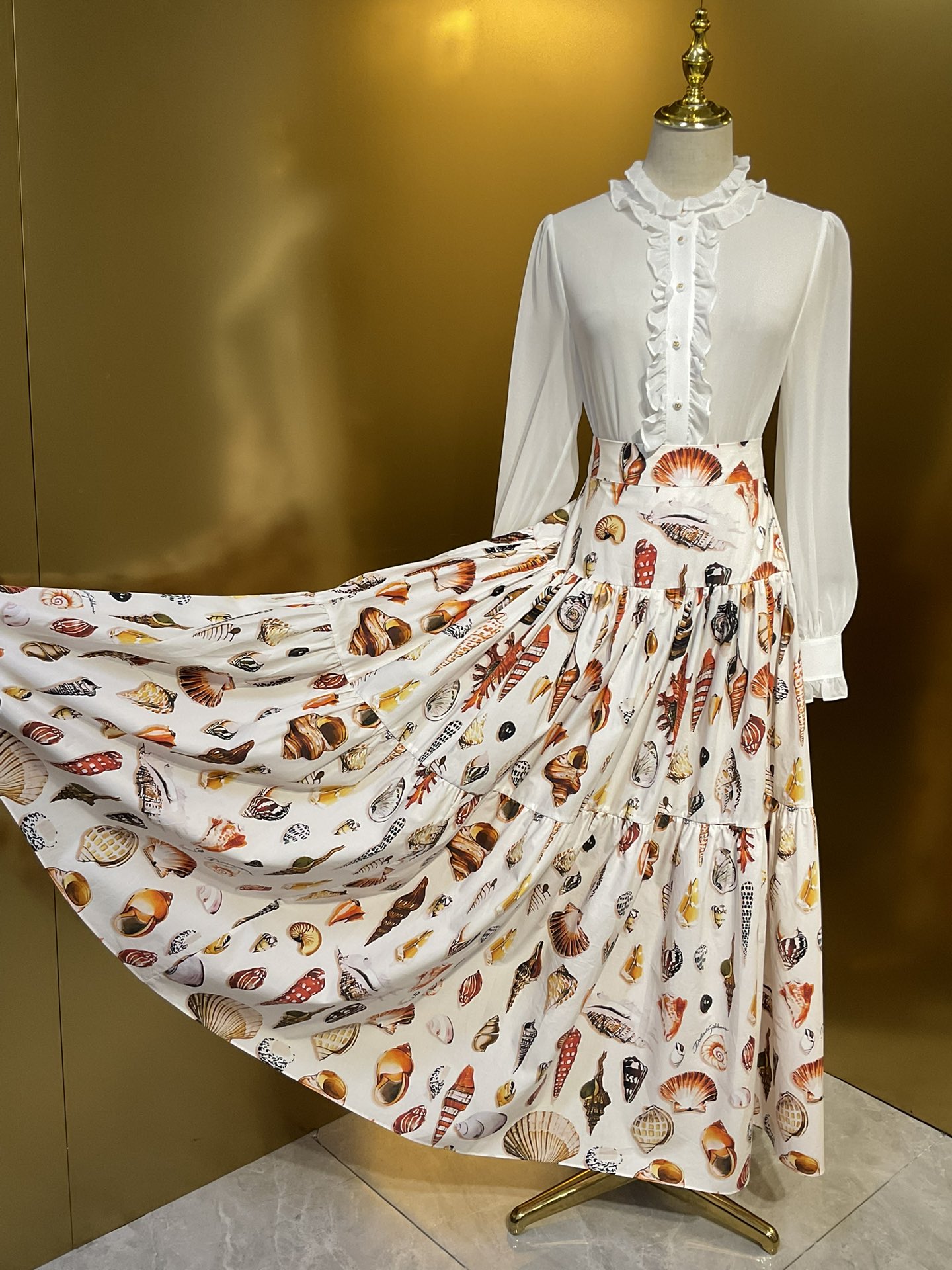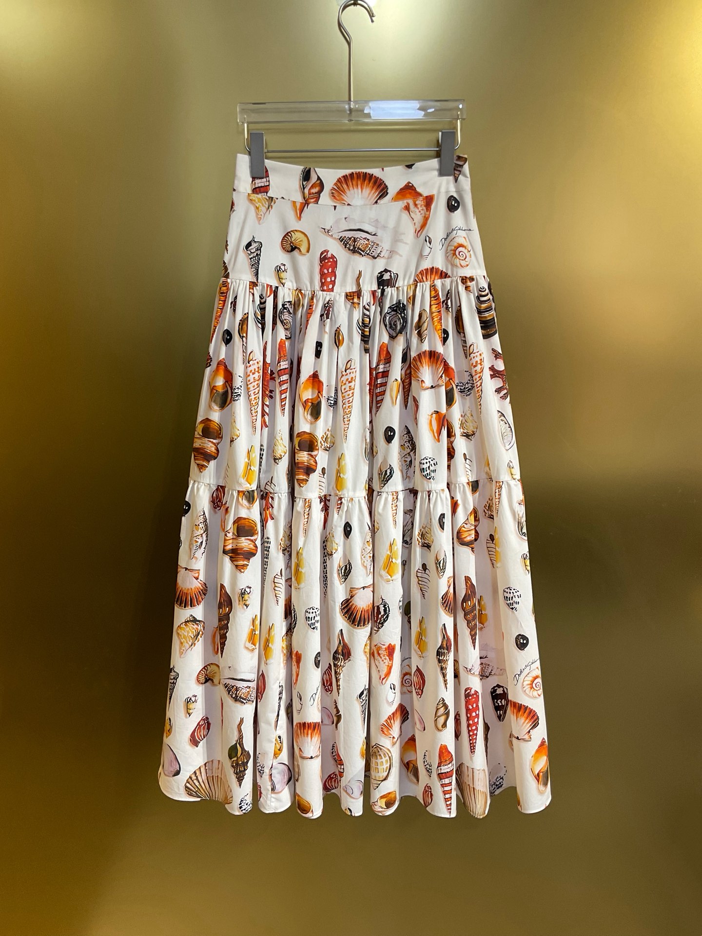 Details: Conch shell printed long skirt in multiple sizes.