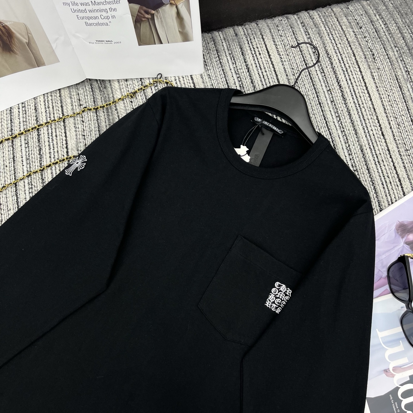 Details: Newly designed embroidered letter long - sleeved round - neck T - shirt for early autumn, available in 3 sizes. High - end customization, fine workmanship