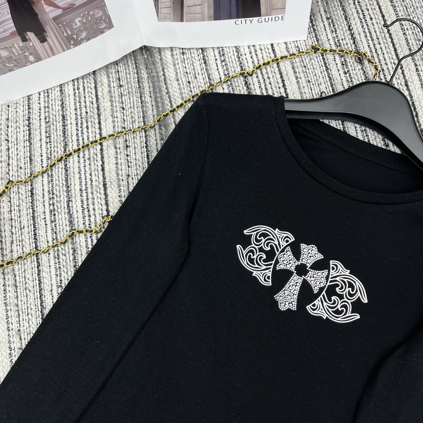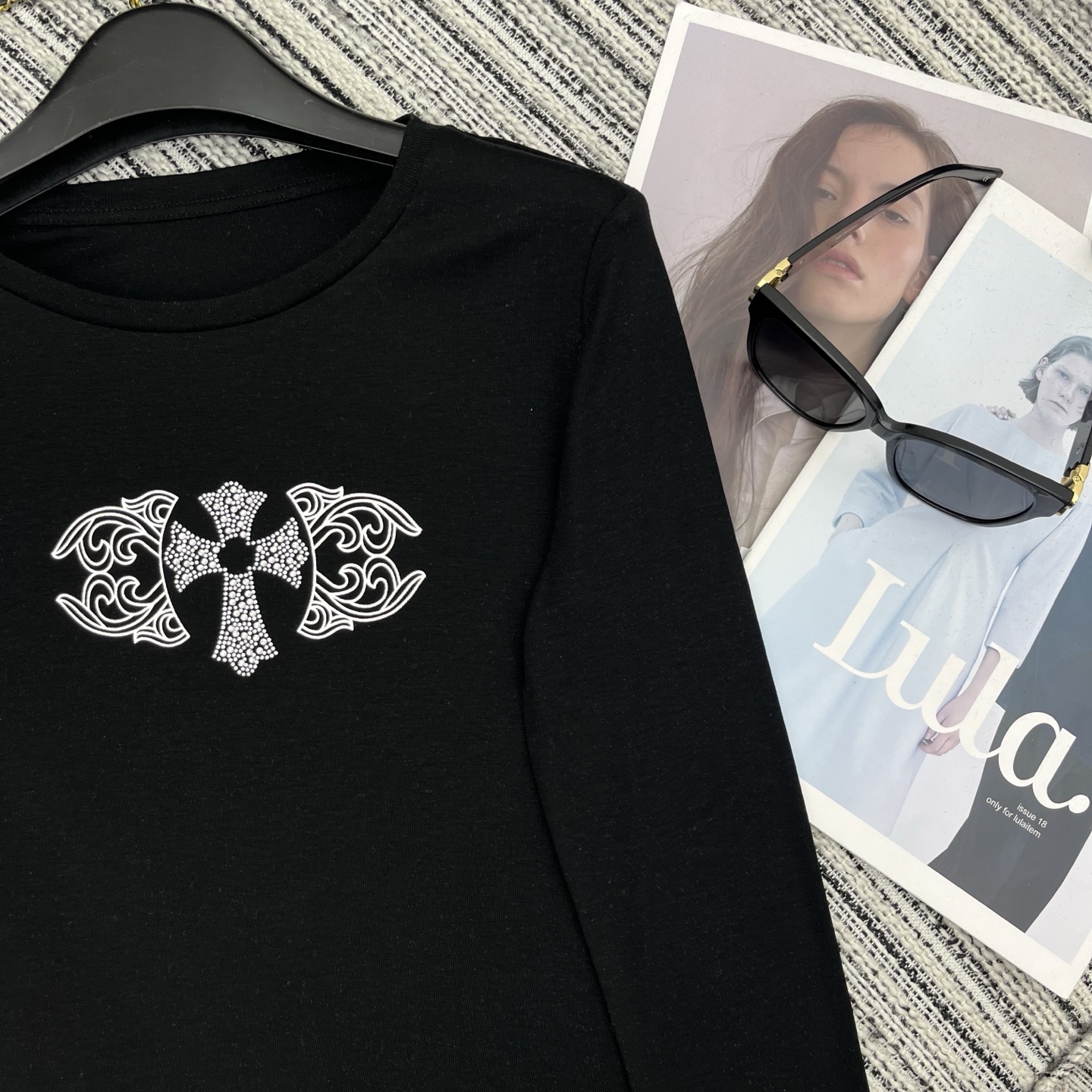 Details: Highly recommended early spring long-sleeved top with diamond-printed cross, three colors, fine craftsmanship