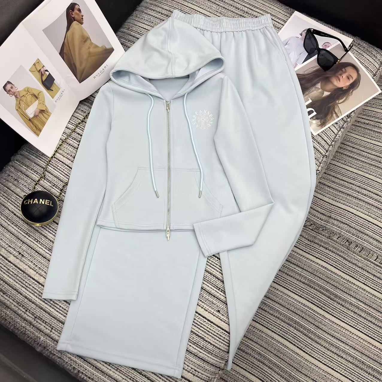 Details: Highly recommended early autumn hooded fitted top and wide-leg pants set with cross print.