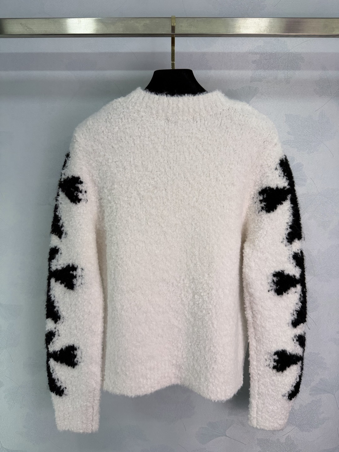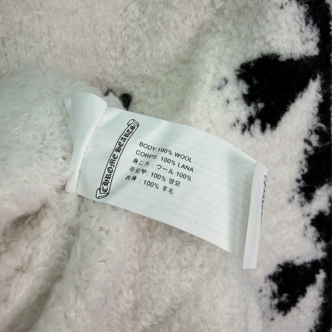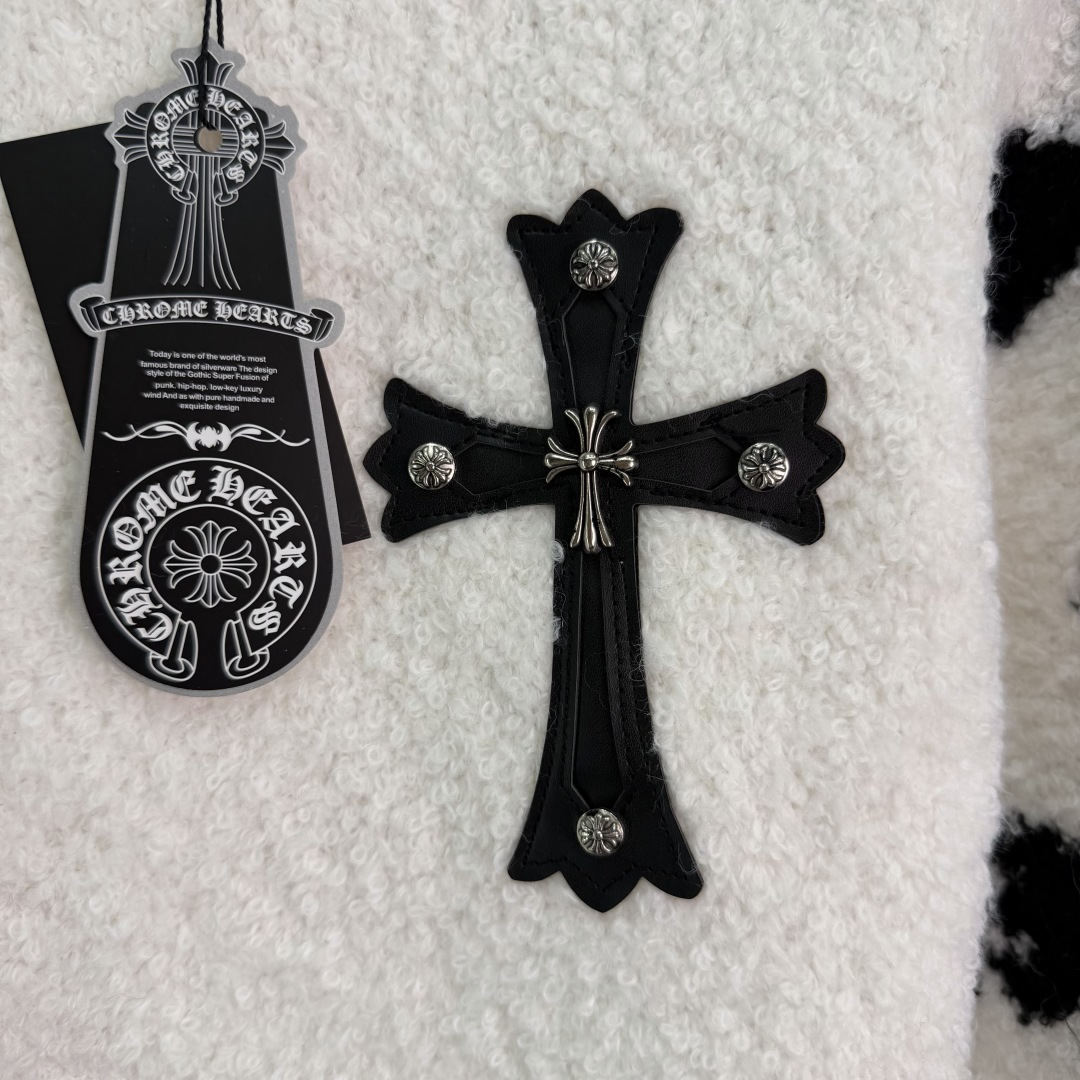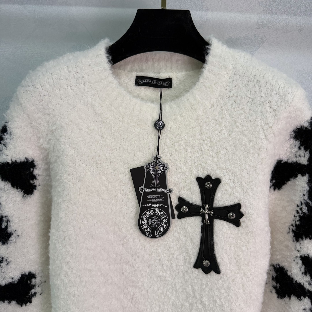Details: Autumn-Winter Black and White Contrast Knit with Plush Fabric, Chest Cross Decoration, Loose Fit for Casual or Street Style