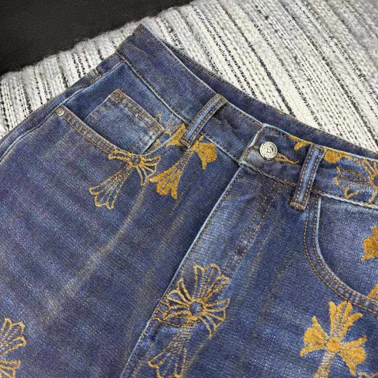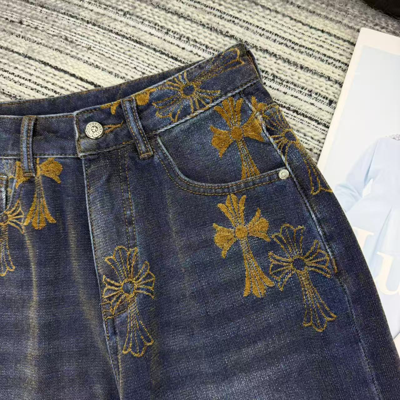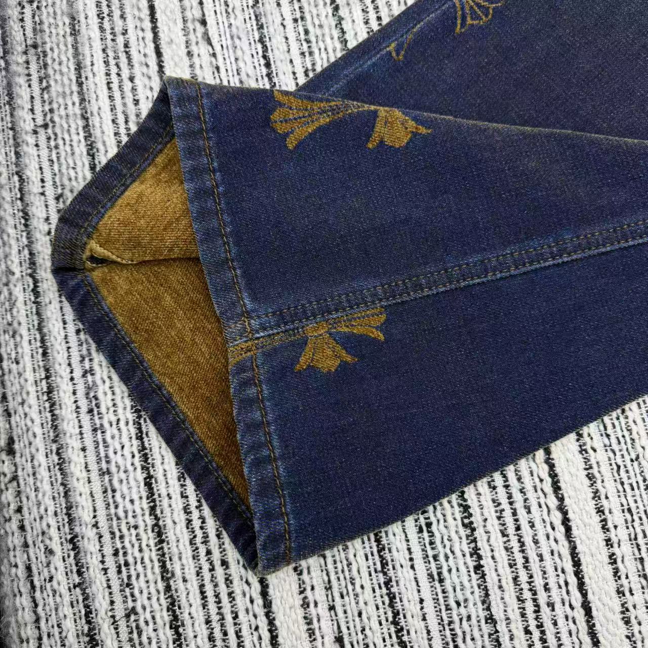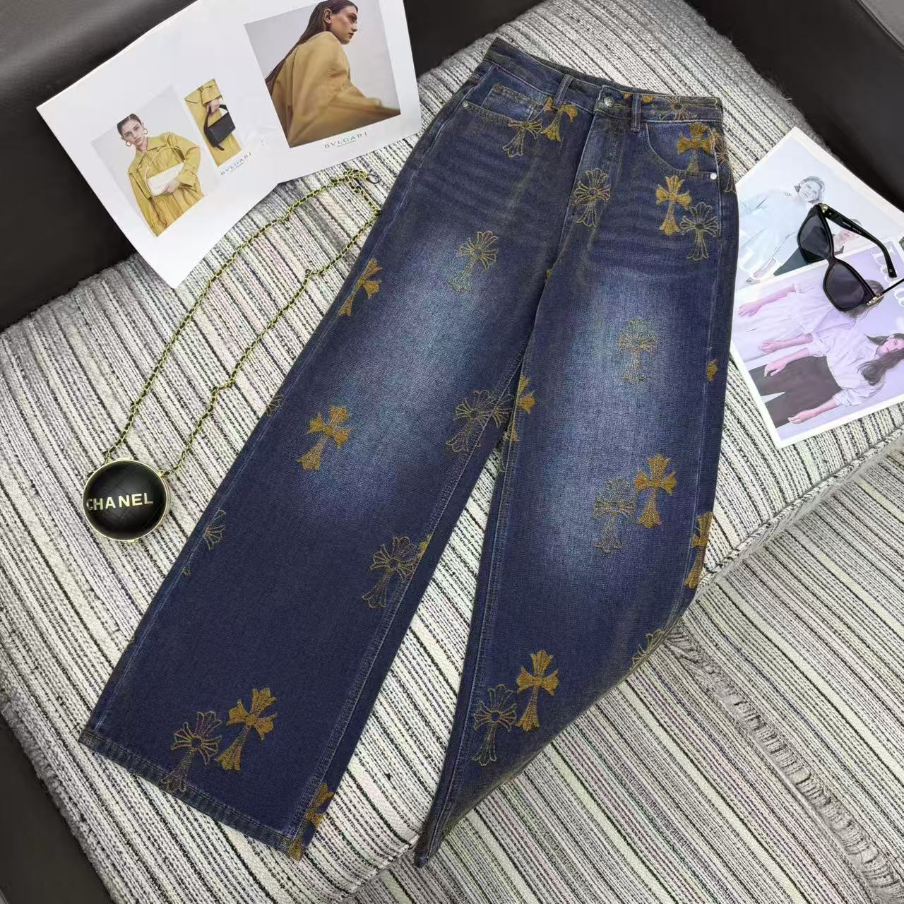 Details: Highly recommended for early autumn and winter, new embroidered cross denim straight-leg pants, warm and available in two colors.