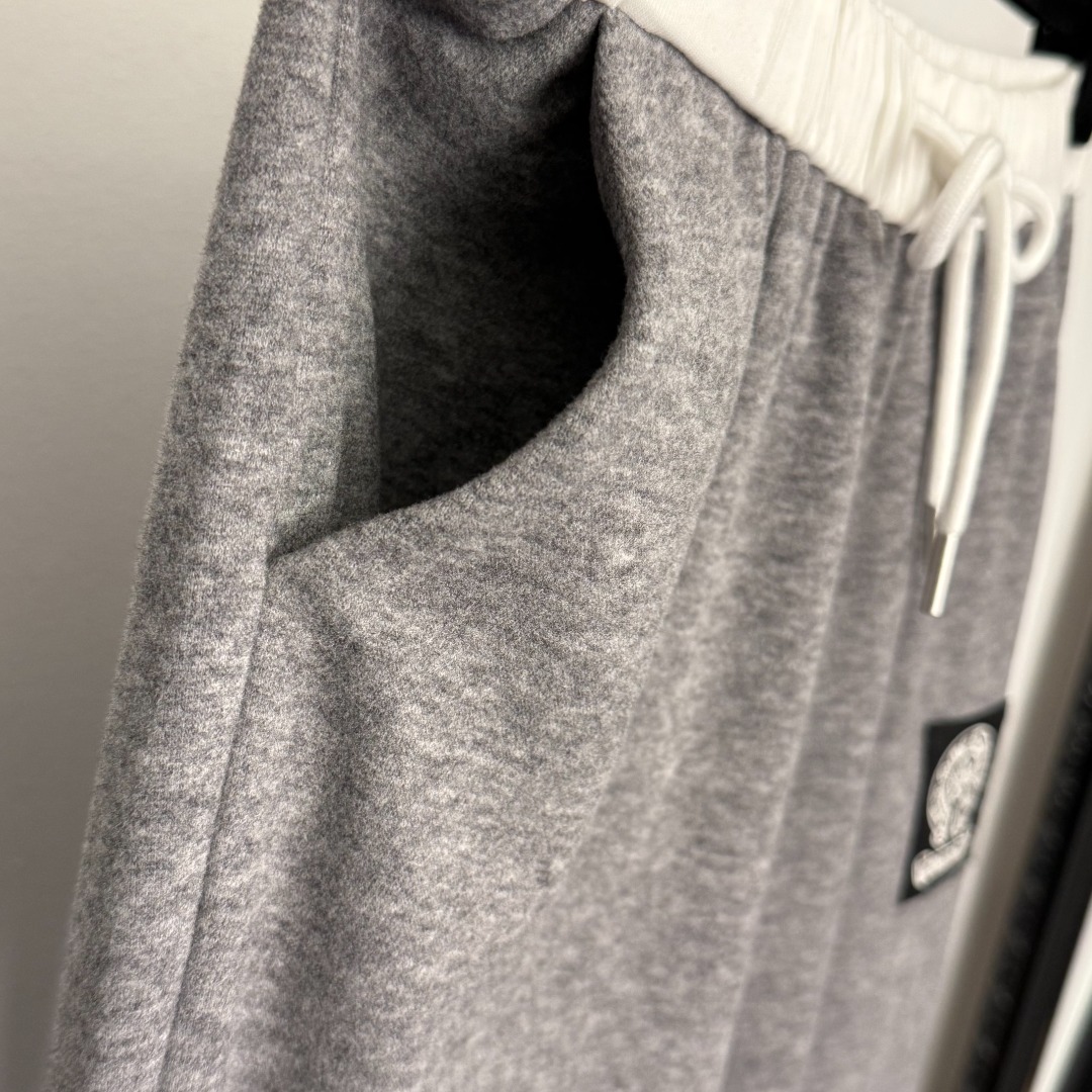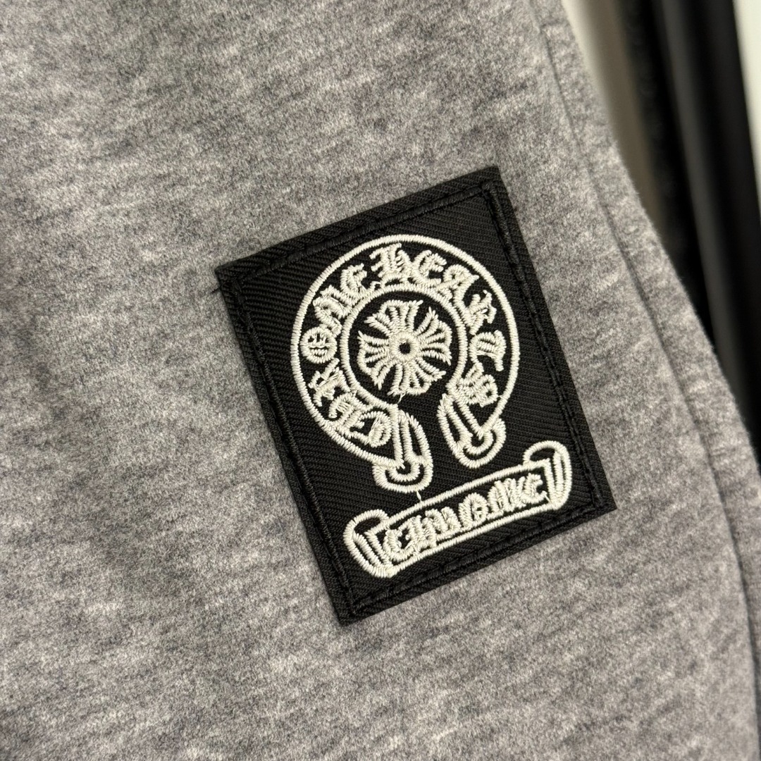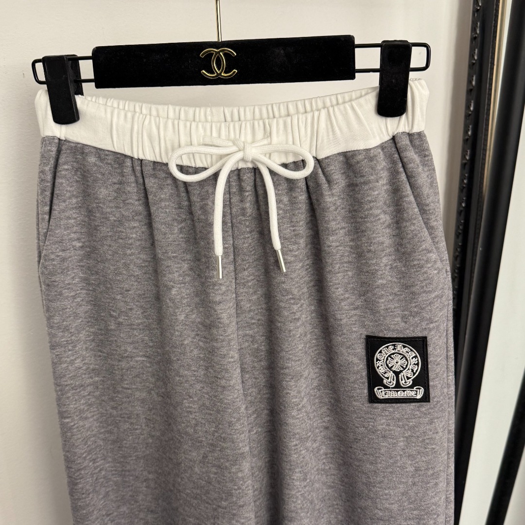 Details: New casual pants with Sanskrit logo embroidery in gray, black