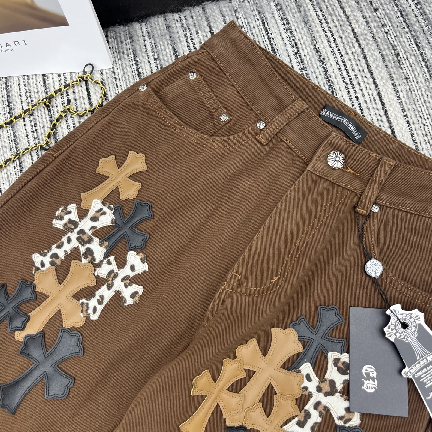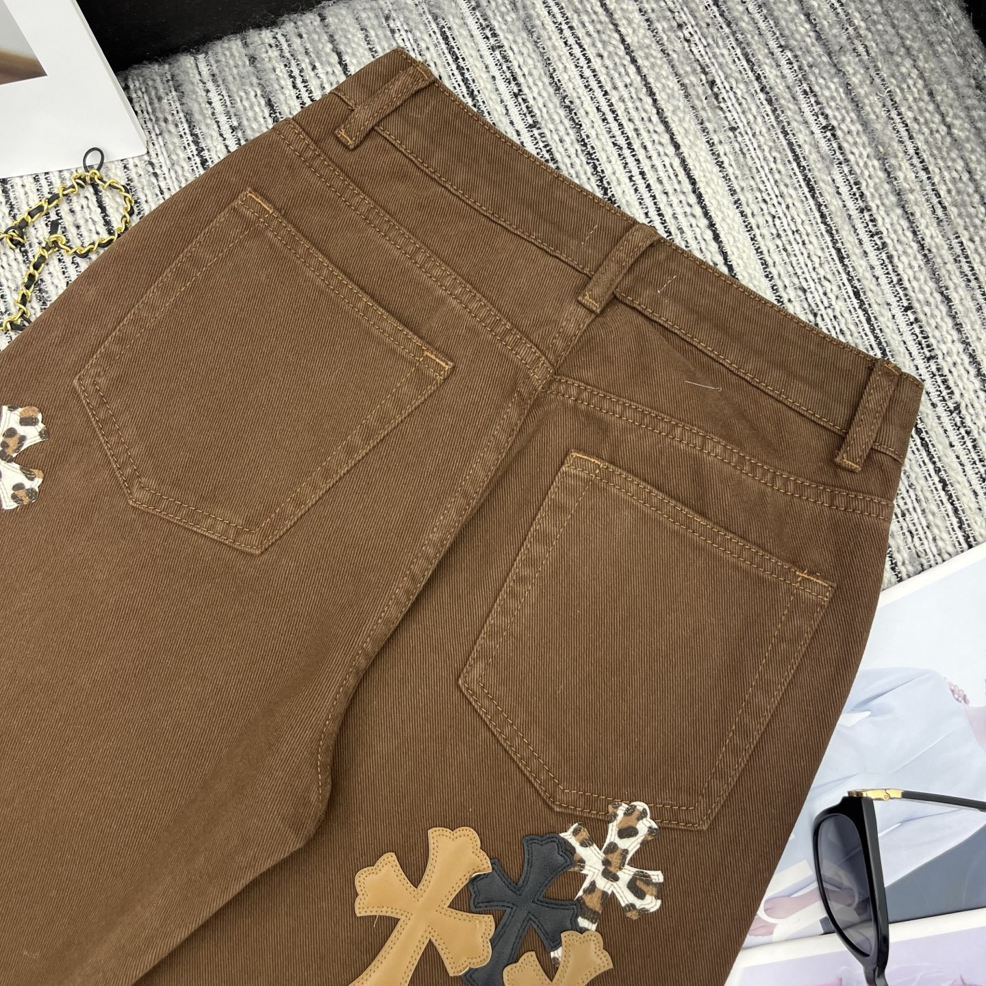 Details: Early autumn leopard-print leather cross denim straight-leg pants, multiple sizes.