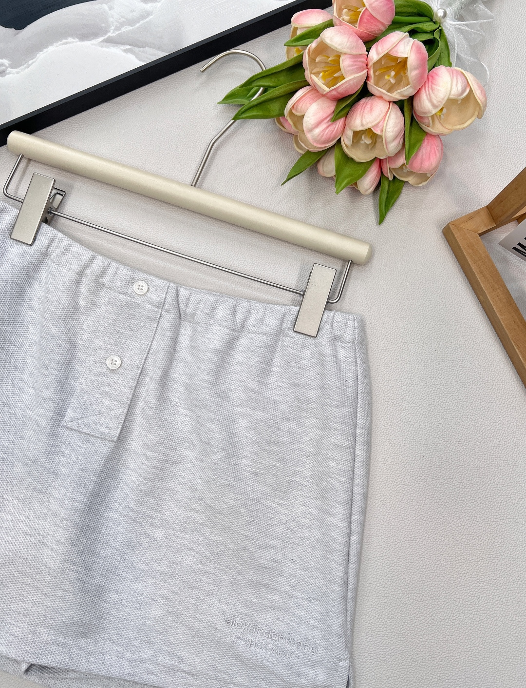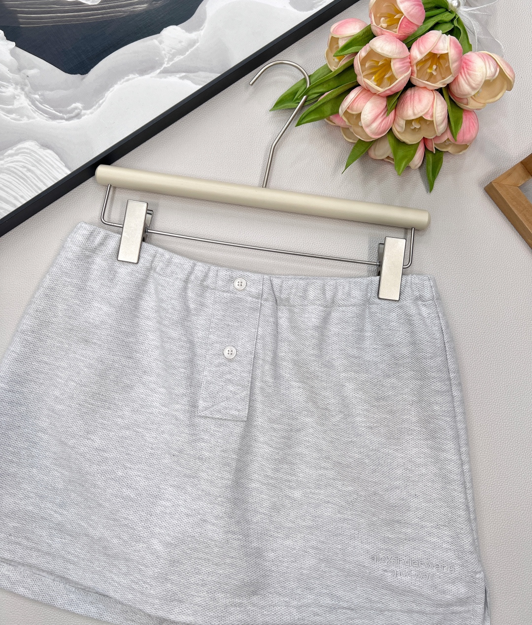 Details: Premium custom-made ensemble: embroidered cropped T-shirt with adjustable drawstring and flared skirt trousers, fine workmanship, matching original quality.