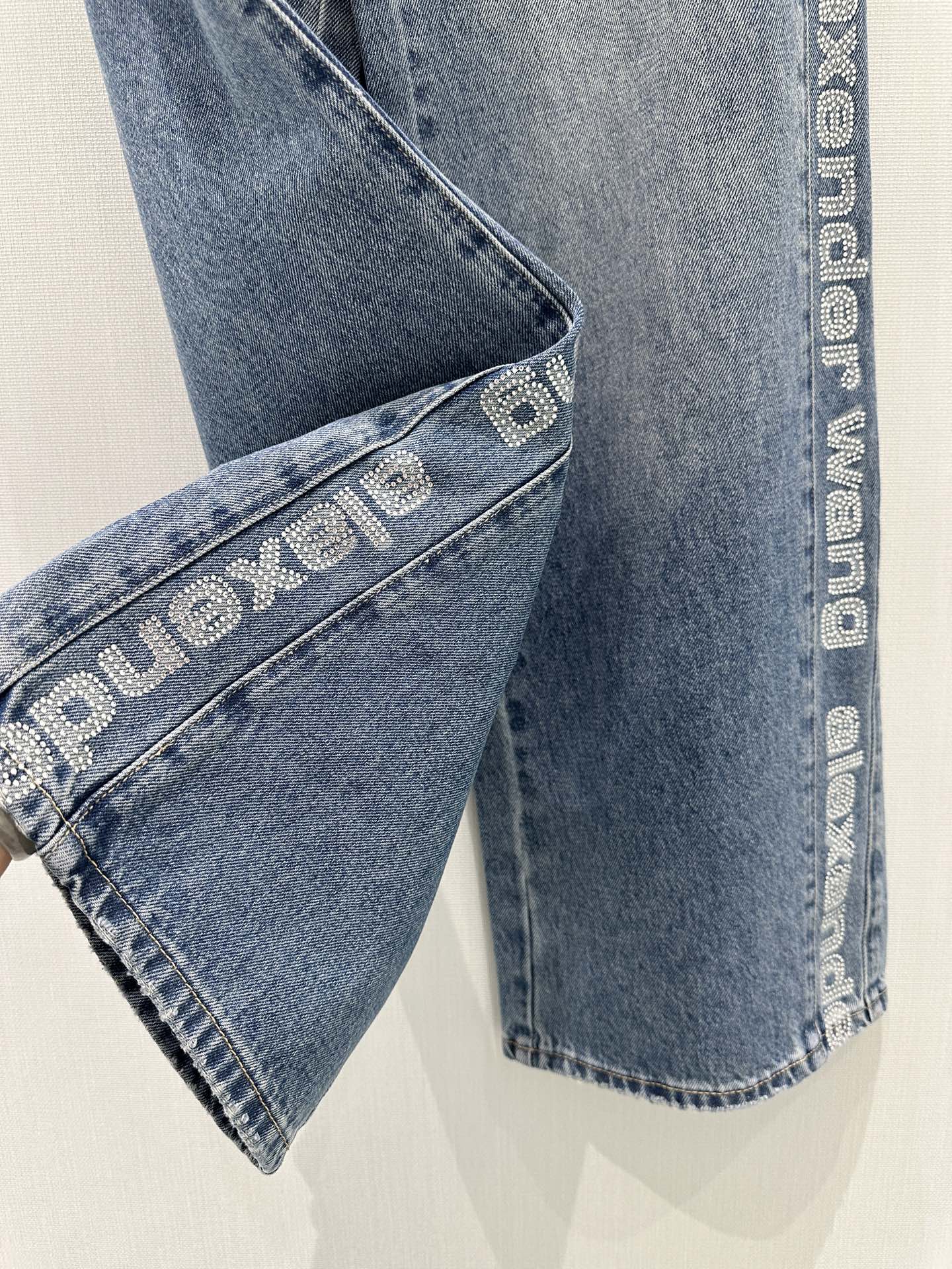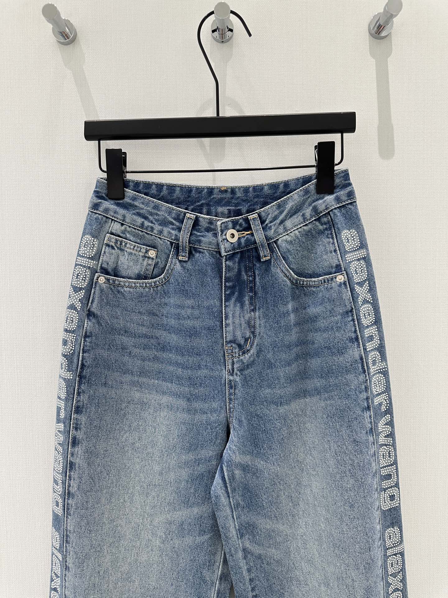 Details: Early Spring New Jeans with Side Letter Rhinestones, High-end Customized Fabric, Comfortable, Fine Workmanship