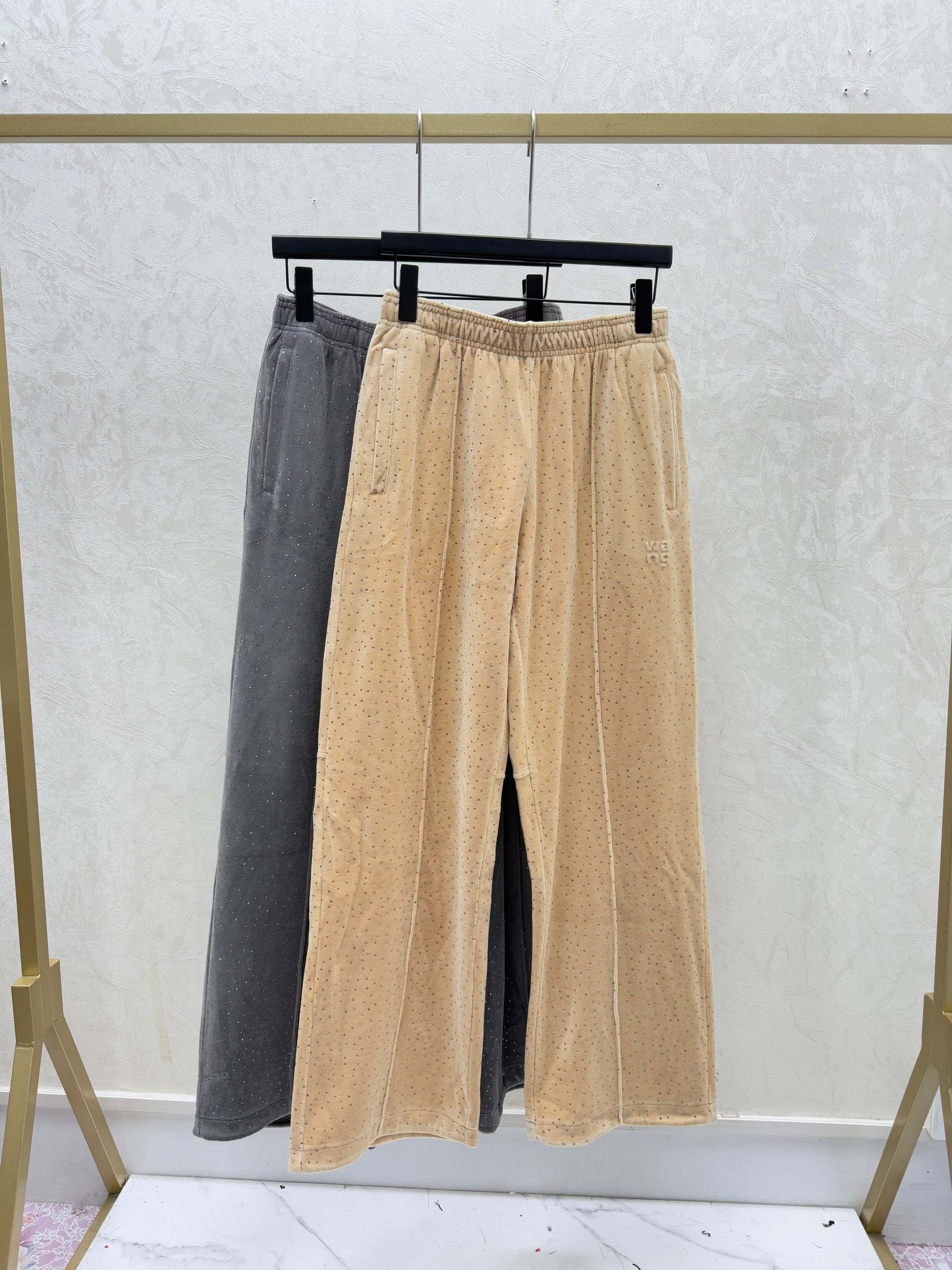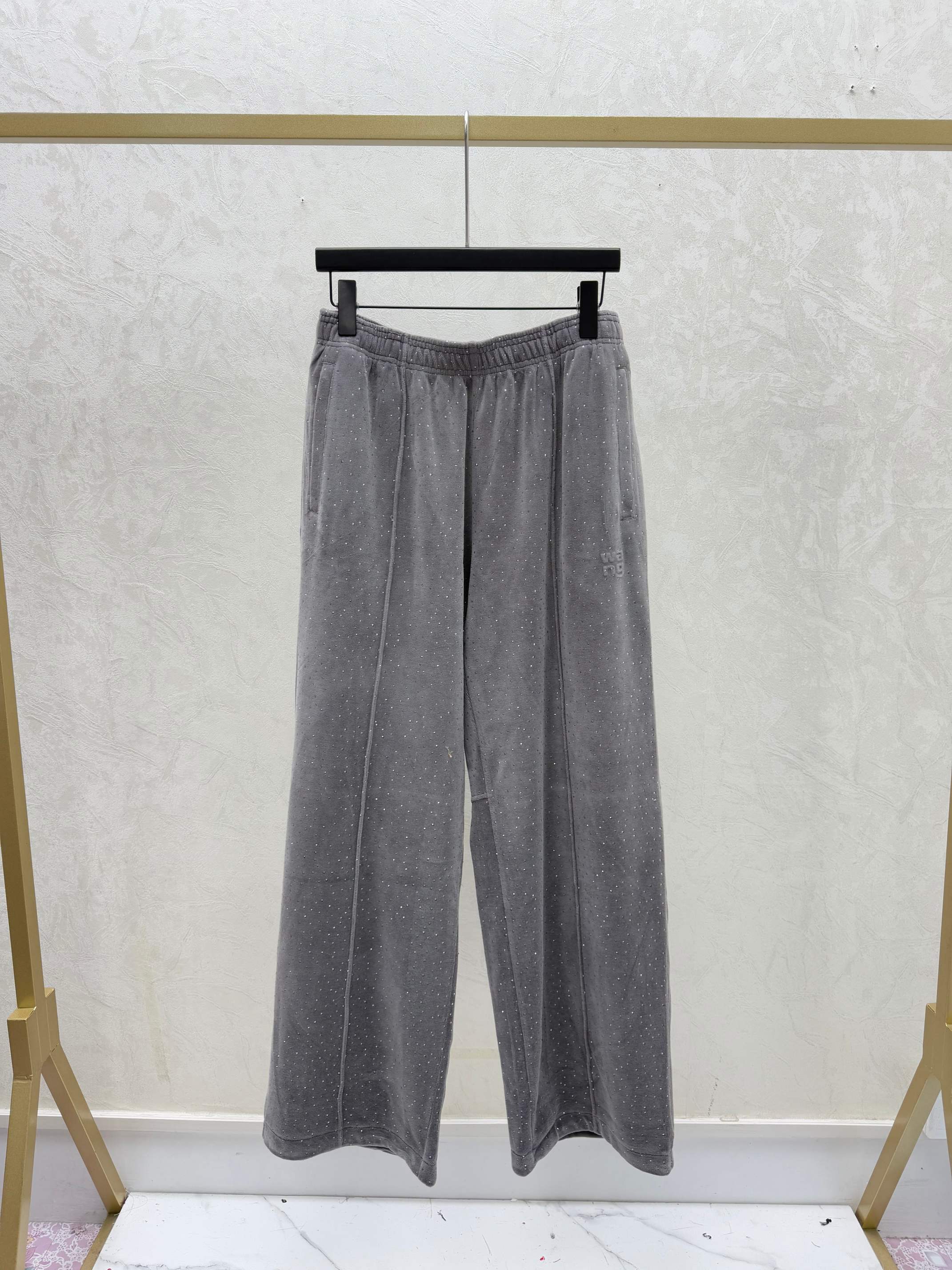 Details: Early autumn new, solid-color rhinestone knitted long pants in khaki or gray, sizes 36-40.