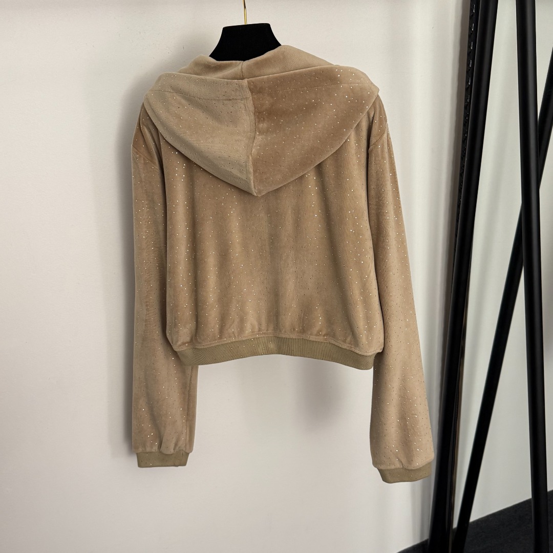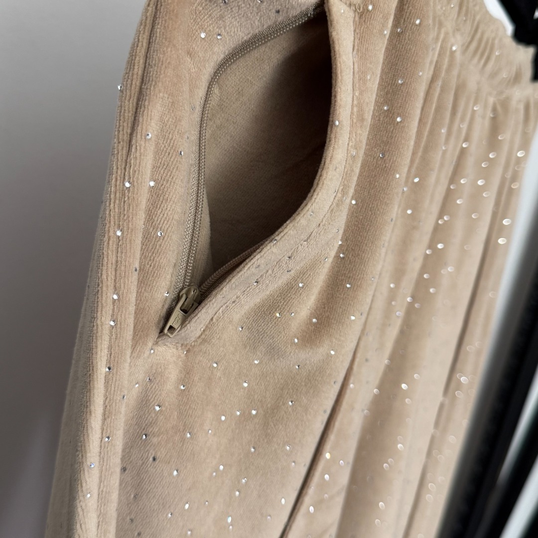 Details: New velvet sportswear set with glittering rhinestones, khaki, size M.