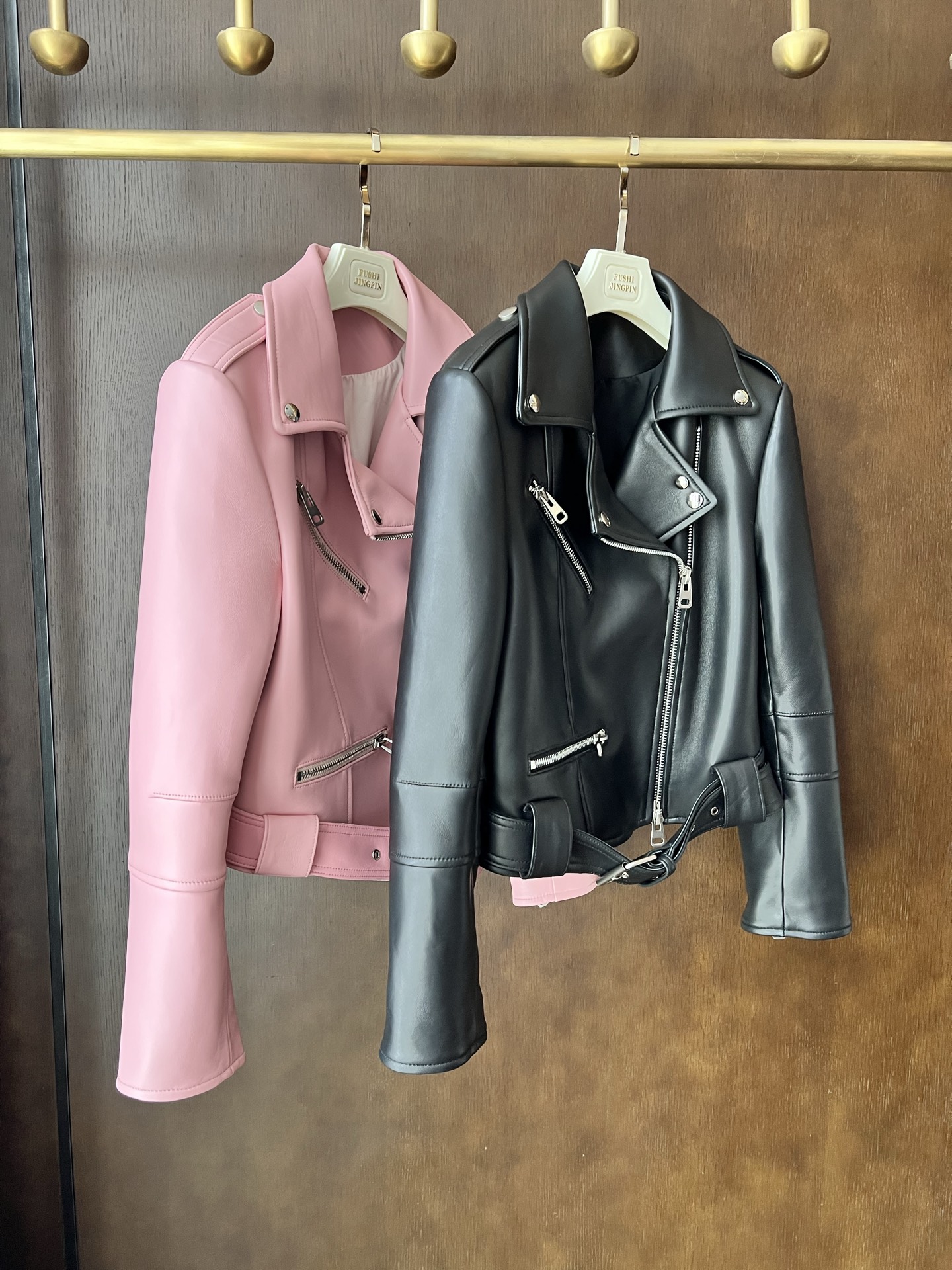 Details: Women s high-version leather biker jacket, made of imported New Zealand lambskin with a thick and clear texture, stereoscopic cut, perfect design, high-end custom, fine craftsmanship and two colors.