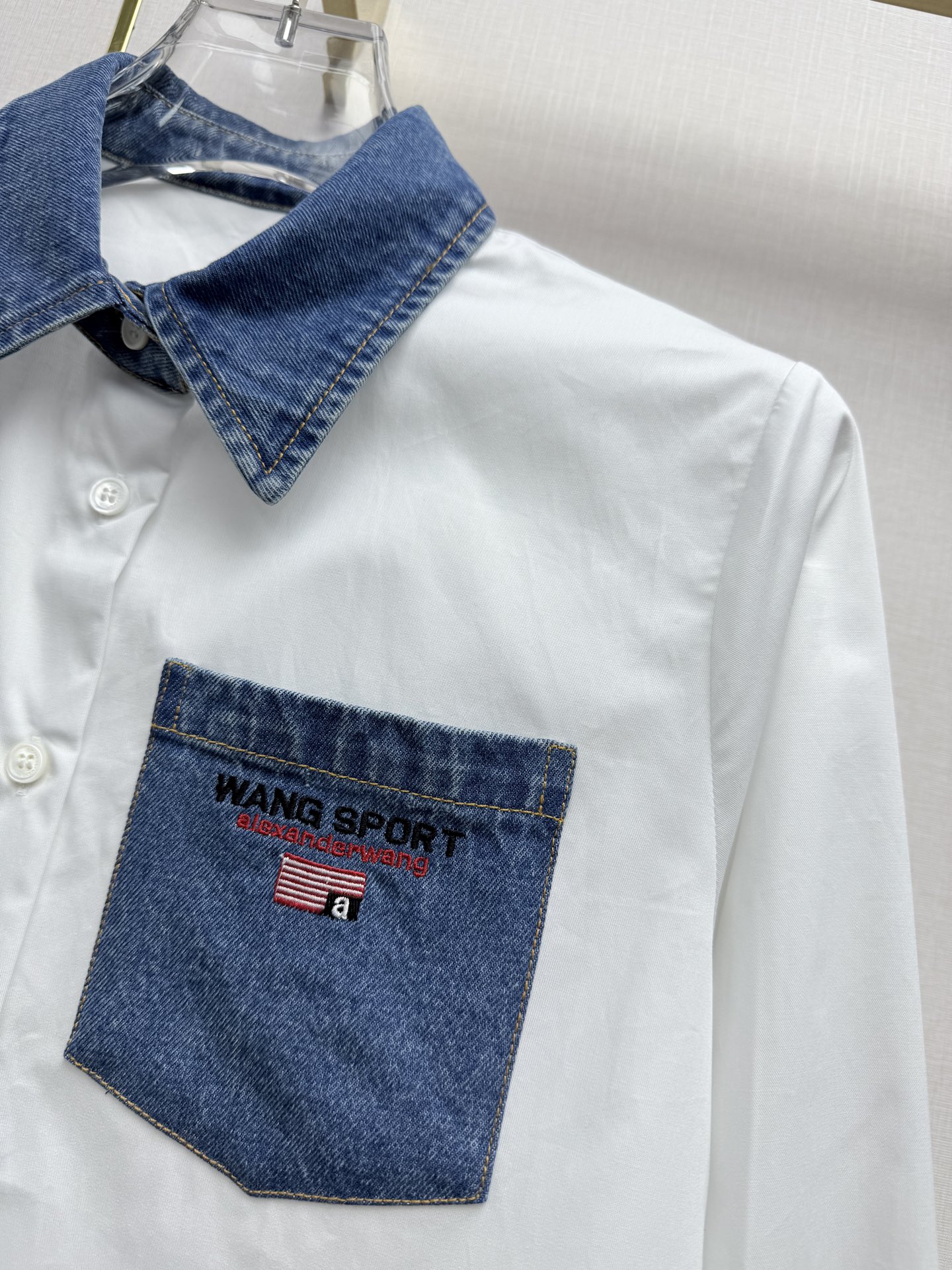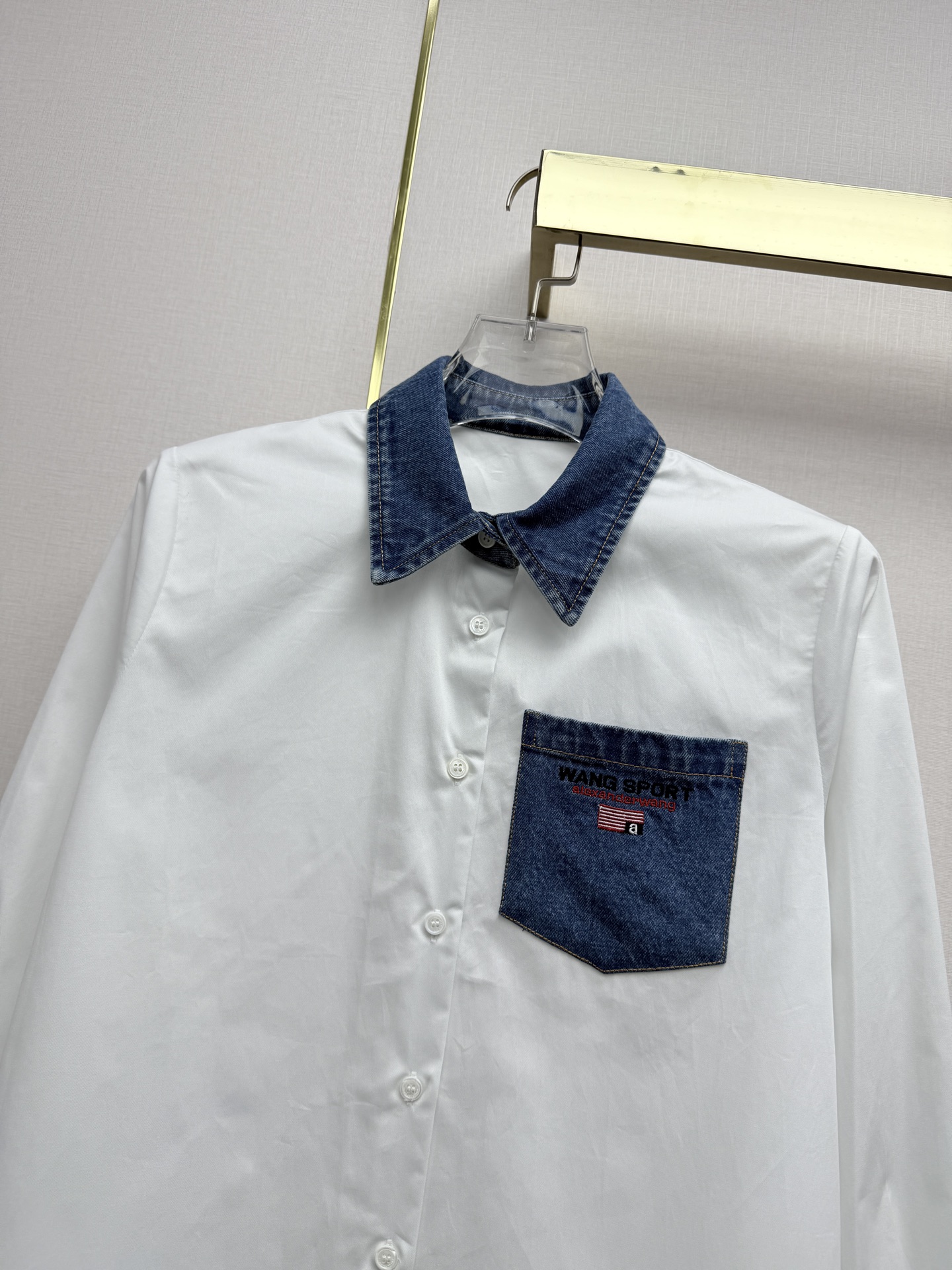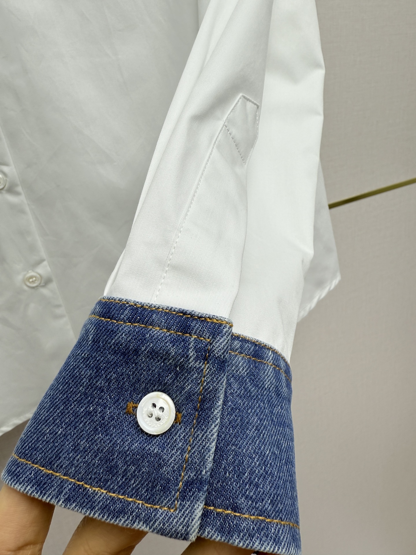 Details: New long-sleeved shirt with denim color-blocking and letter embroidery, classic and versatile.