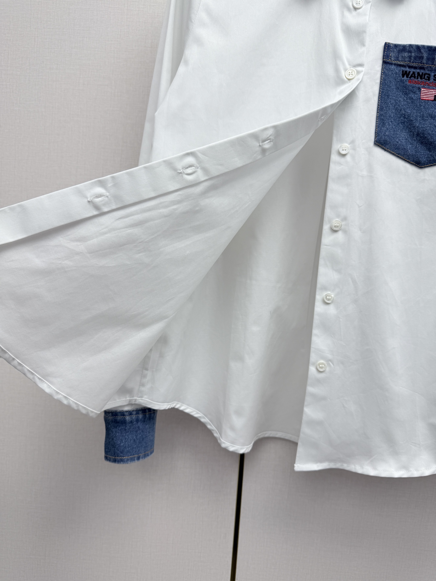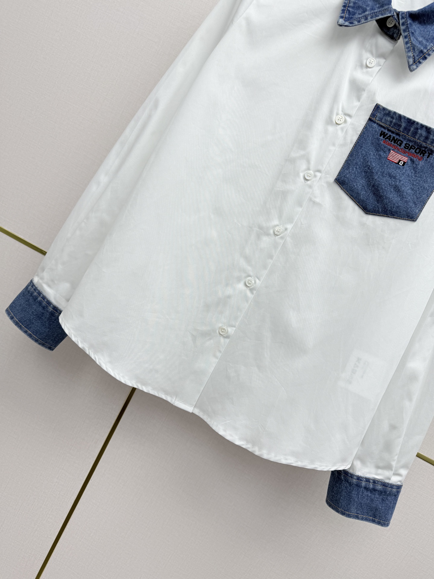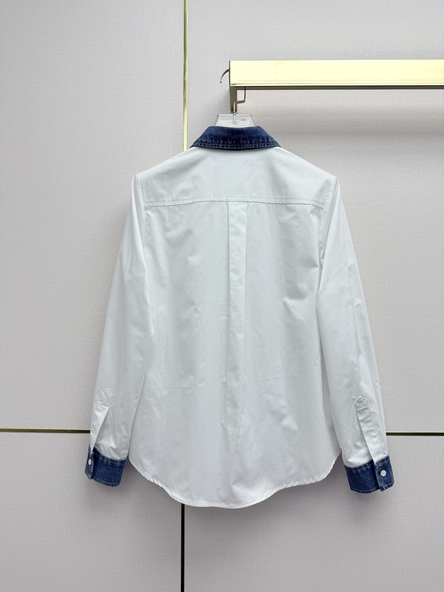 Details: New long-sleeved shirt with denim color-blocking and letter embroidery, classic and versatile.