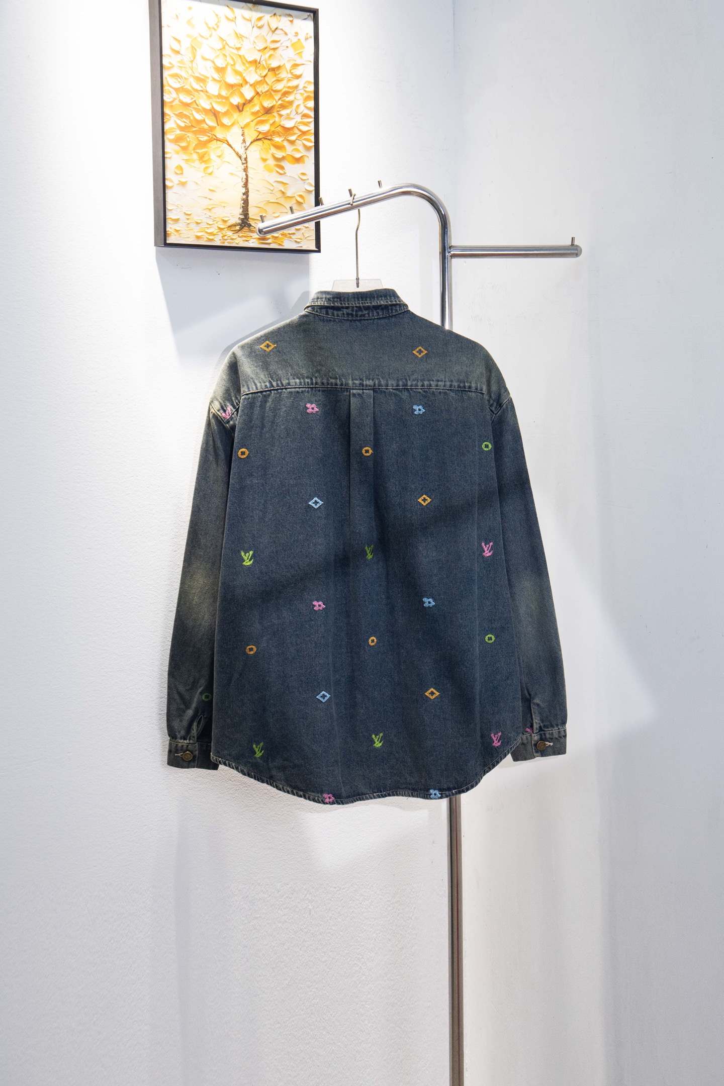 Details: Heavy embroidery denim jacket with a gradient color, machine washable