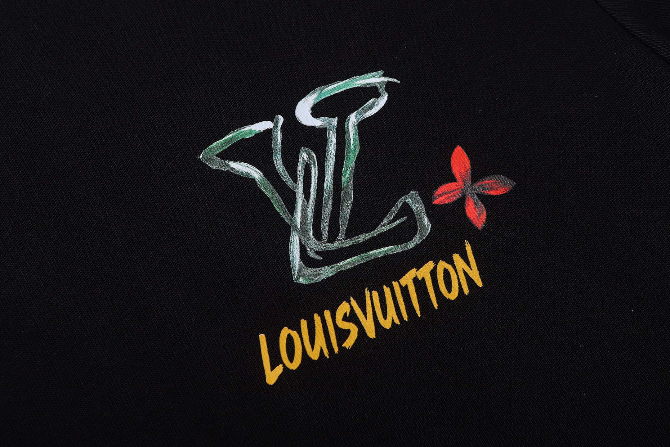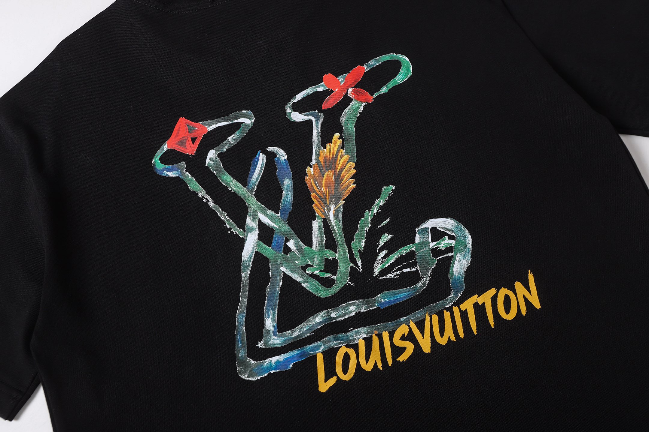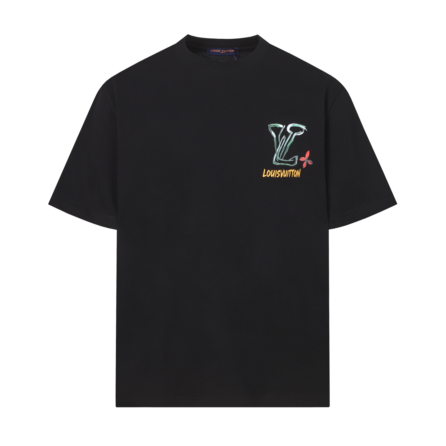Details: Cotton round-neck short-sleeved T-shirt with graffiti logo, available in black or white