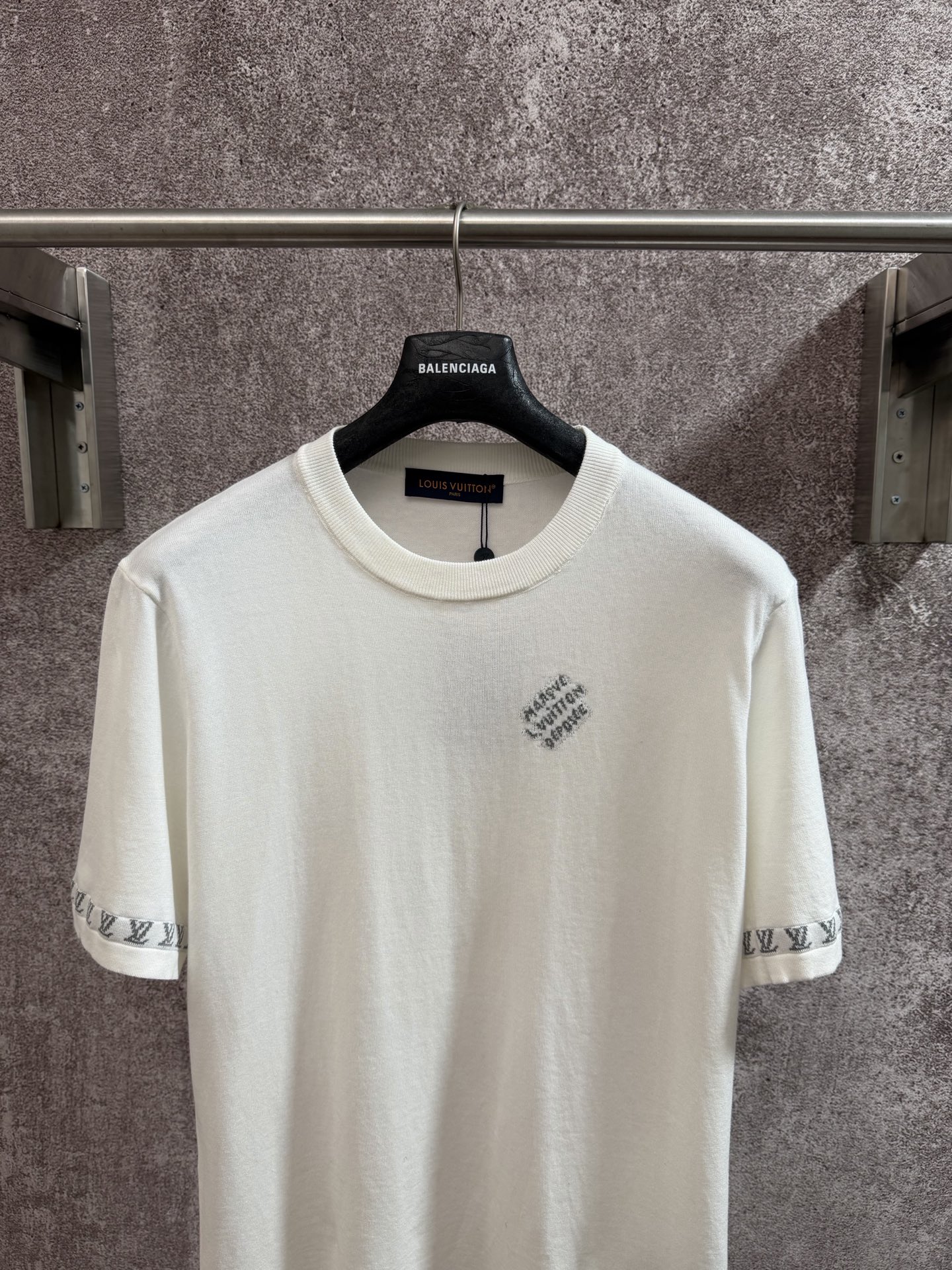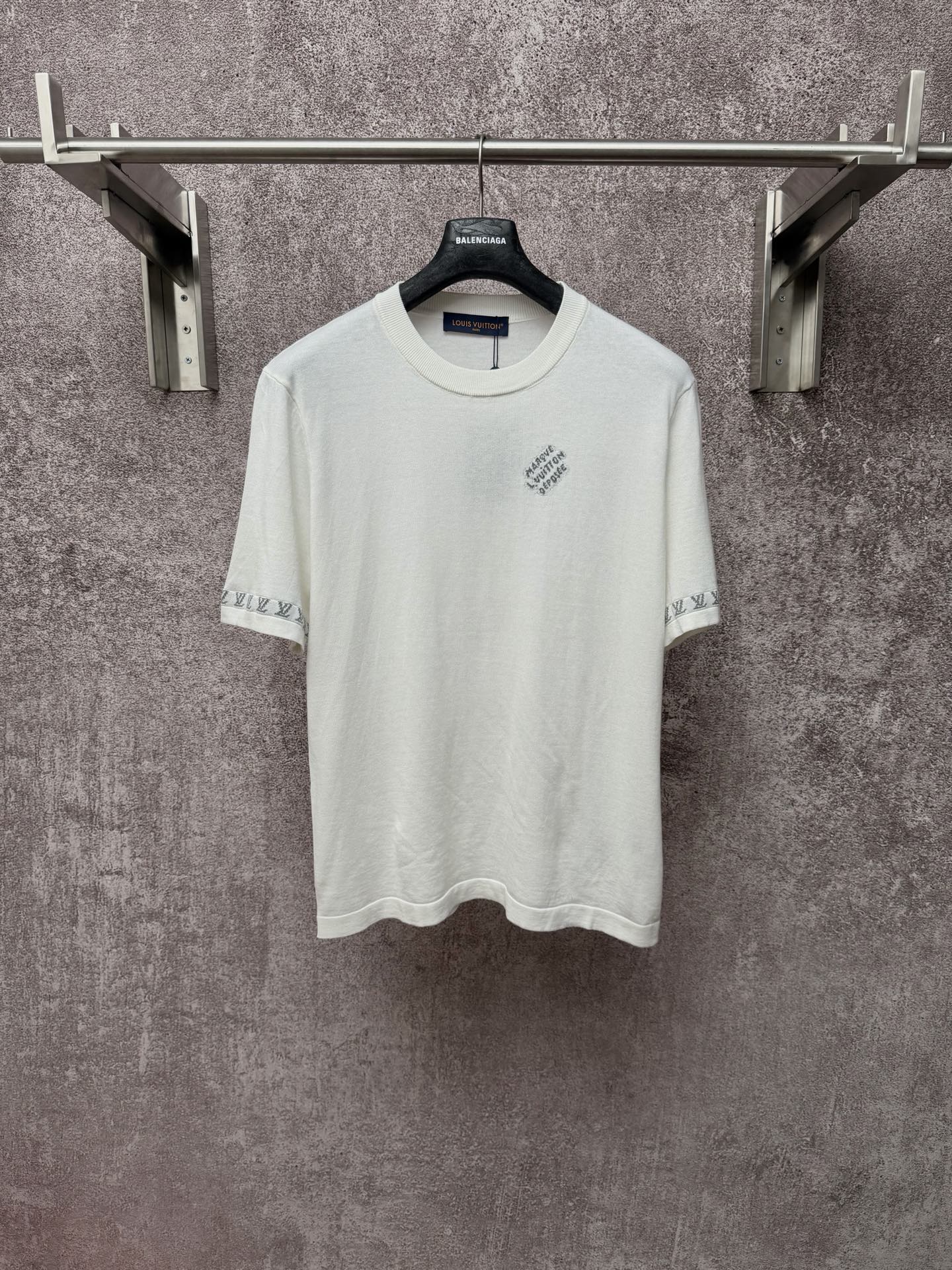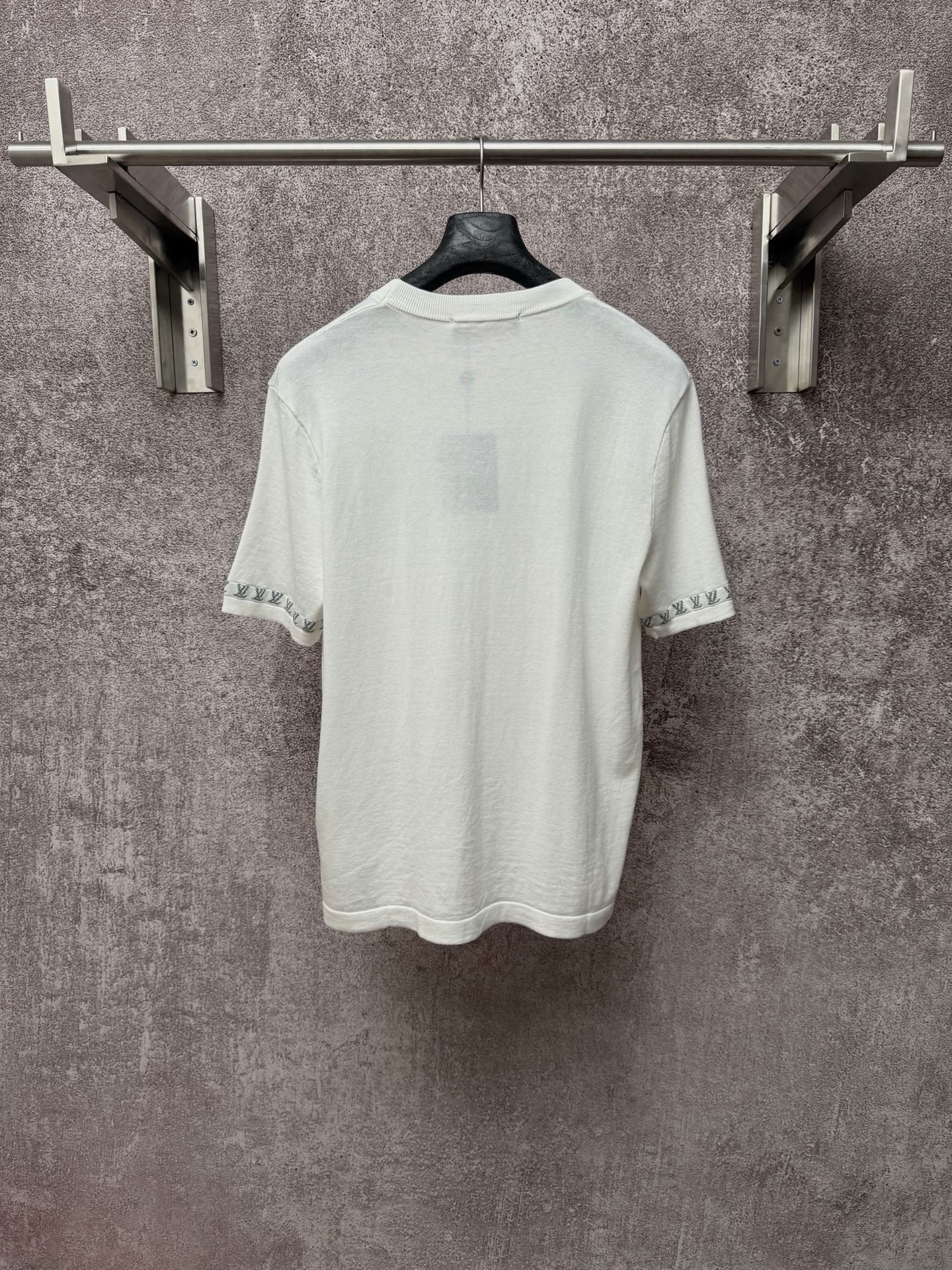Details: Knitted cuff logo short-sleeved crew-neck shirt made of high-quality yarn, available in multiple colors