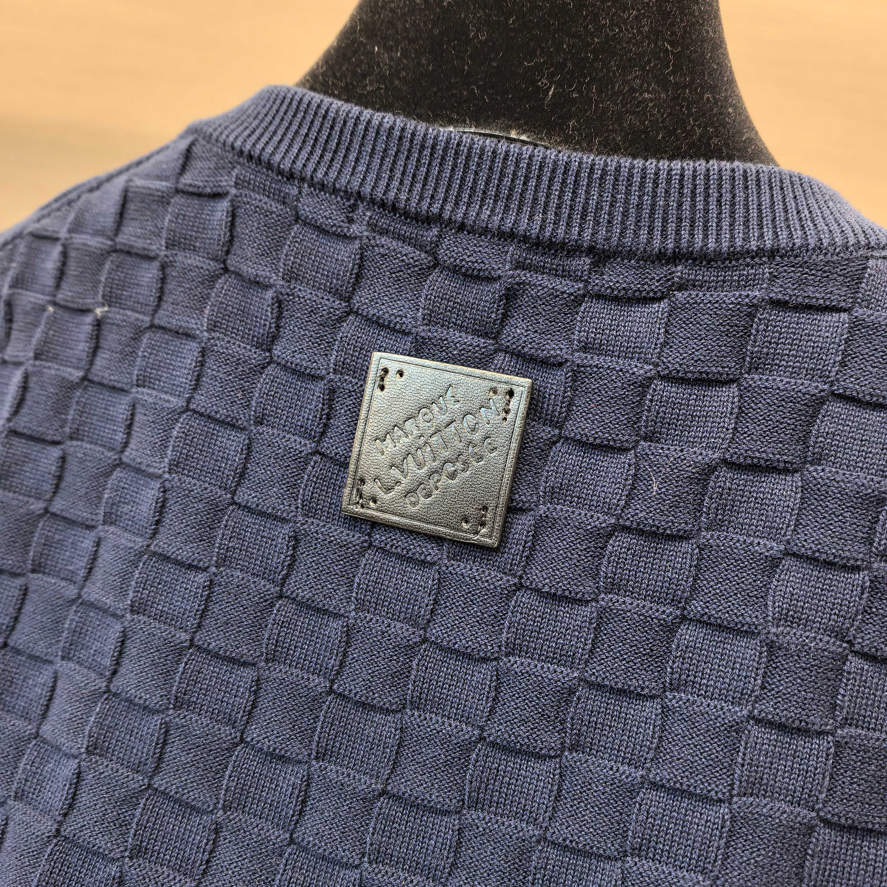 Details: Customized wool blend knitted top with an embroidered logo and a sleek design