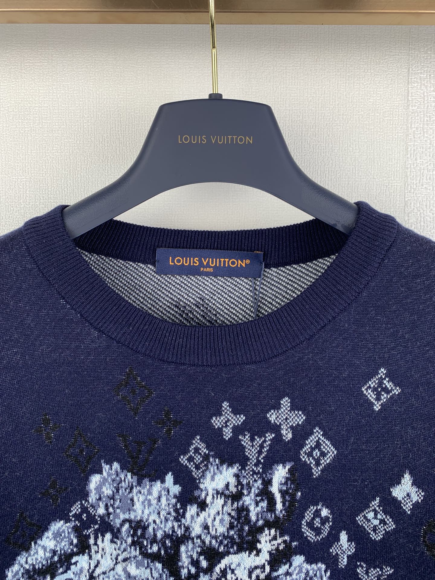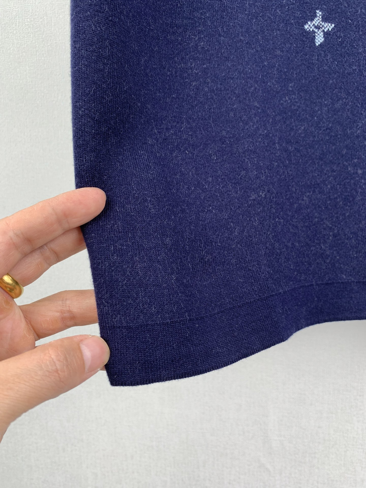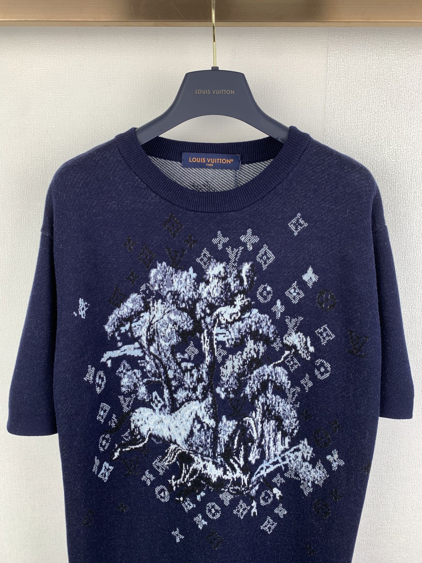 Details: Wool crewneck short-sleeve T-shirt with jacquard pattern, requires dry cleaning only
