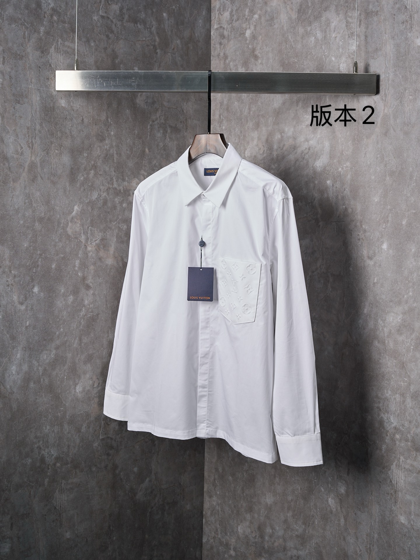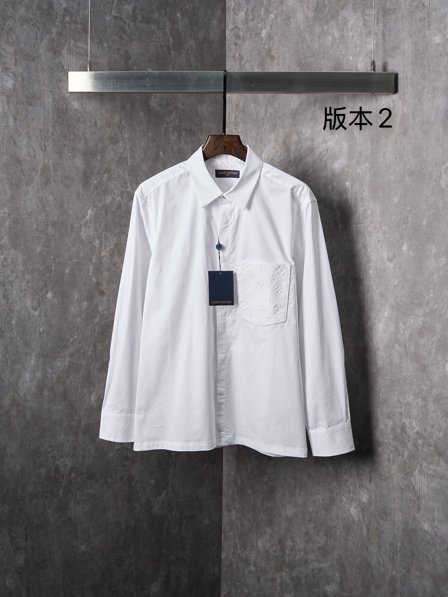 Details: Cotton Long-sleeved Shirt with Monogram Pocket, Suitable for Various Occasions