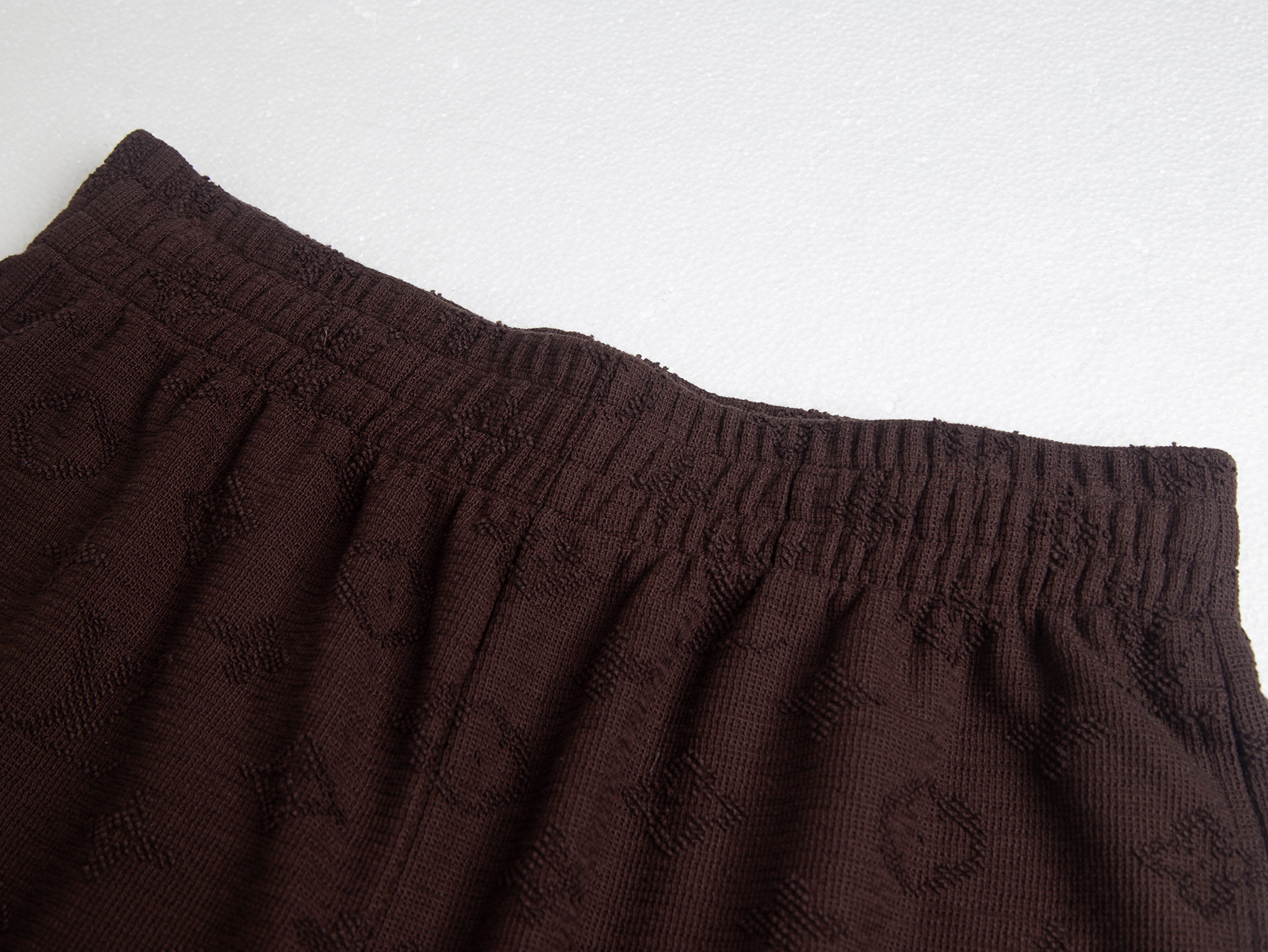 Details: Classic Loose Shorts in Black or Brown, Made of Cotton Jacquard Fabric