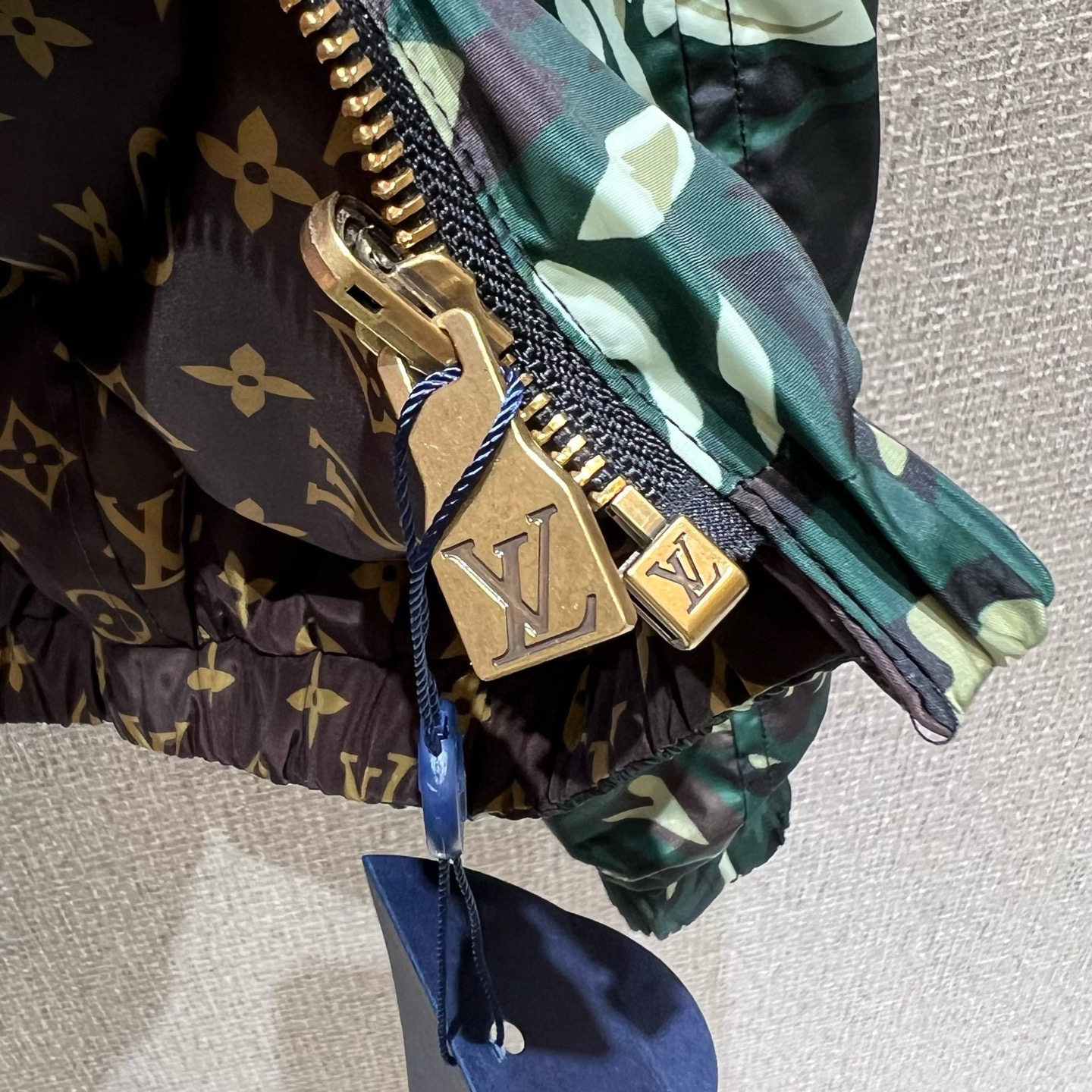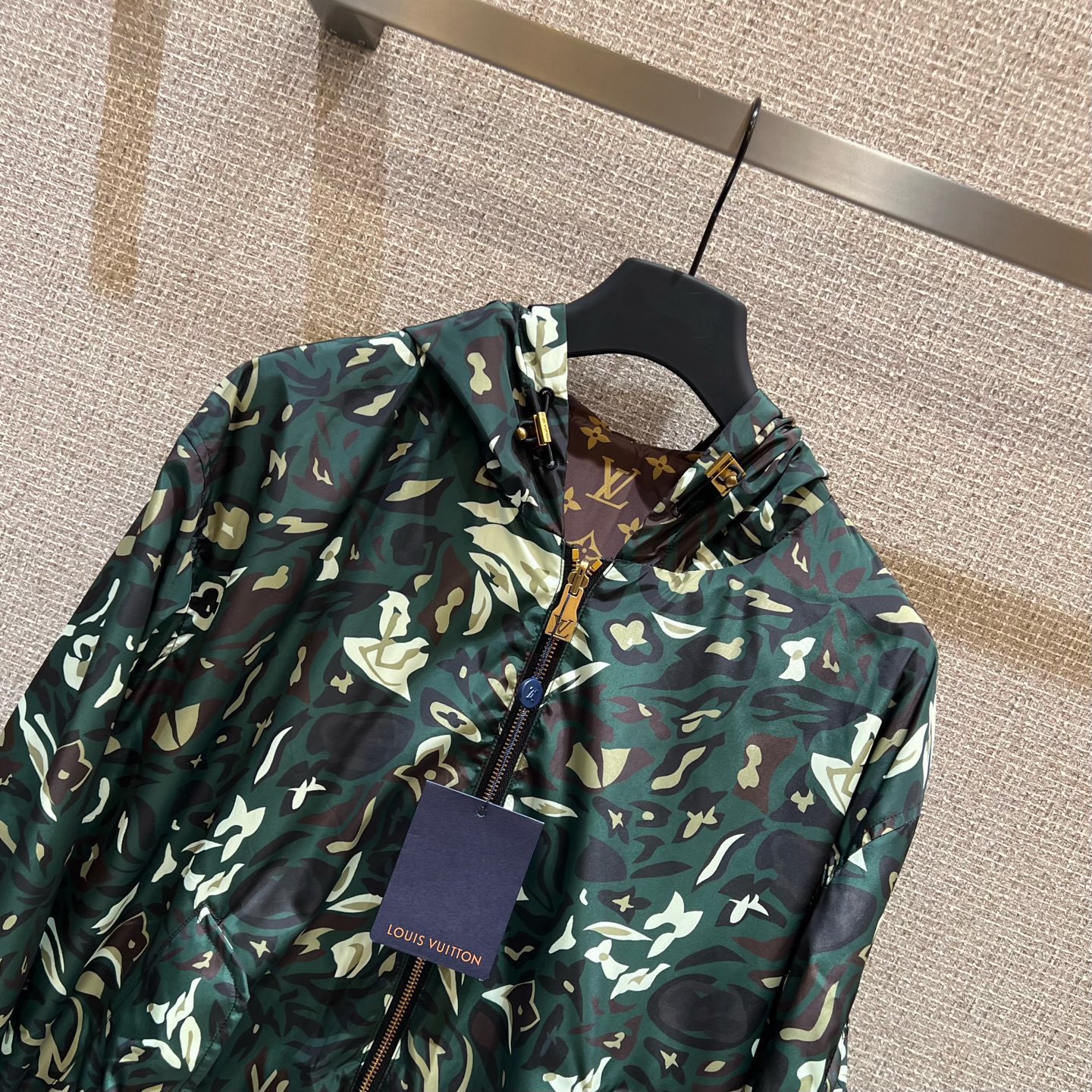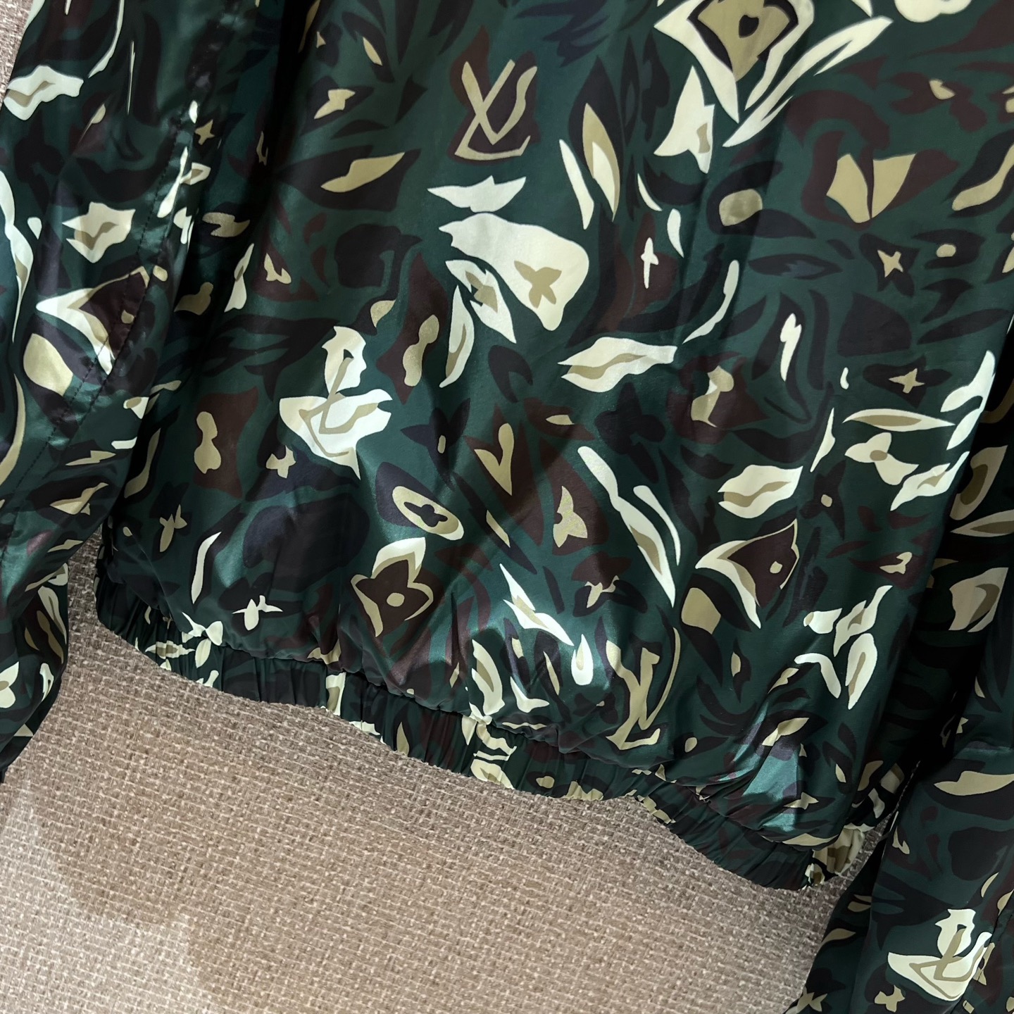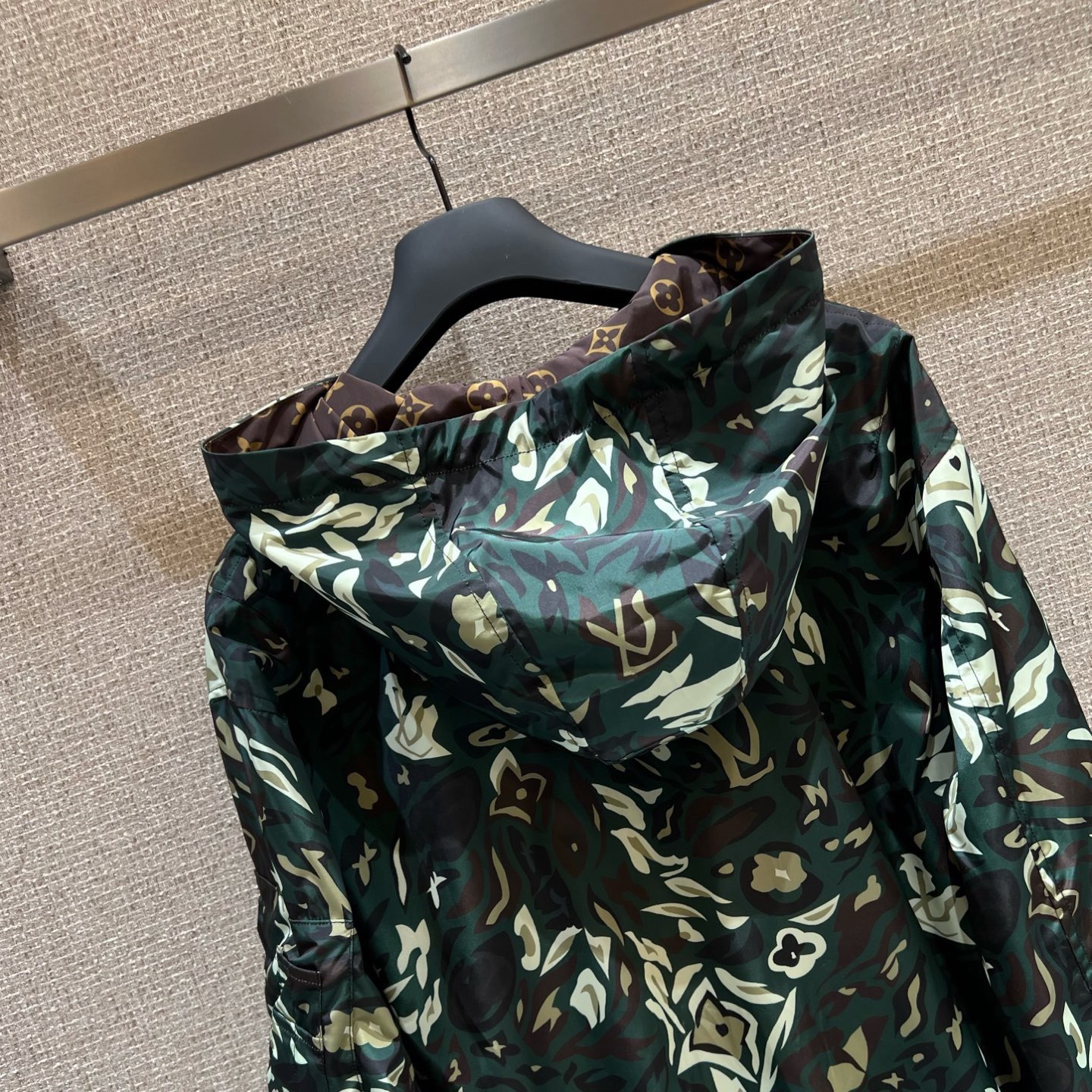 Details: Double-sided hooded jacket crafted from camouflage print cotton fabric, equipped with original mold hardware, a copper logo zipper, and a loose fit, suitable for various occasions