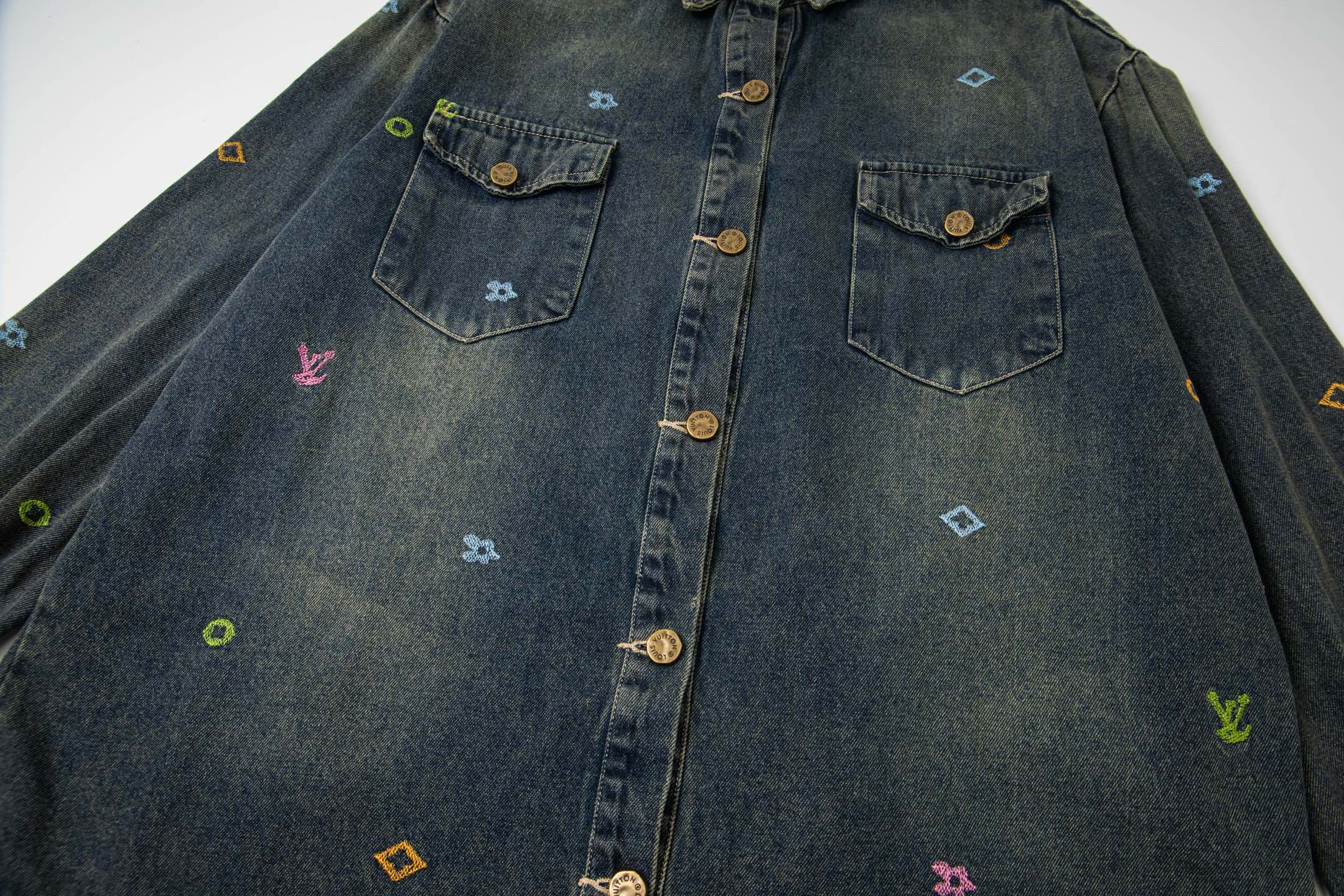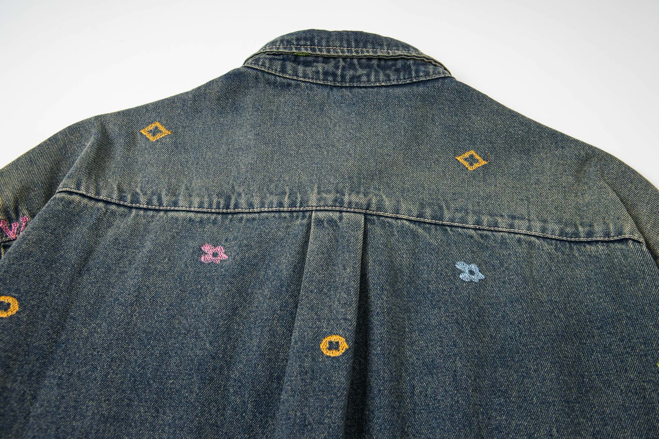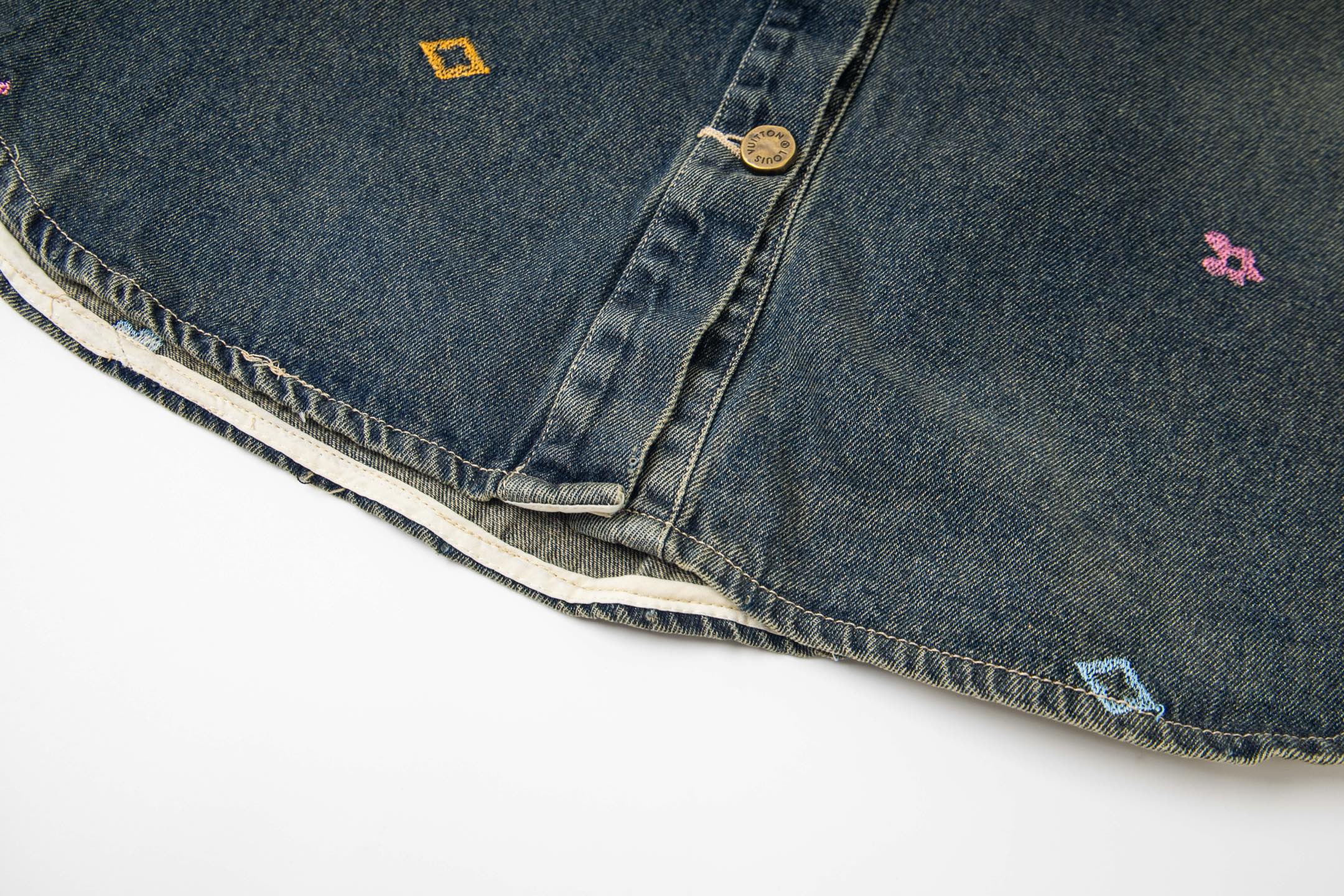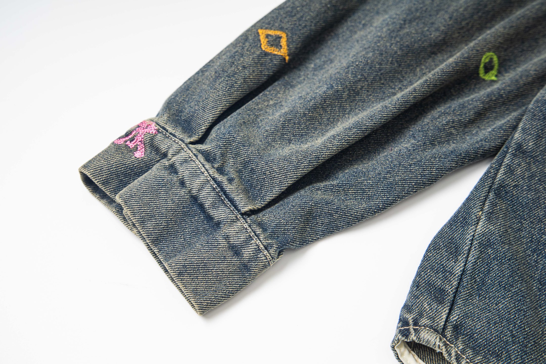 Details: Embroidered denim jacket, washable, with an elegant gradient color