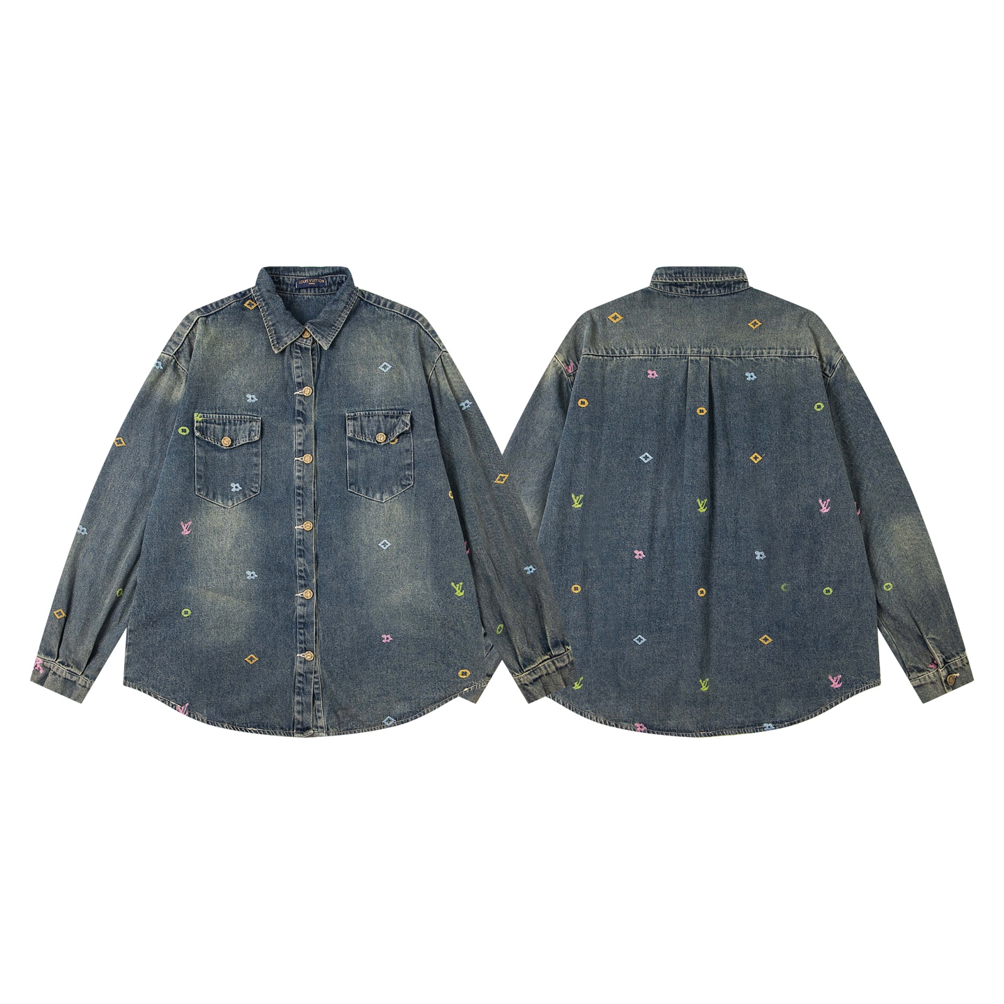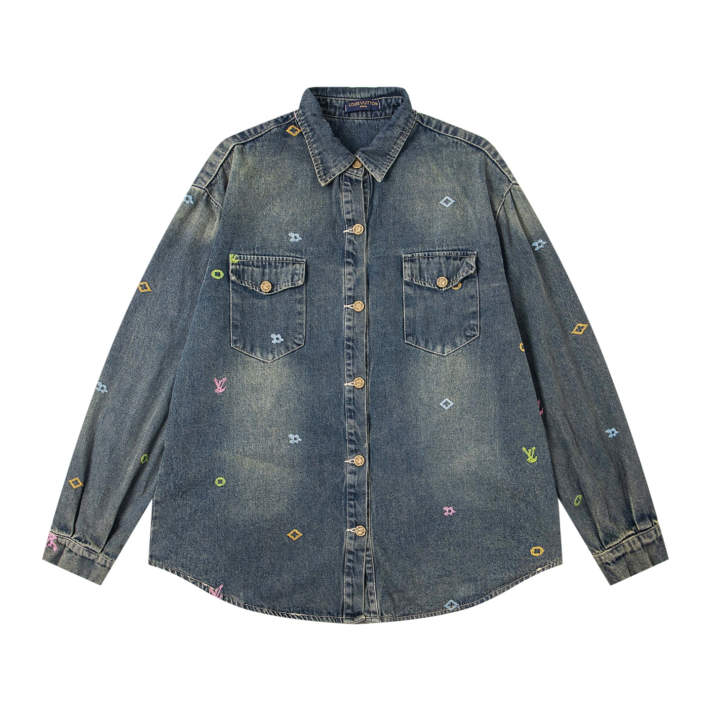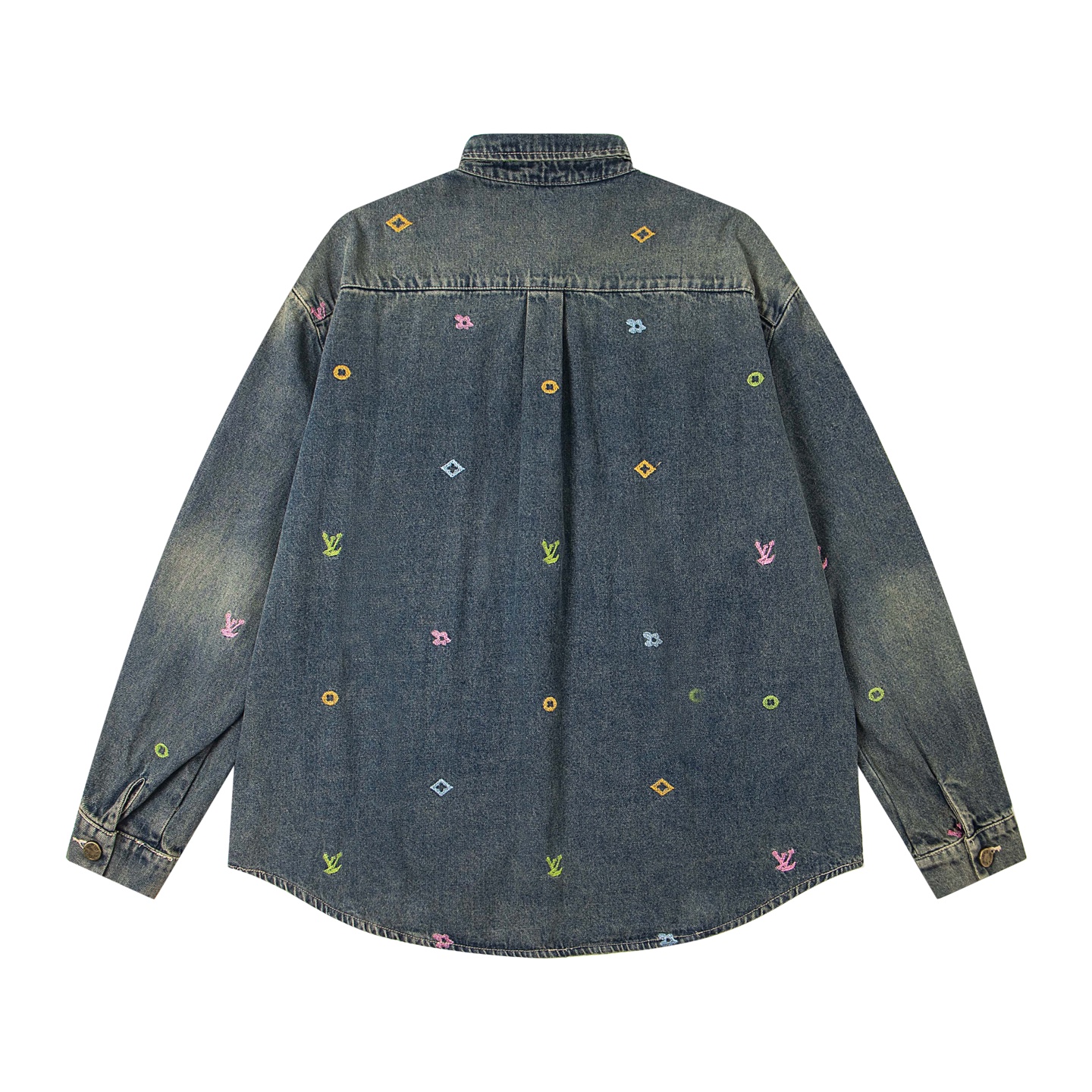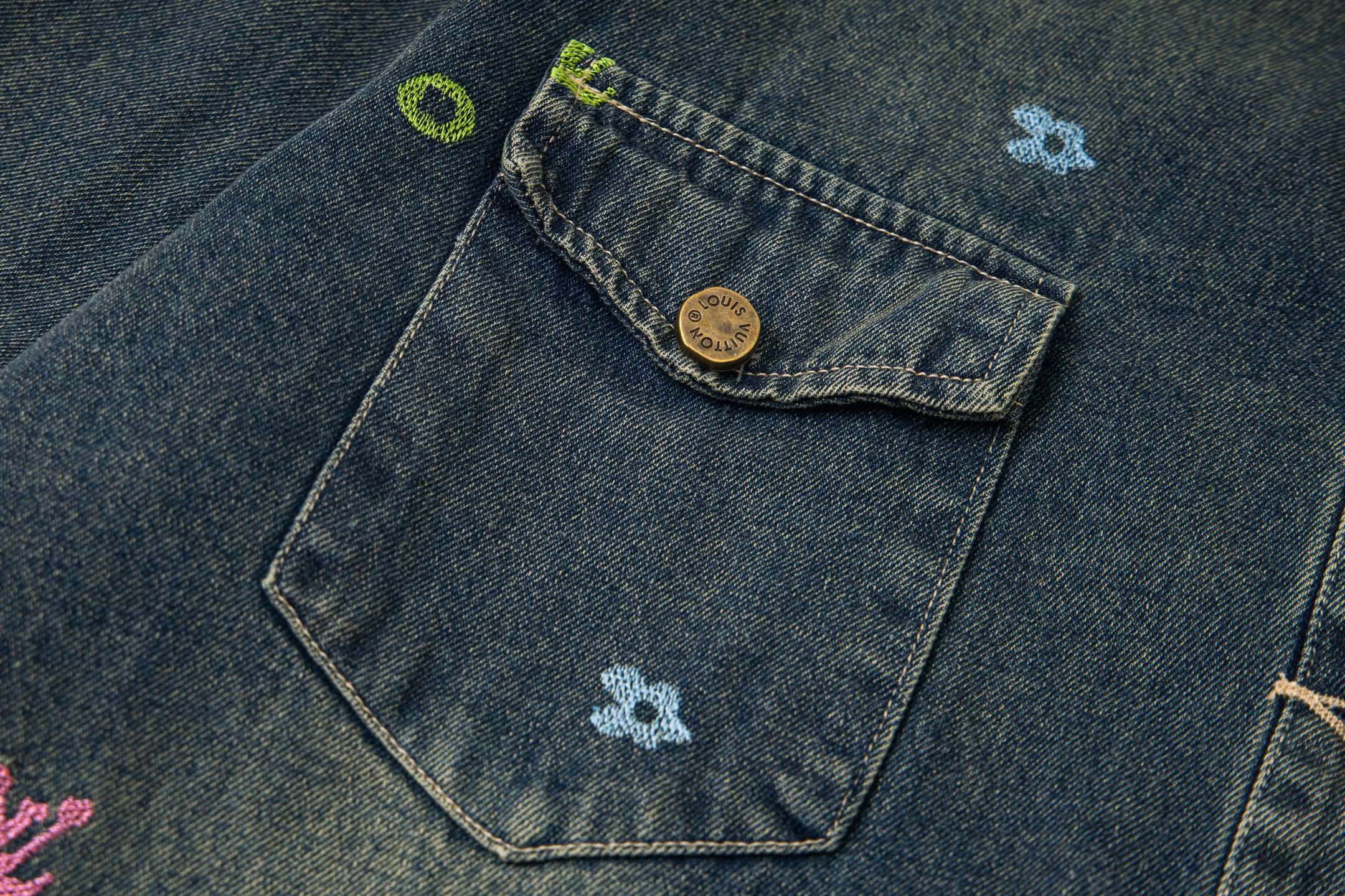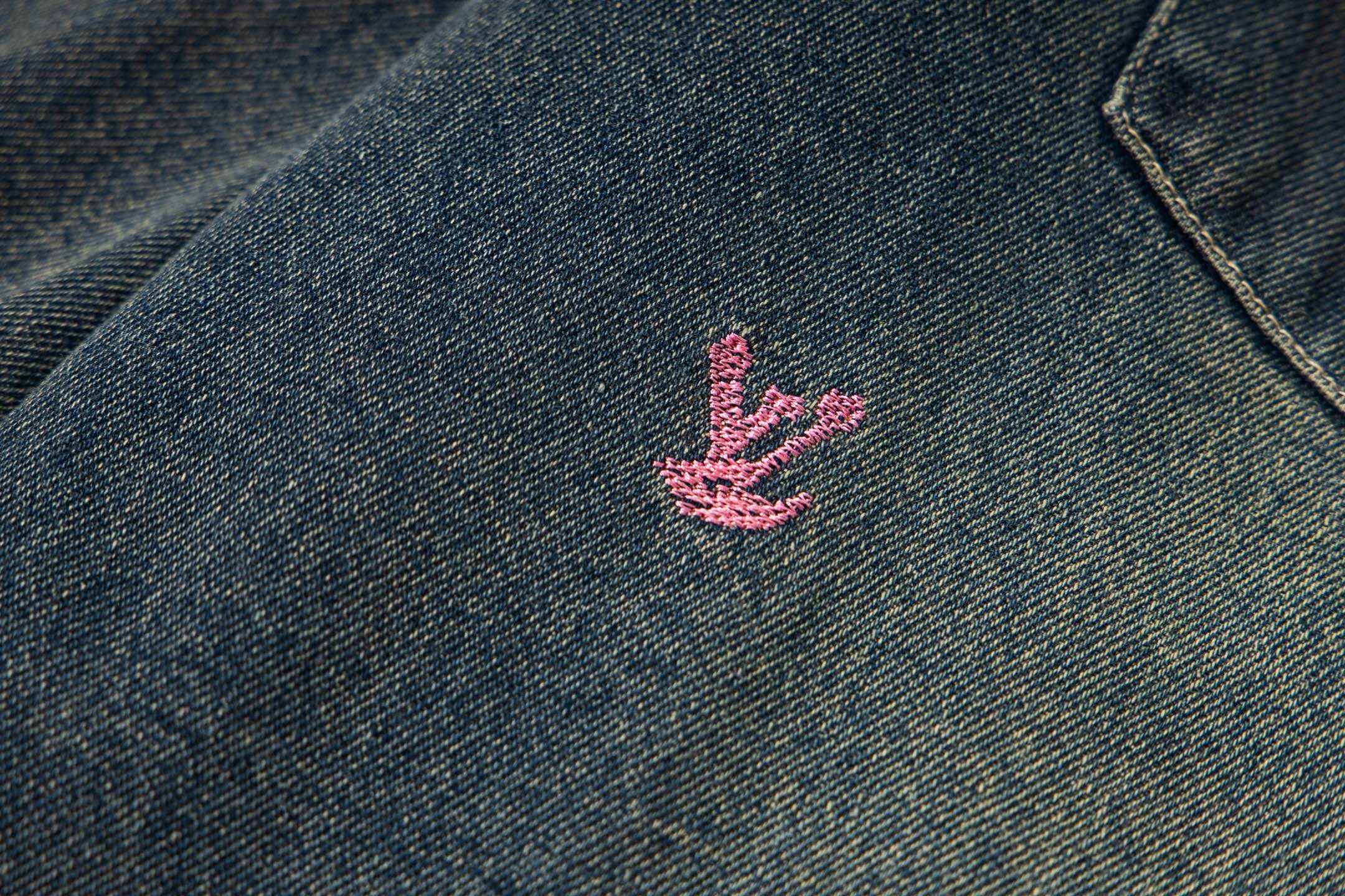 Details: Embroidered denim jacket, washable, with an elegant gradient color