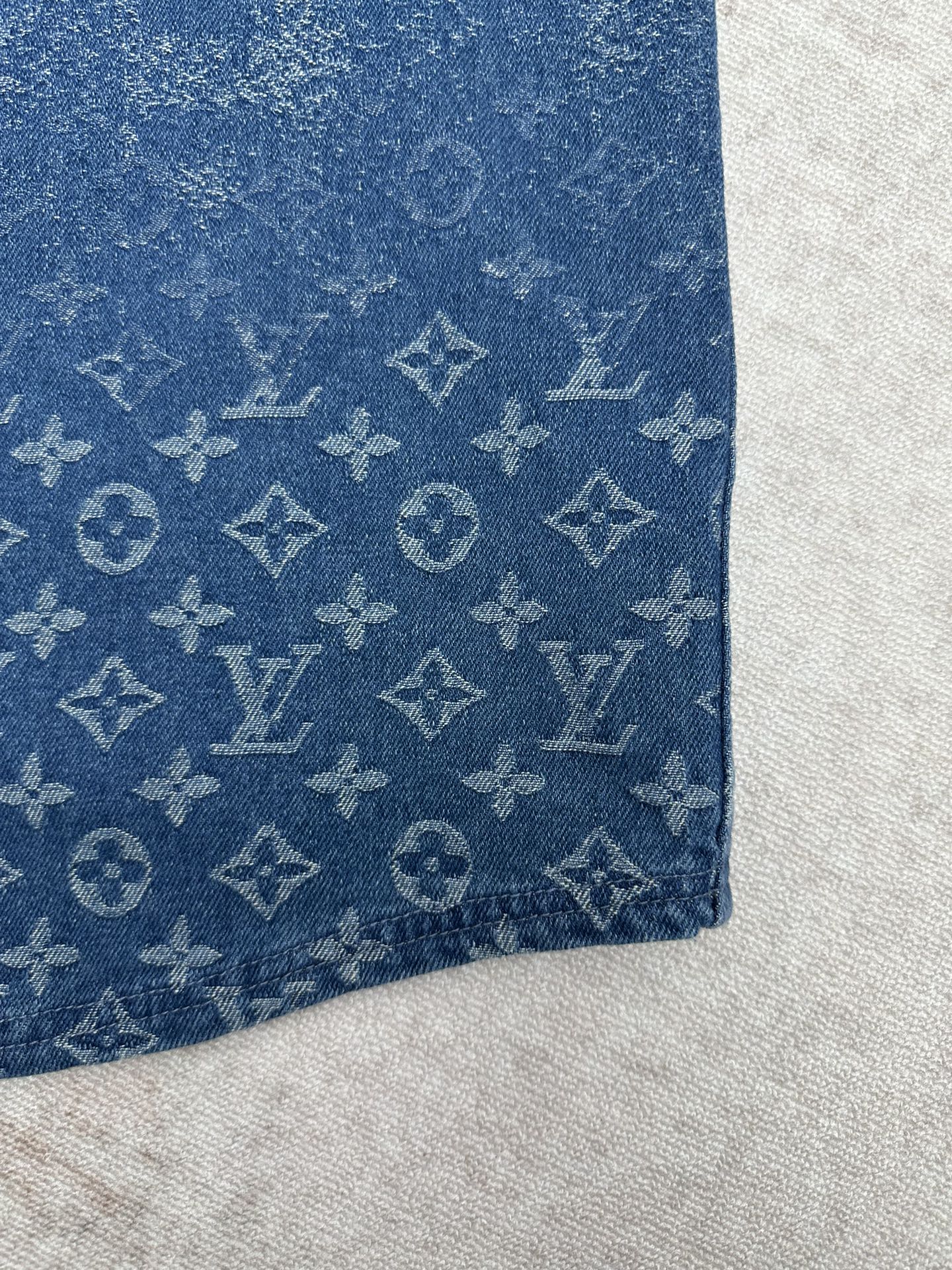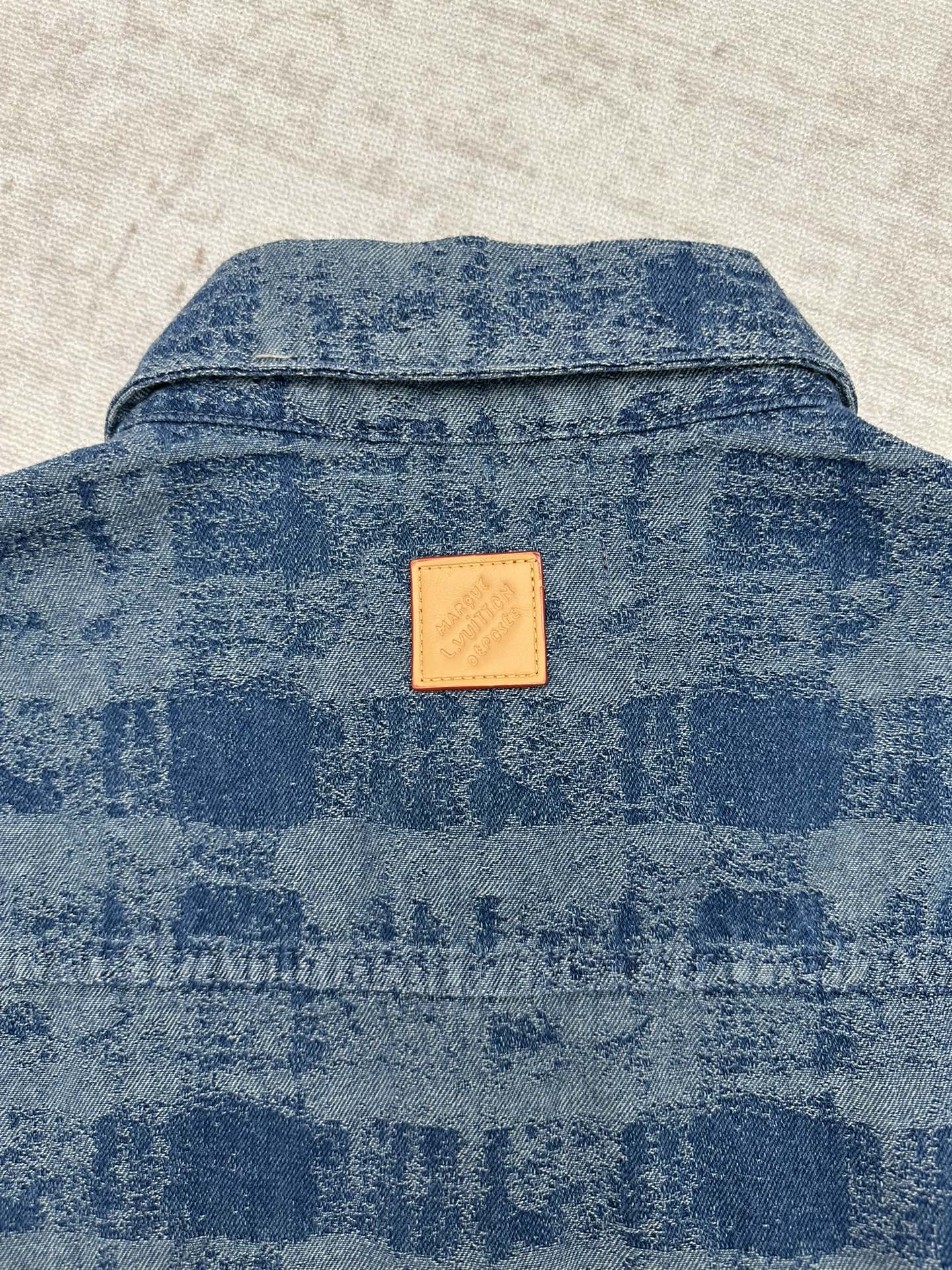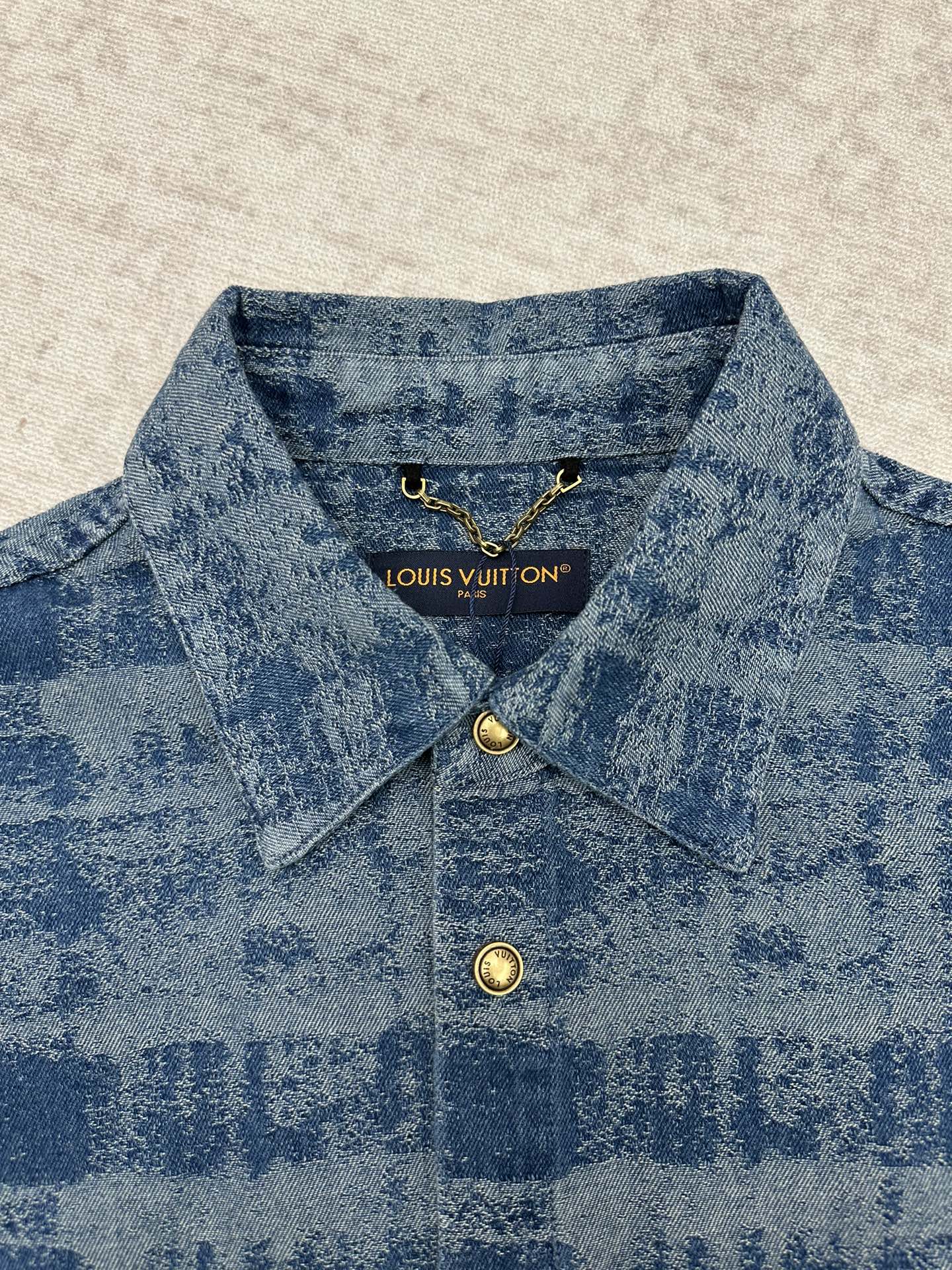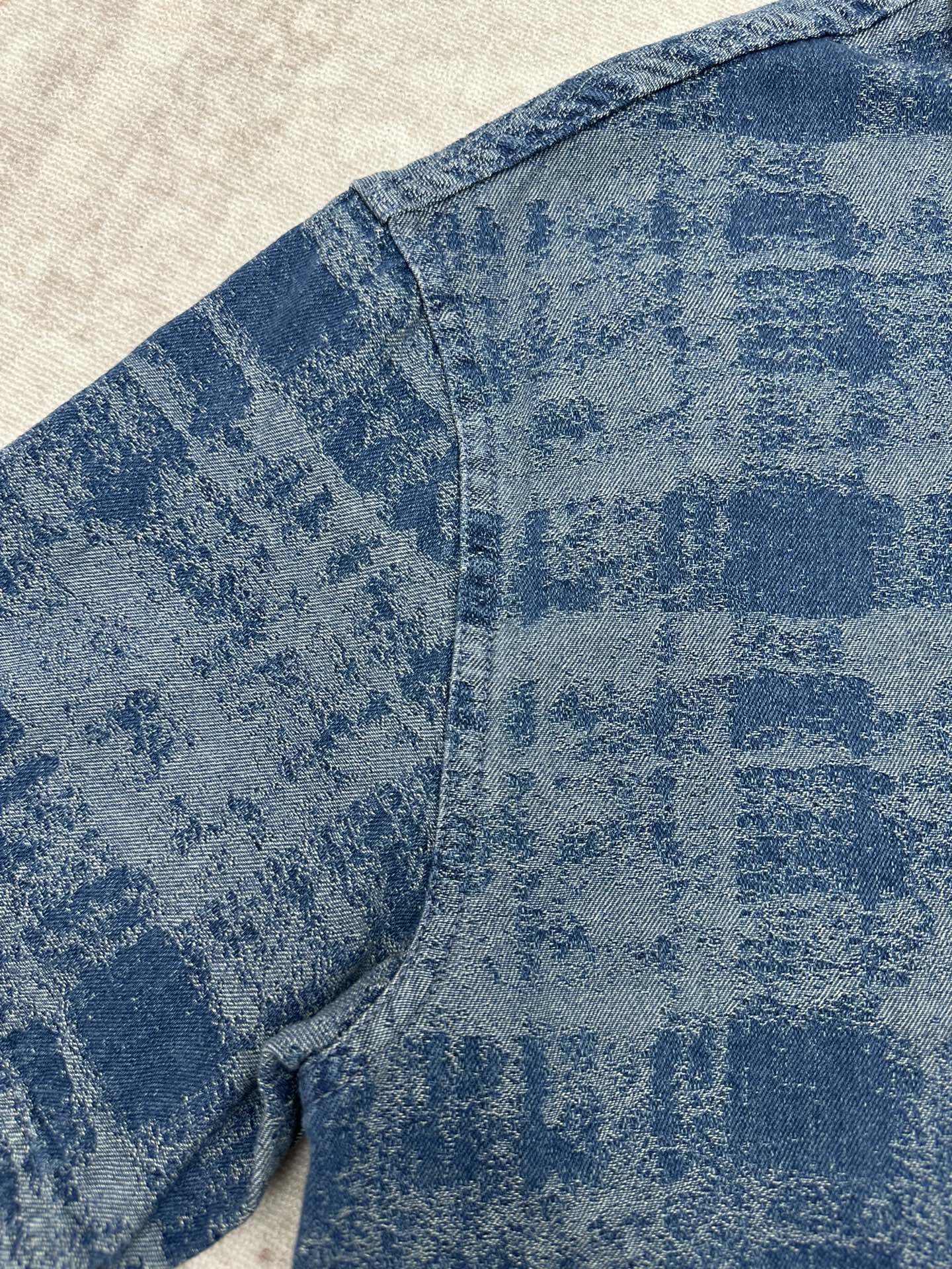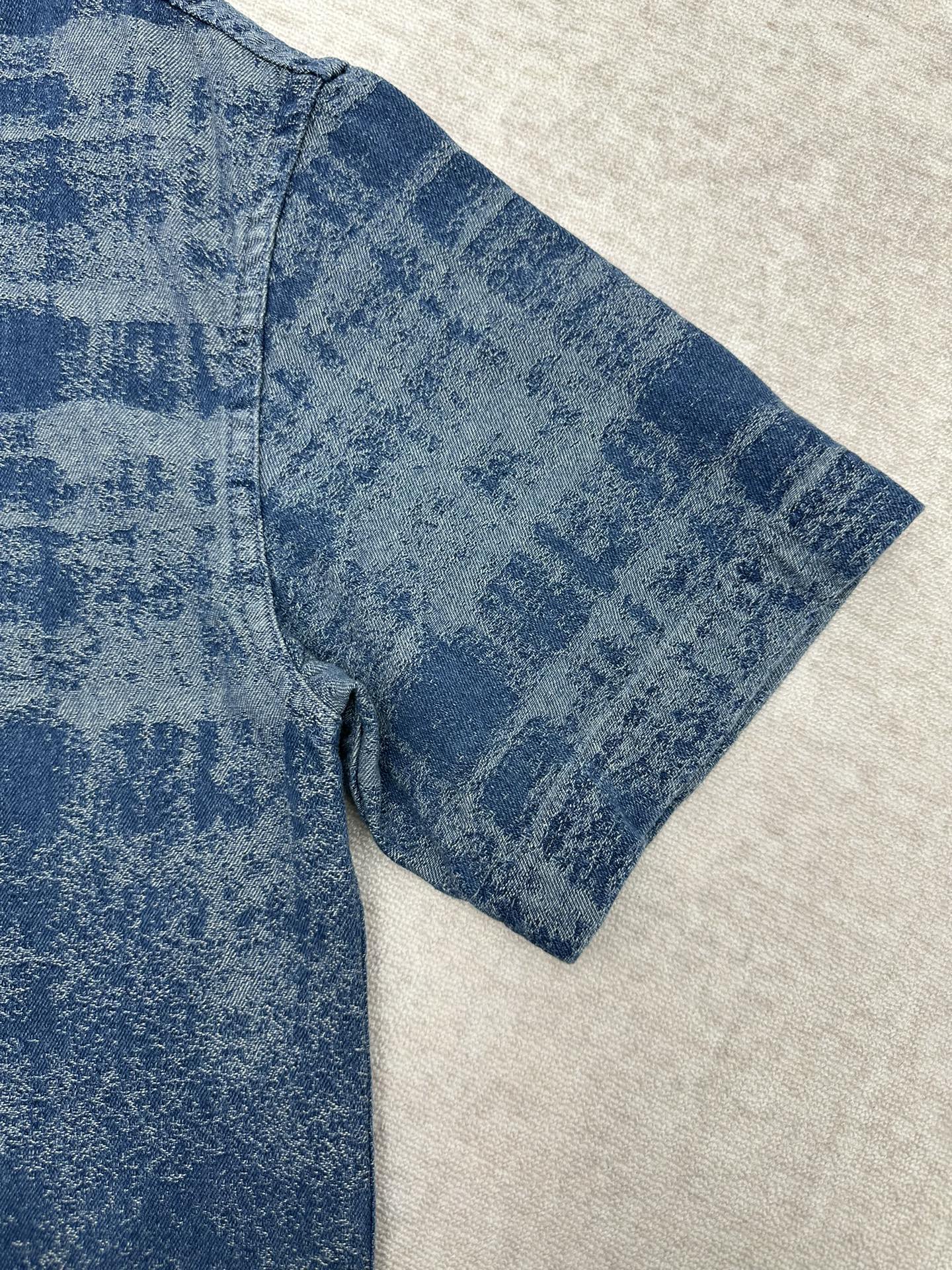 Details: Denim short-sleeved shirt with unique pattern, suitable to pair with shorts for a coordinated look.