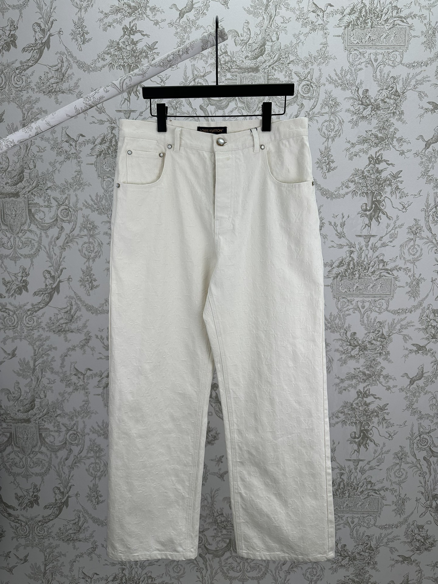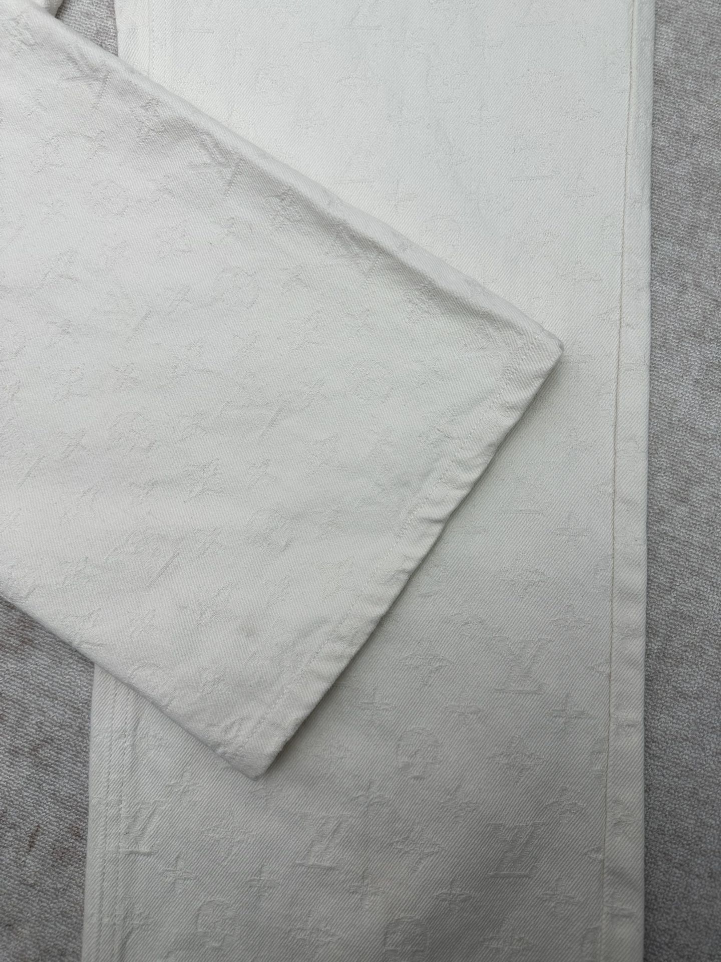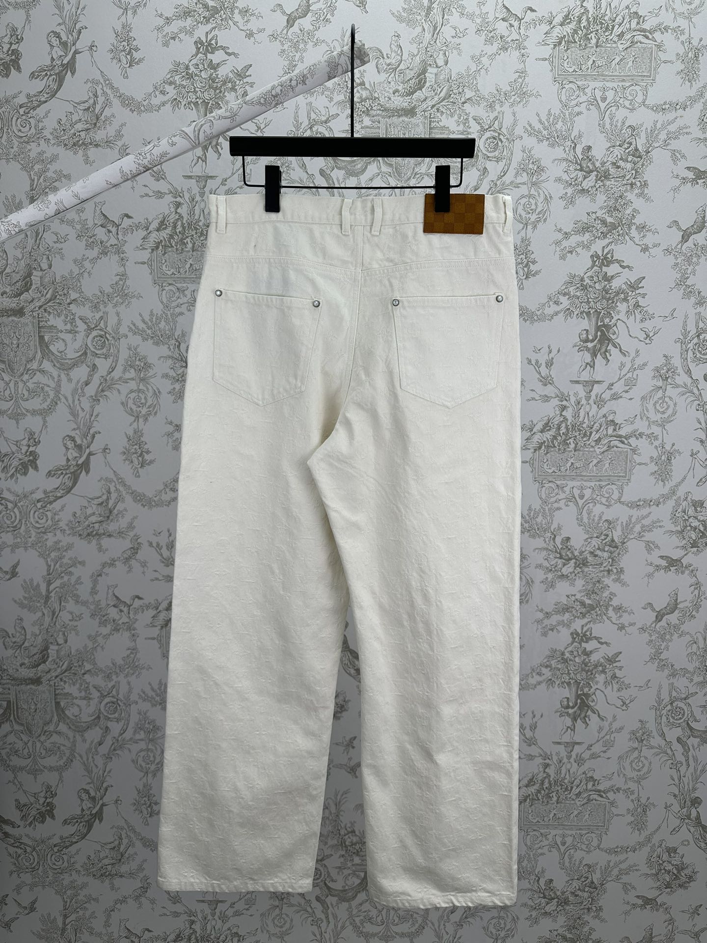 Details: Embossed denim pants with an elegant cut, matching the same-style jacket