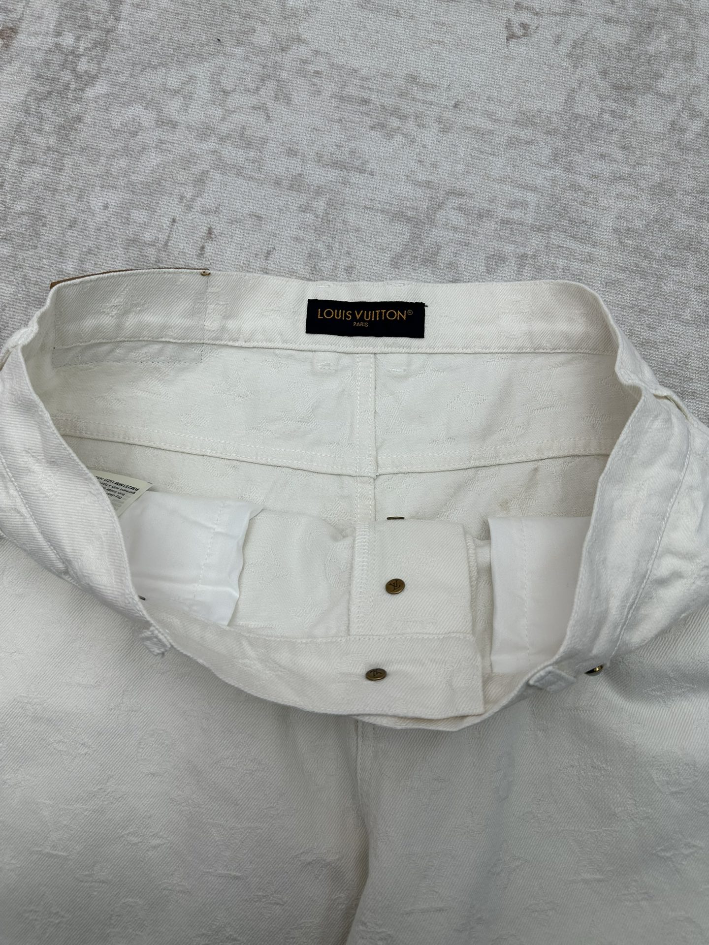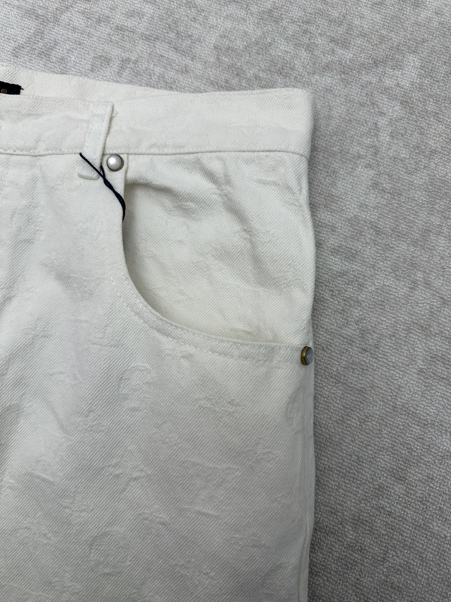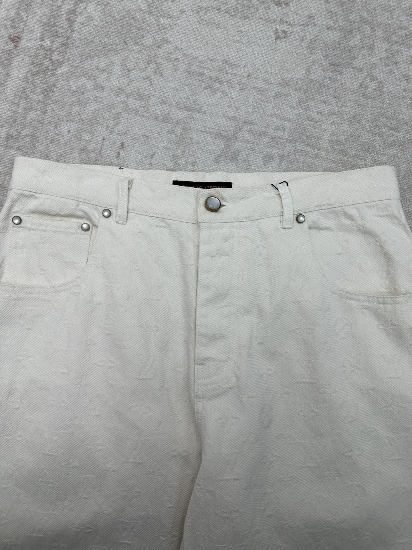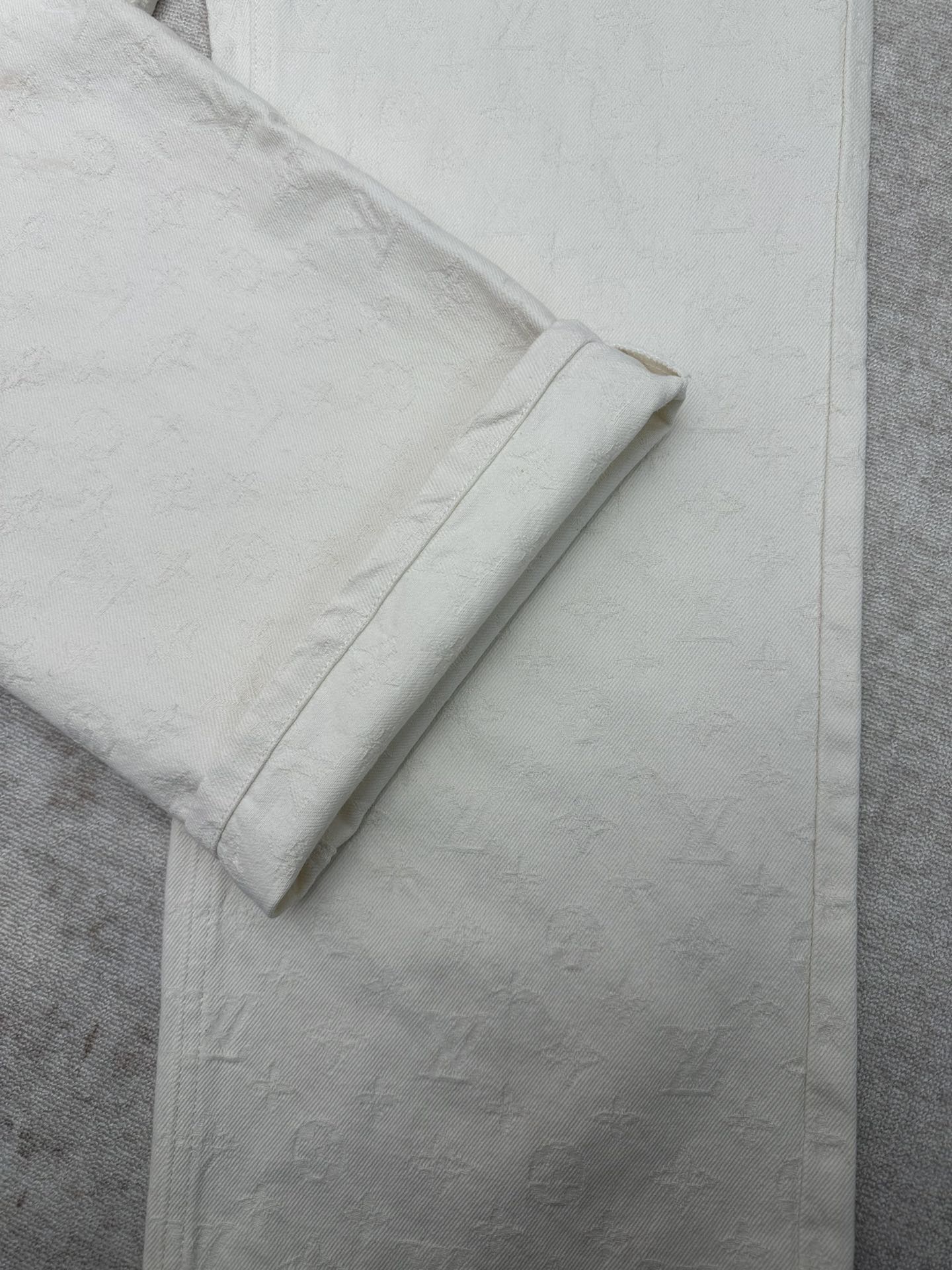 Details: Embossed denim pants with an elegant cut, matching the same-style jacket
