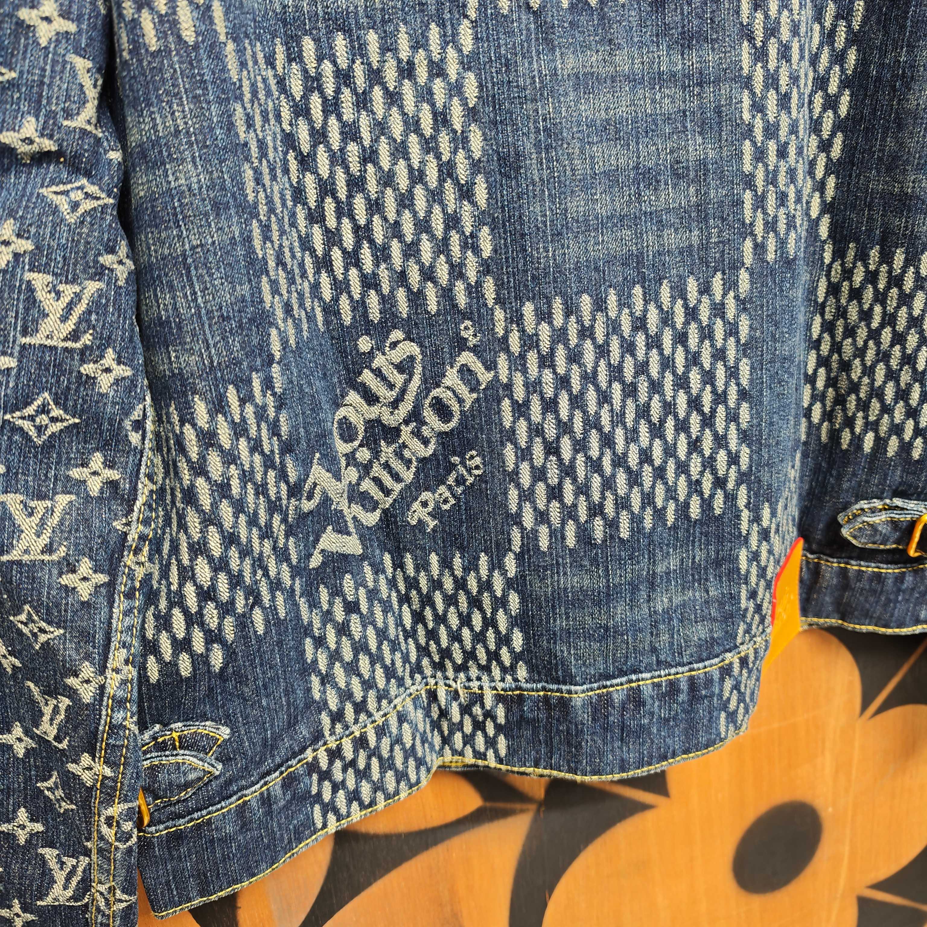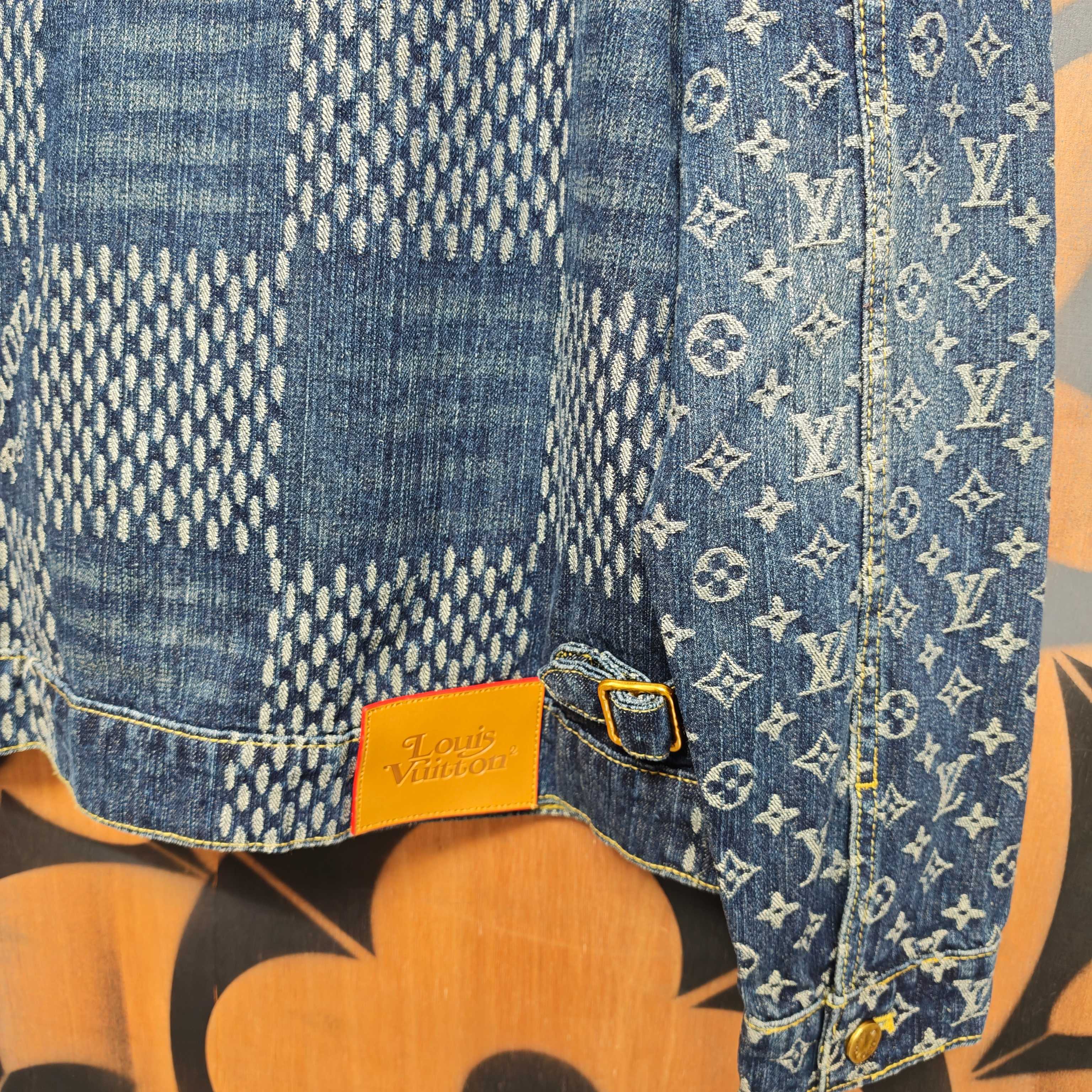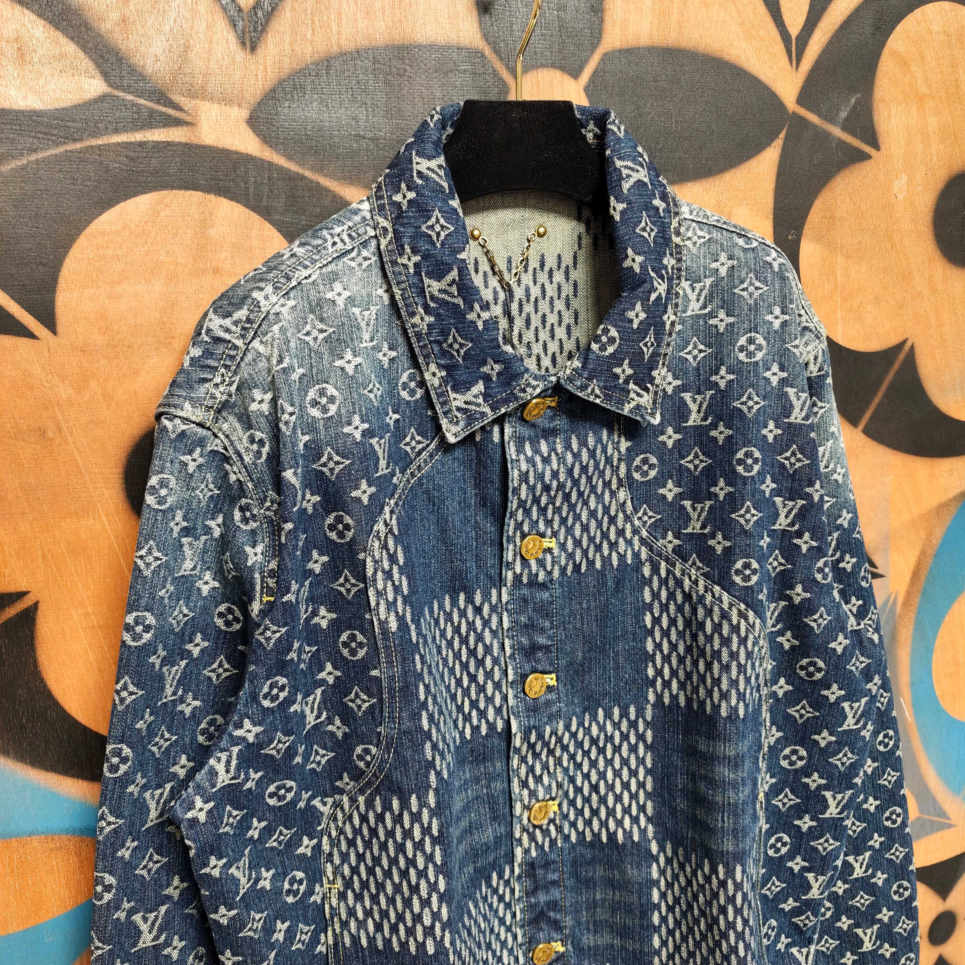 Details: Collaborative denim jacket with distinctive patterns, made of cotton, with a logo label and metal parts