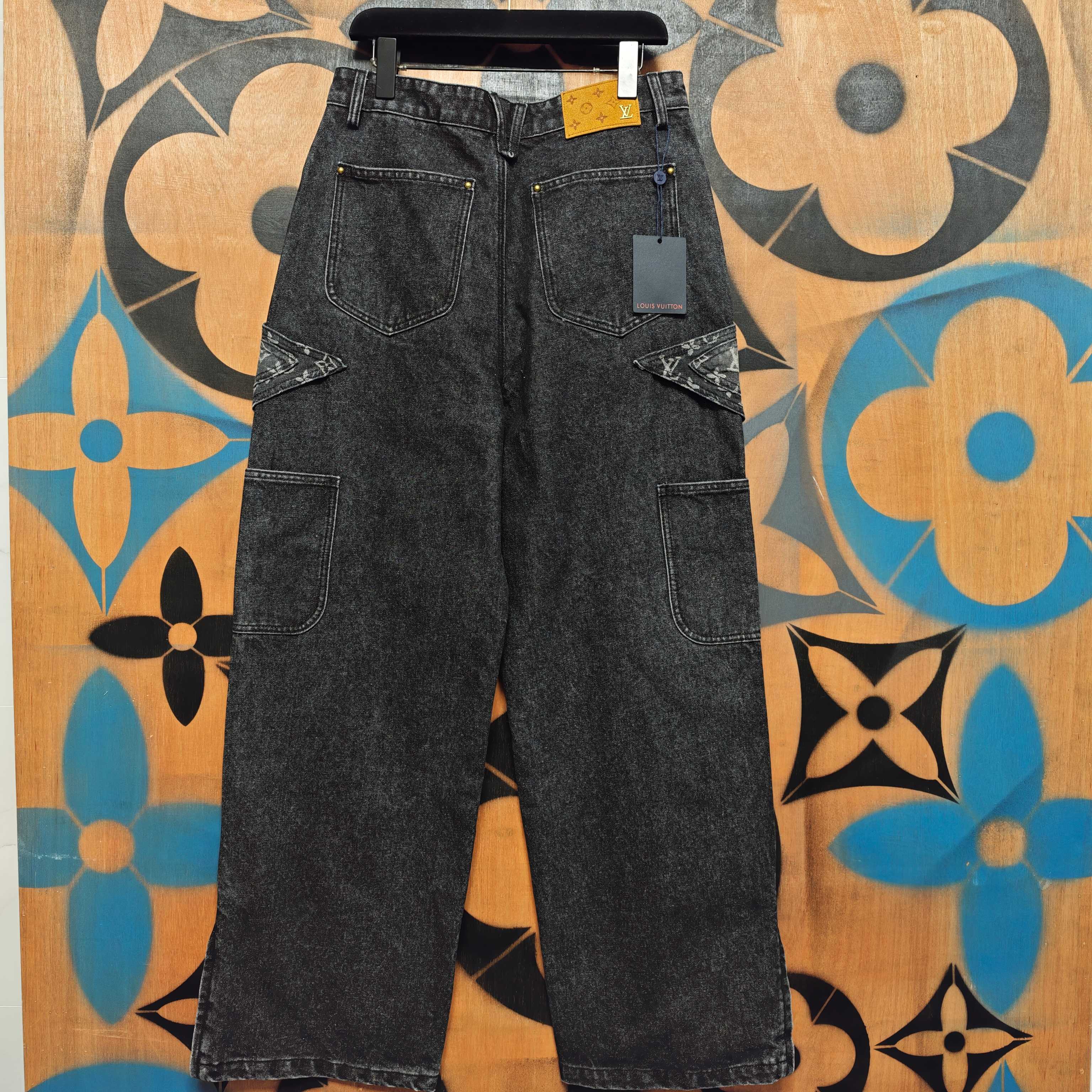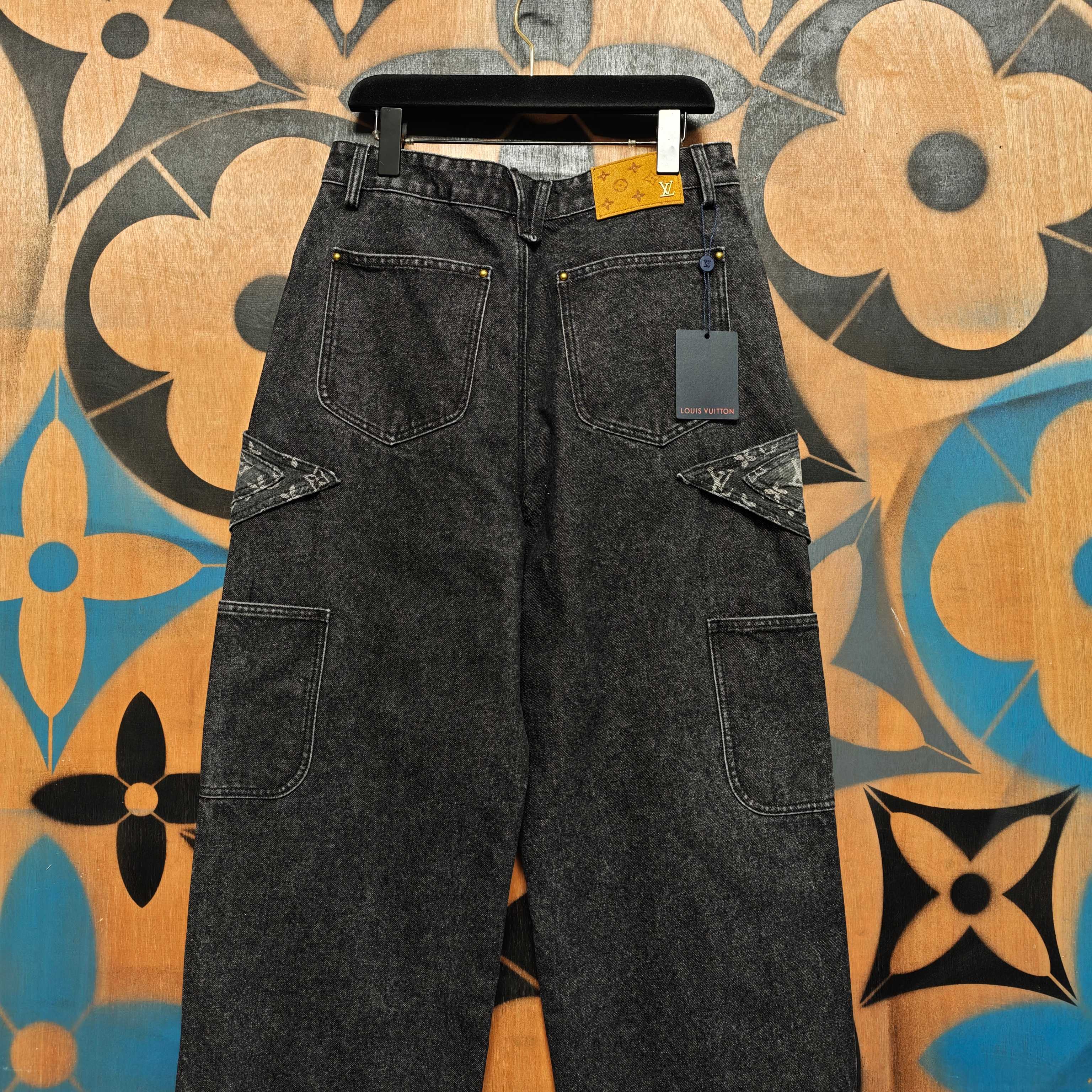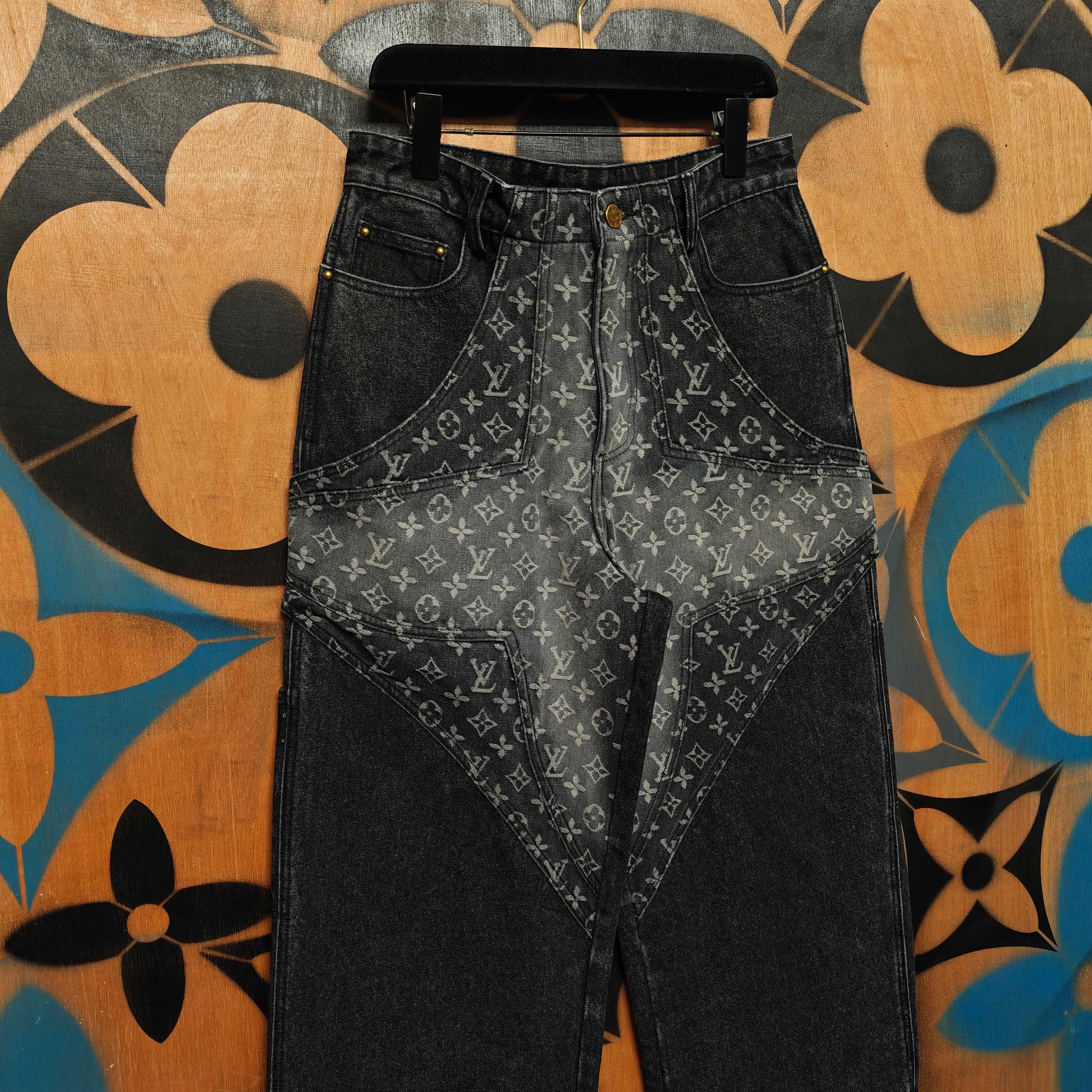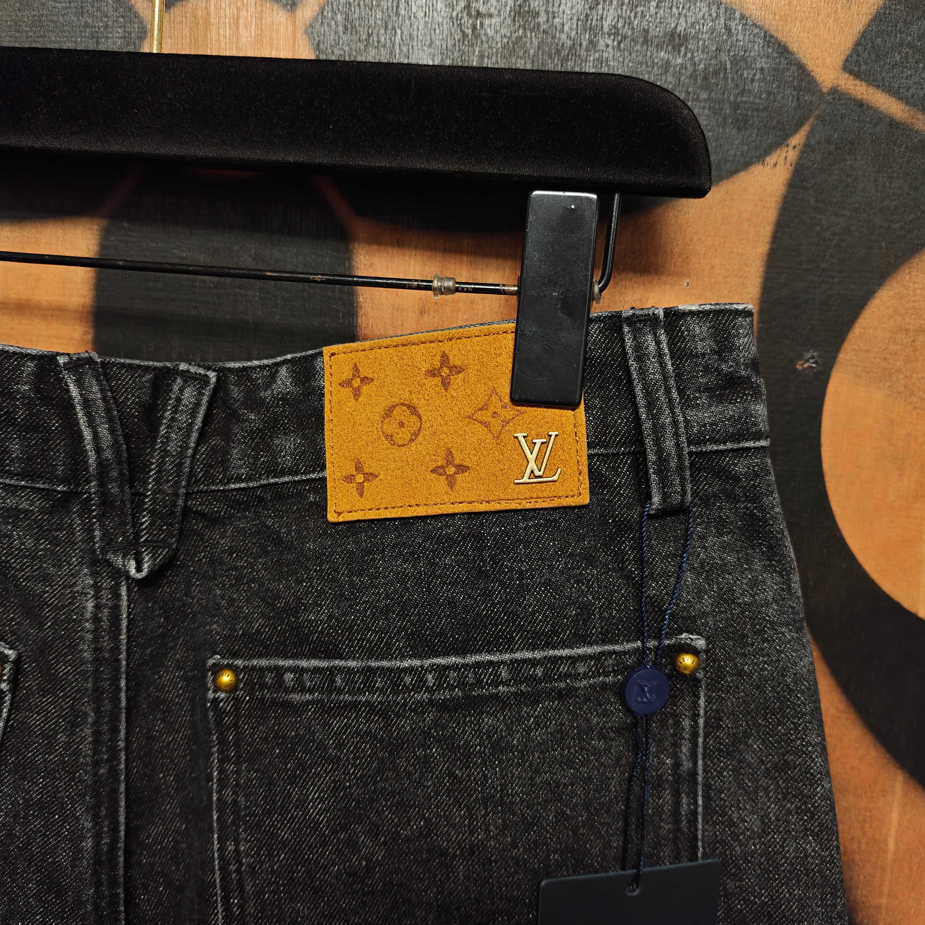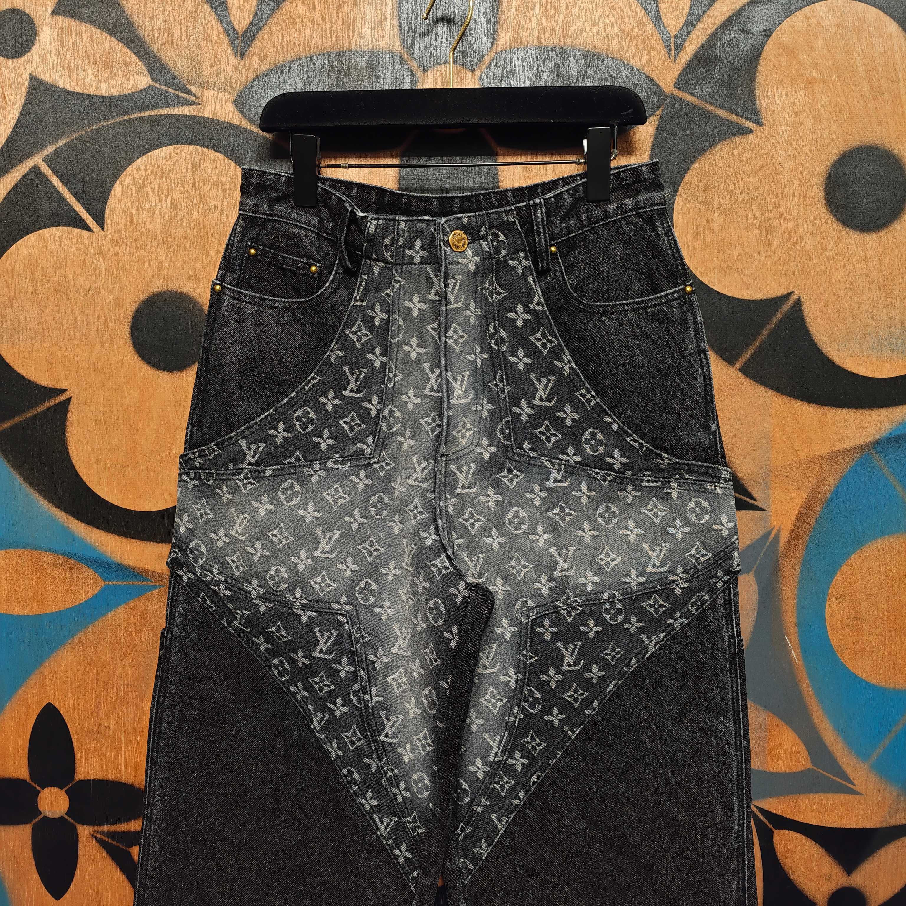 Details: Cowboy pants with clover and jacquard splicing, multi-process washed, with a leather label and zipper
