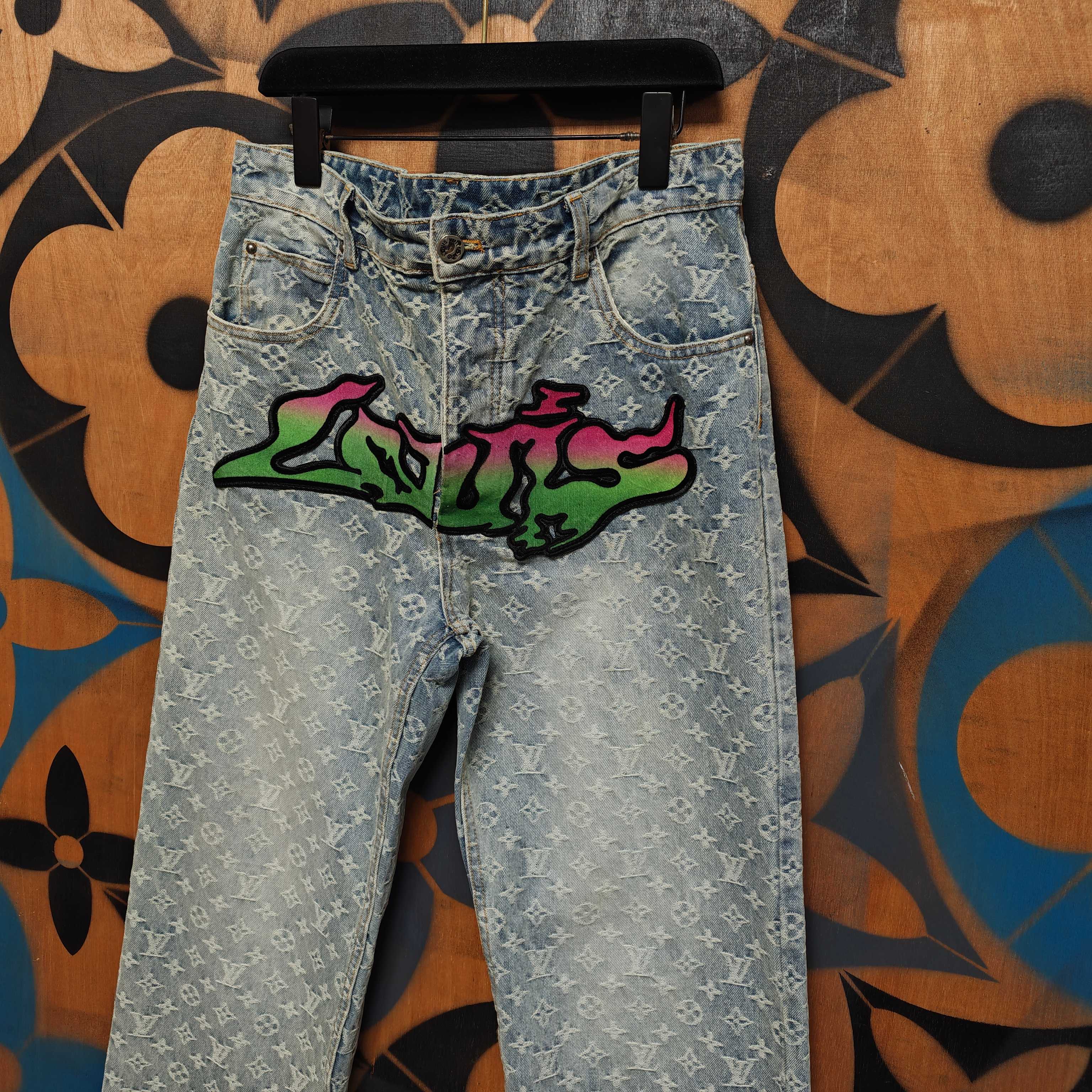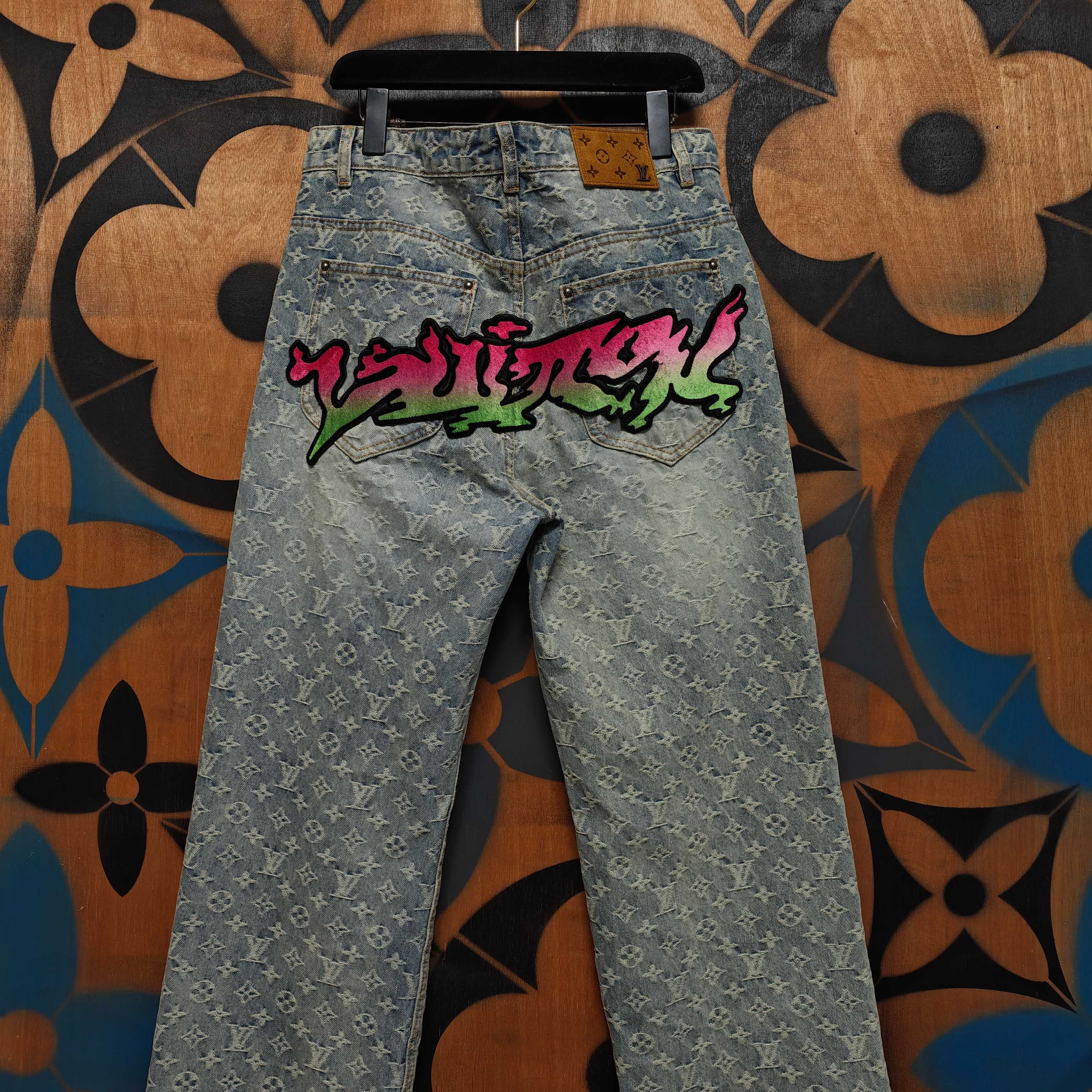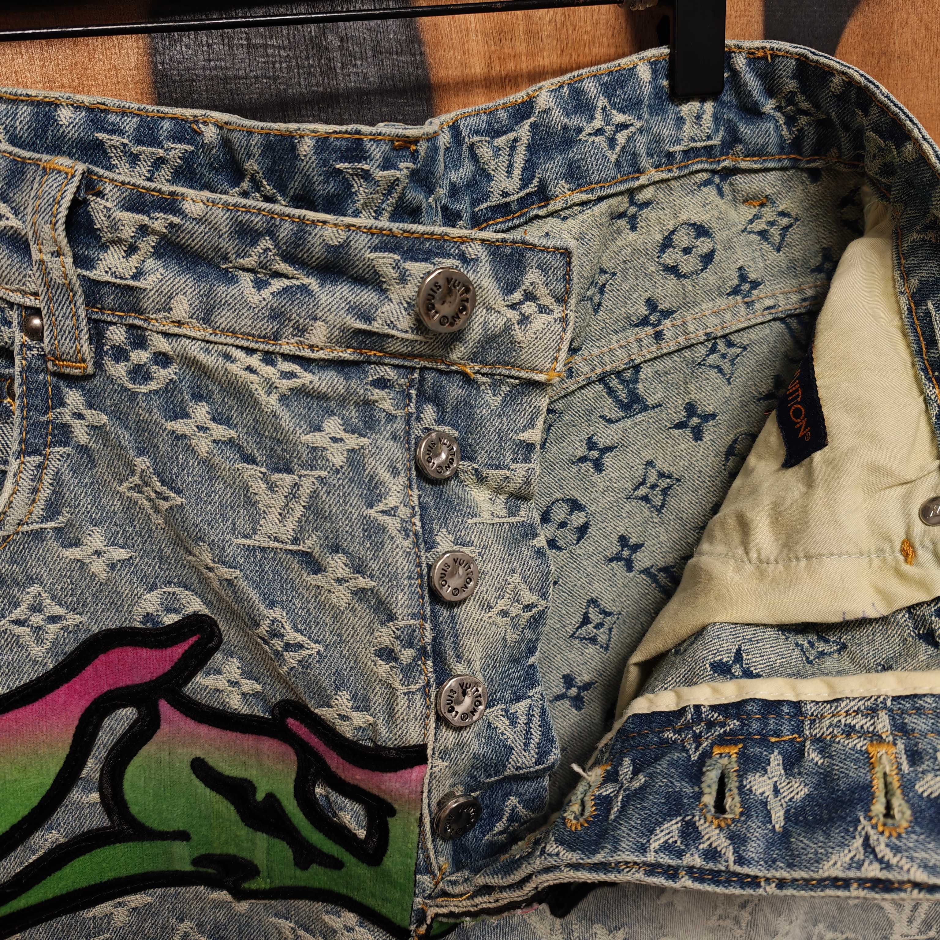 Details: Jeans with custom jacquard canvas, washed for a vintage look, featuring a leather label and metal buttons