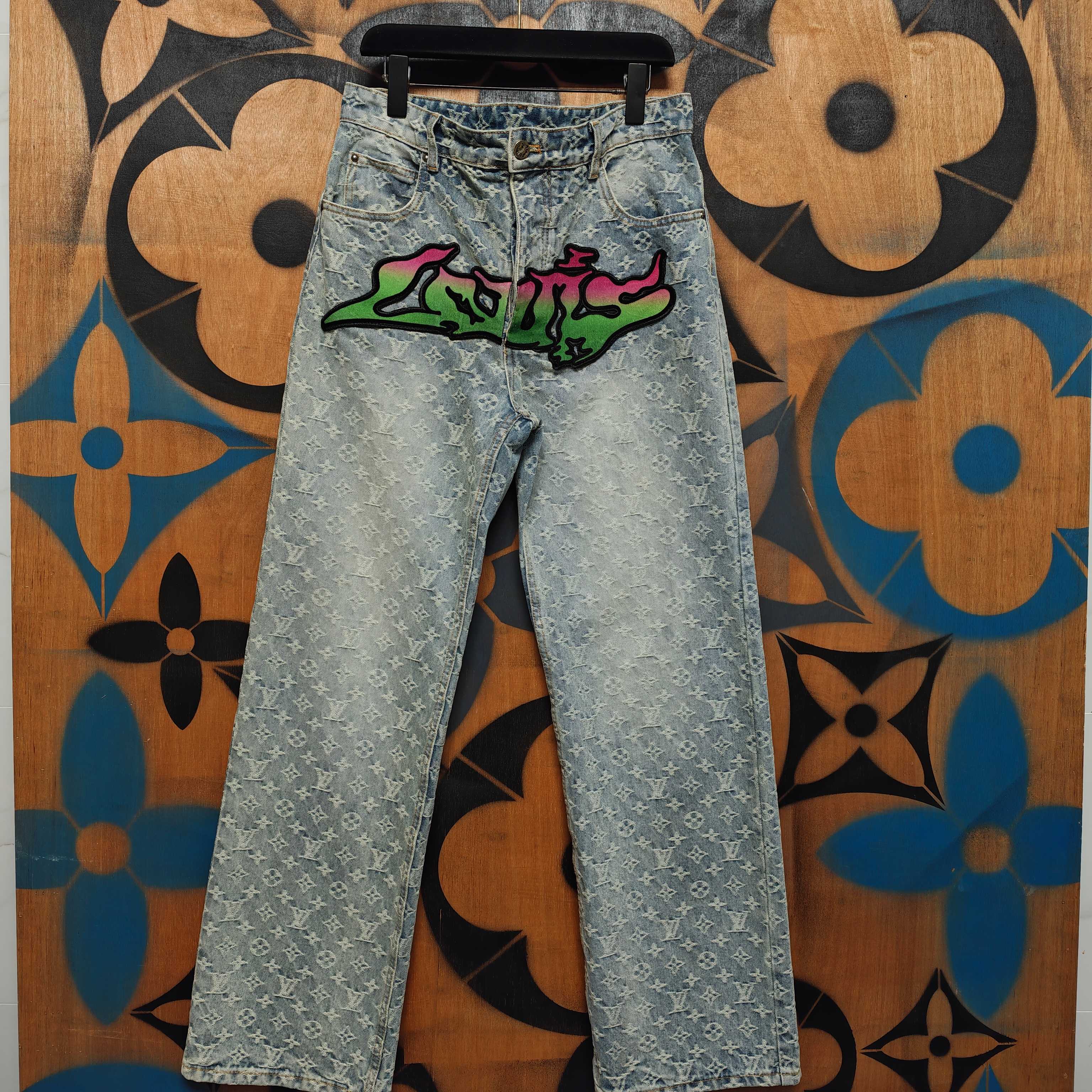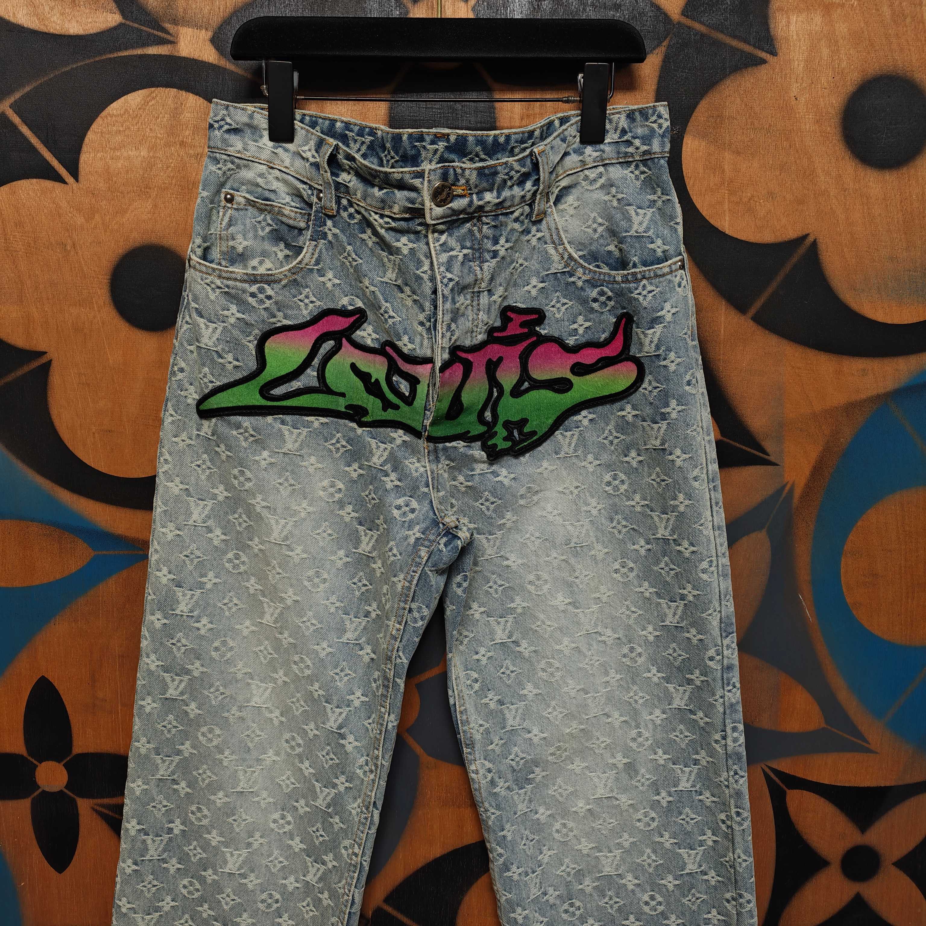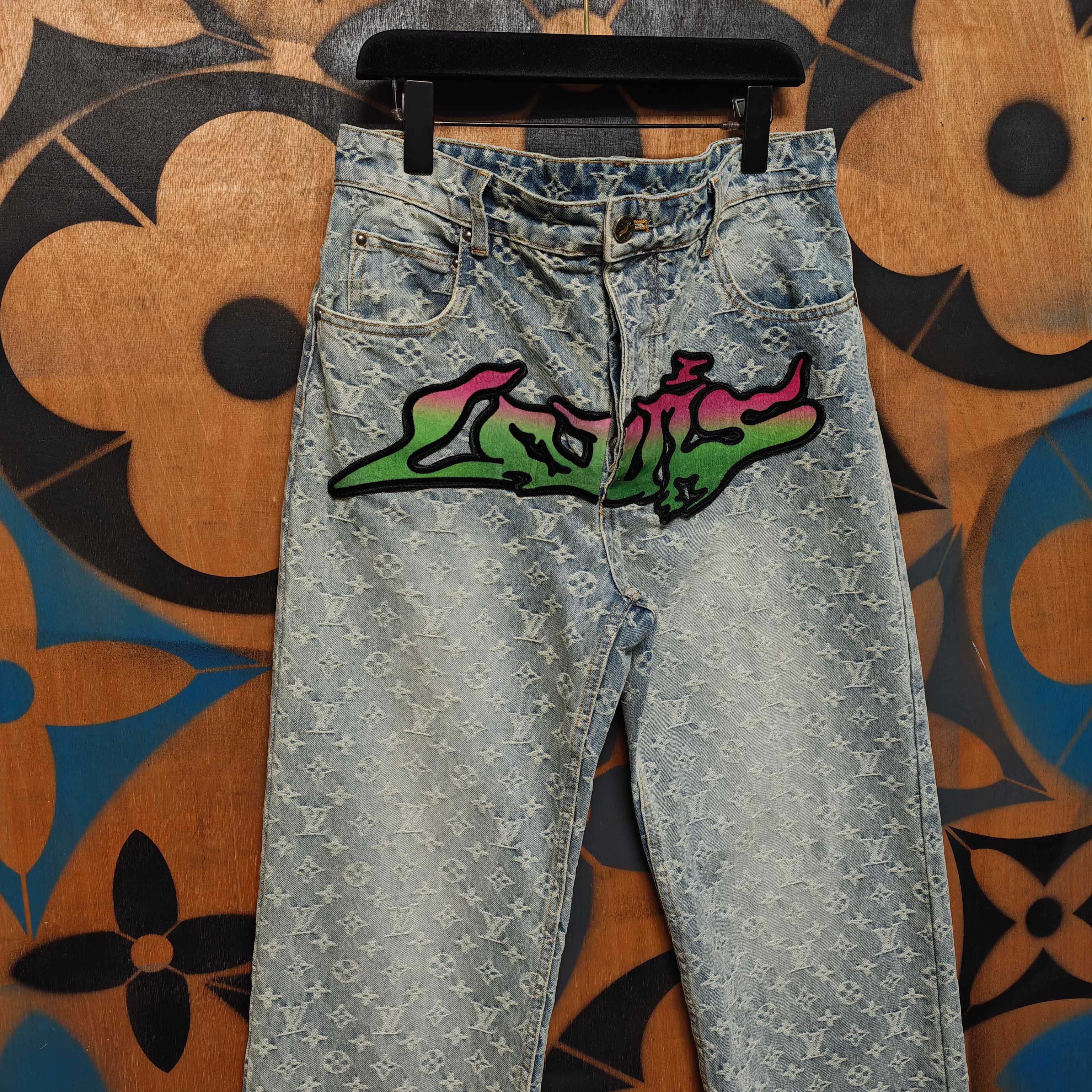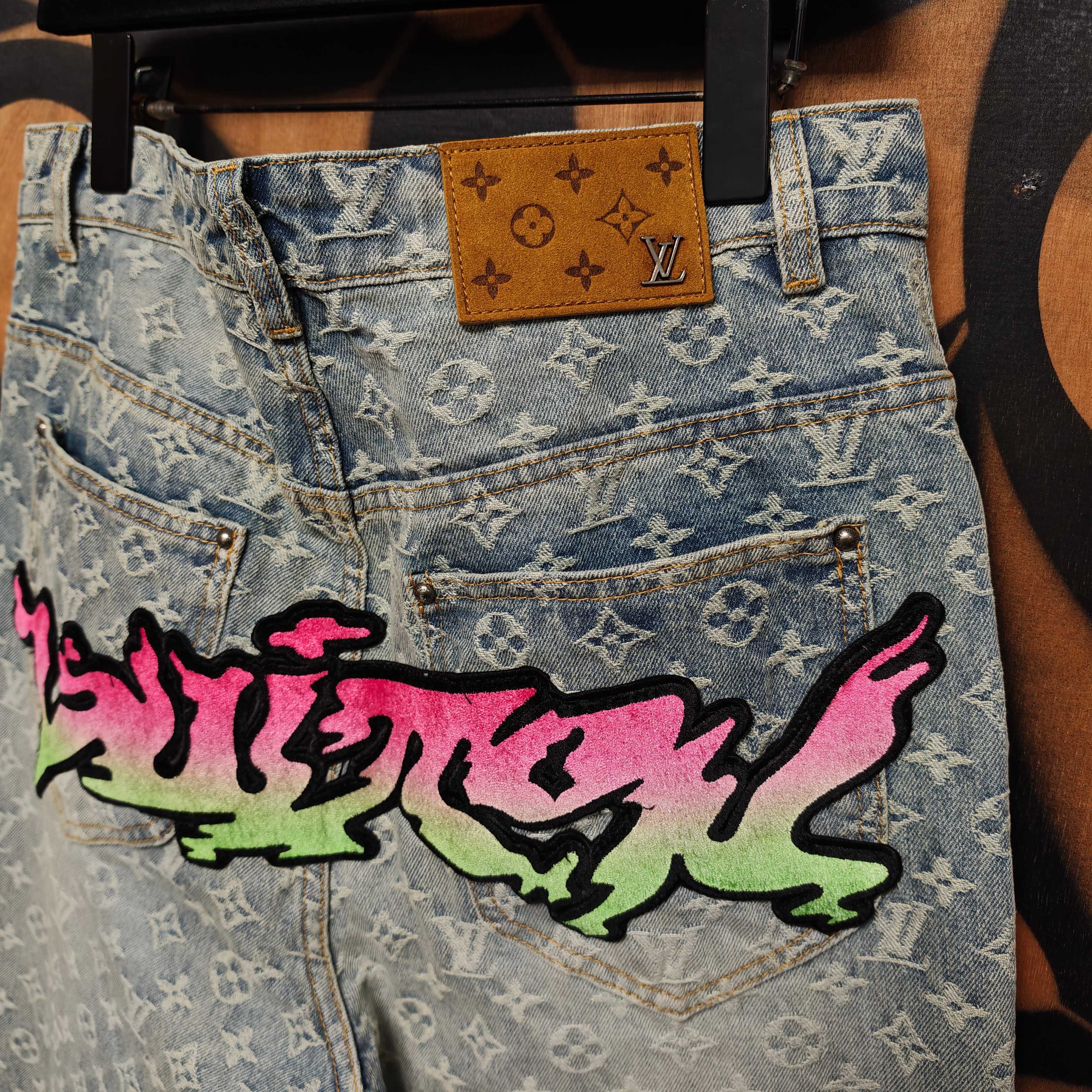 Details: Jeans with custom jacquard canvas, washed for a vintage look, featuring a leather label and metal buttons