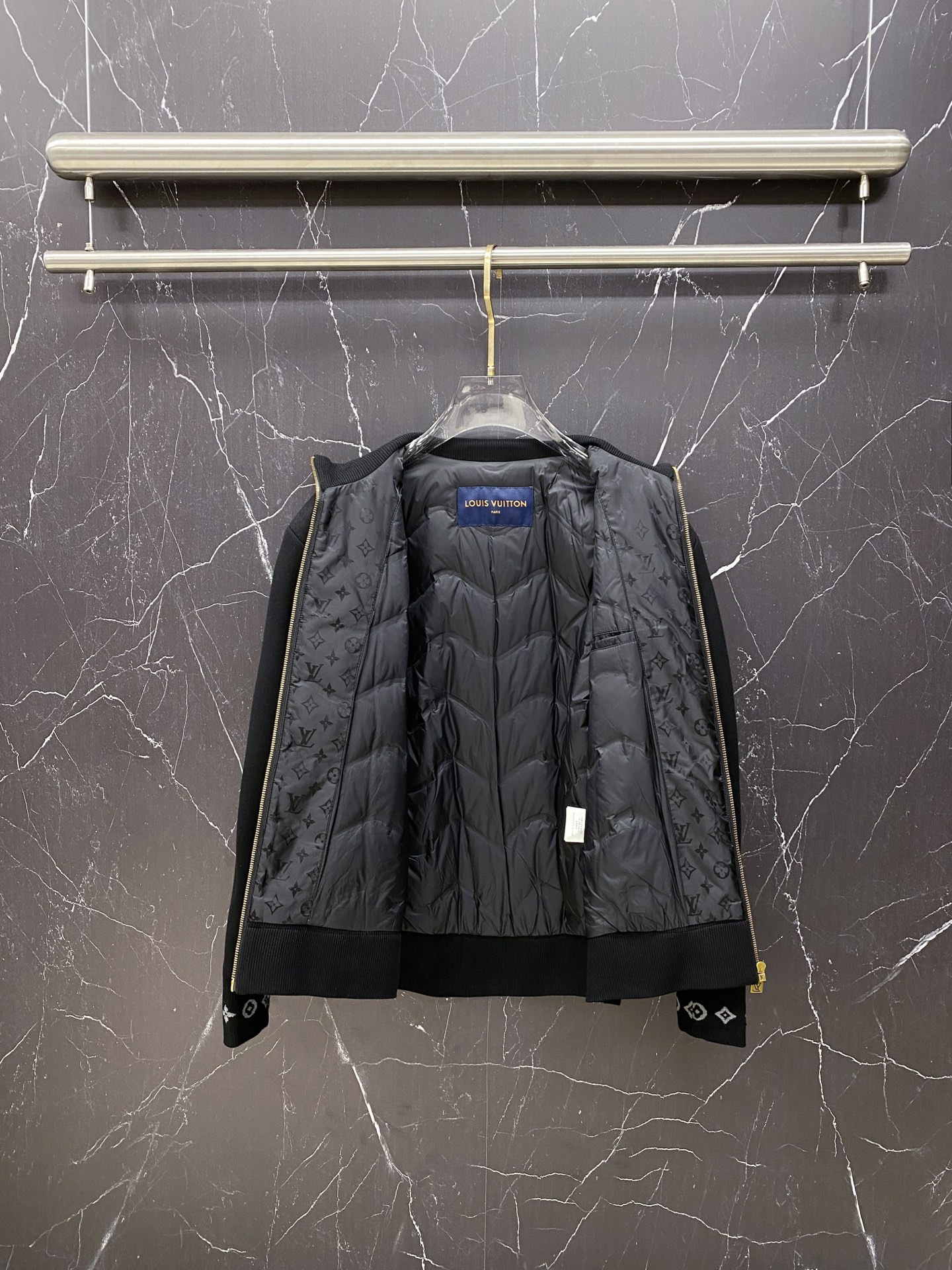 Details: Double-Layer Knitted Down Jacket with Monogram Trim, Dry Clean Only