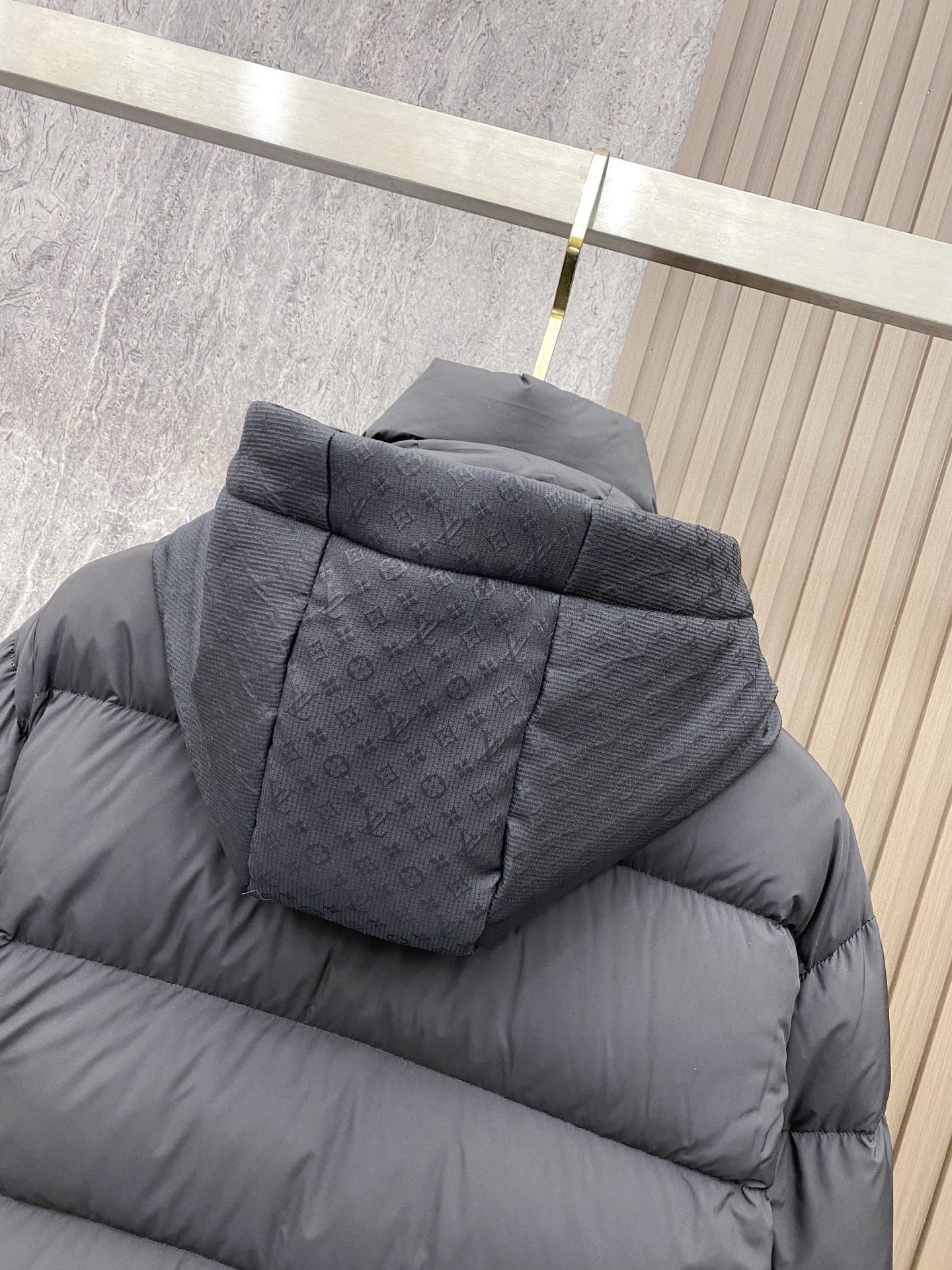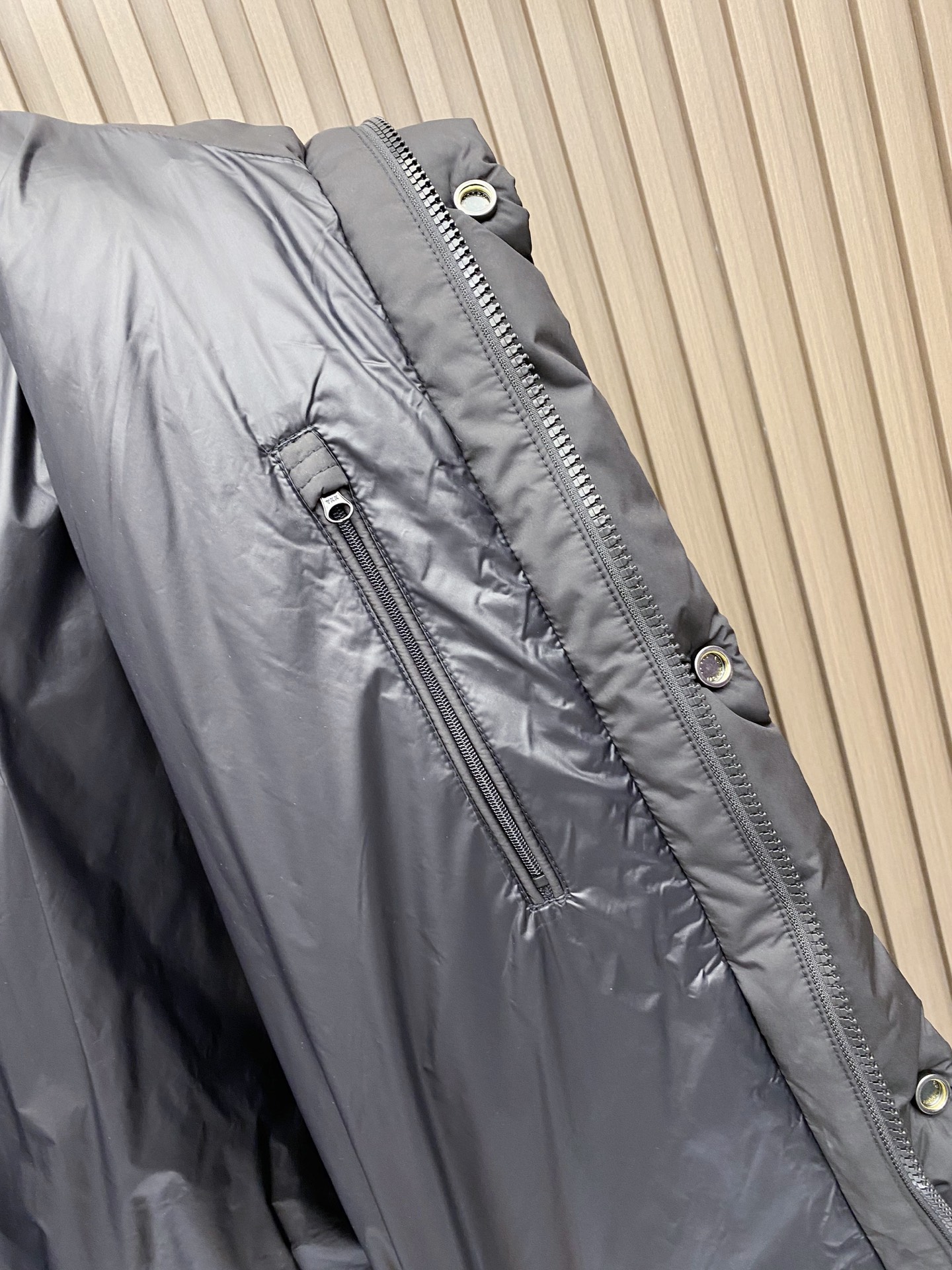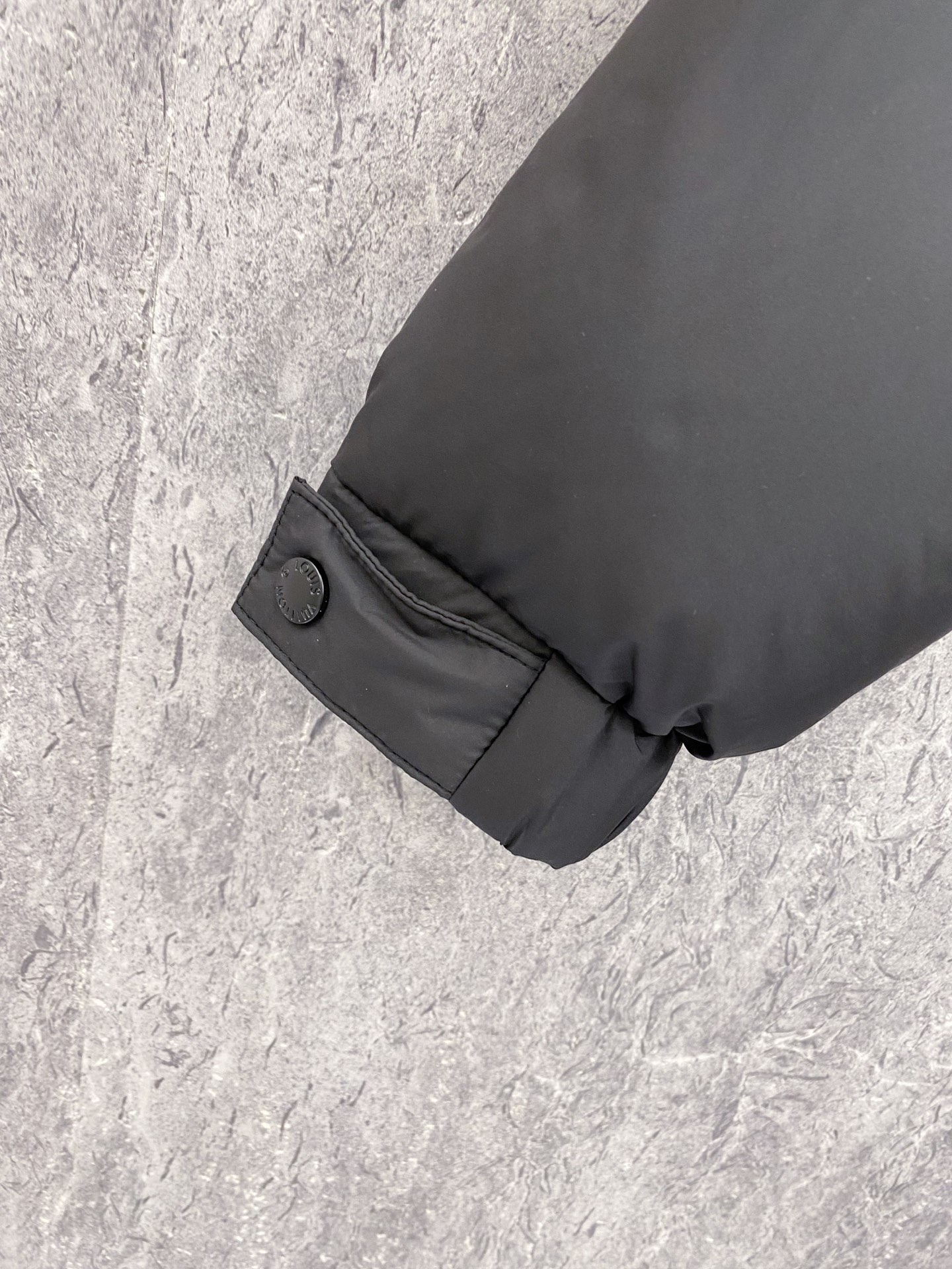 Details: Down jacket with detachable hood, filled with goose down, extremely lightweight and warm, anti-tear nylon fabric, classic logo, zipper and snap closure, adjustable drawstring hem.