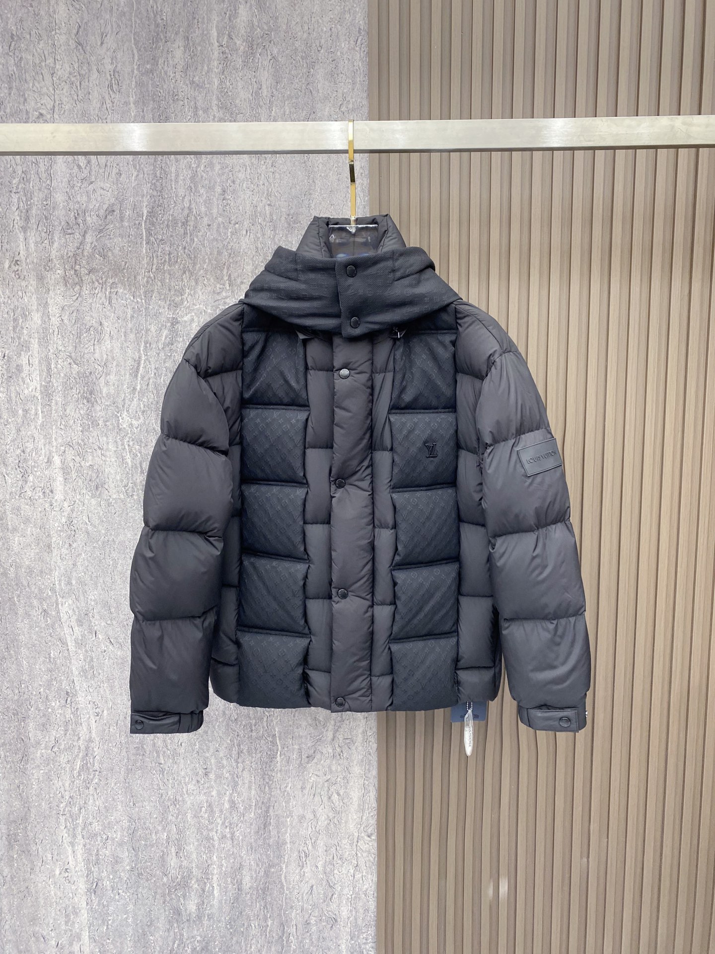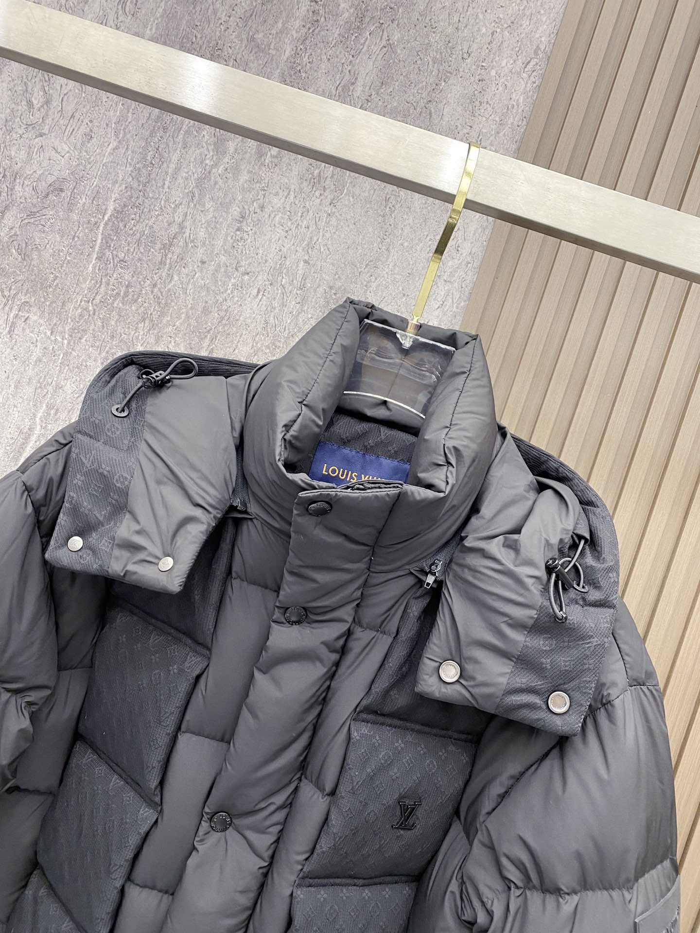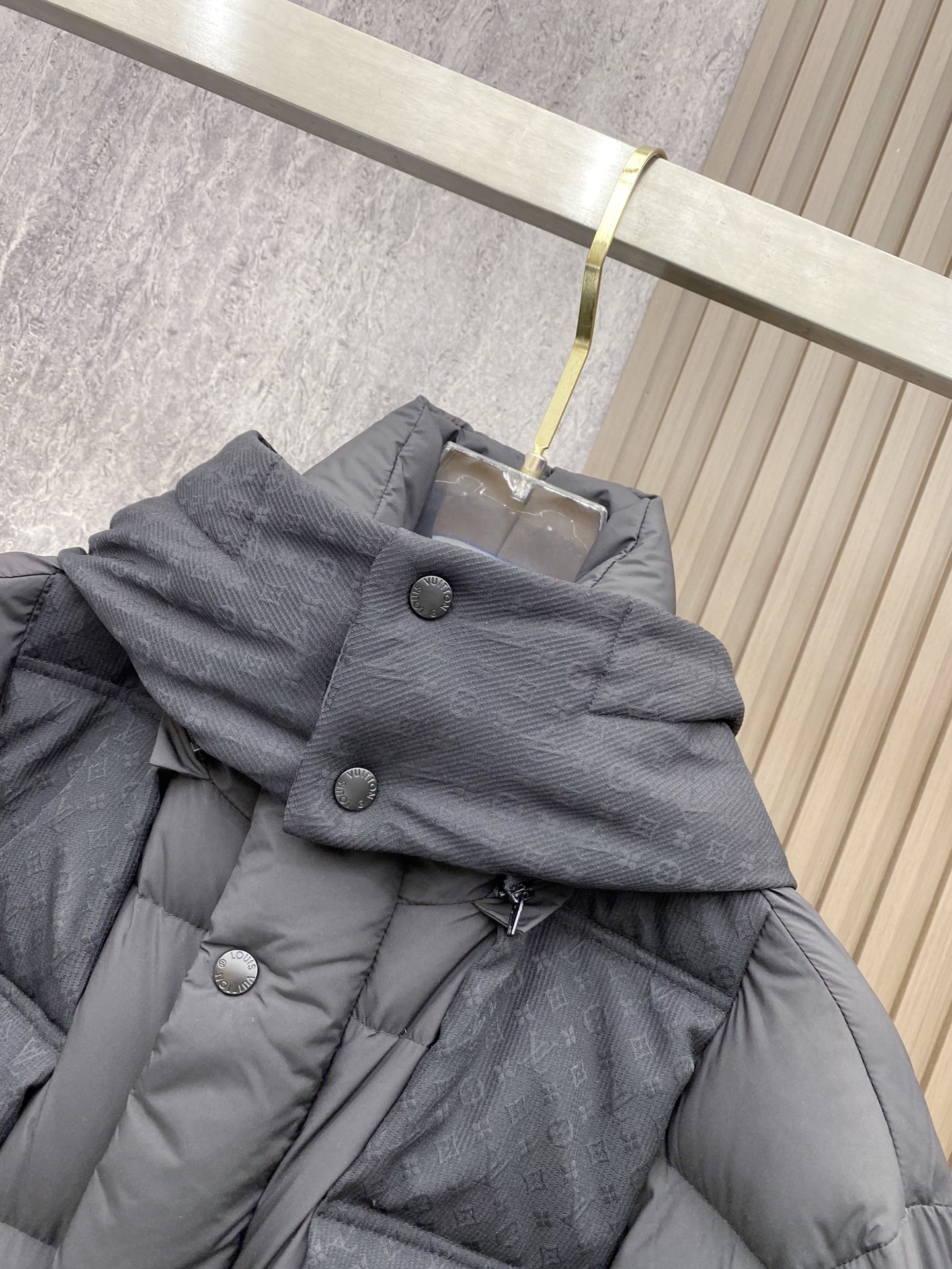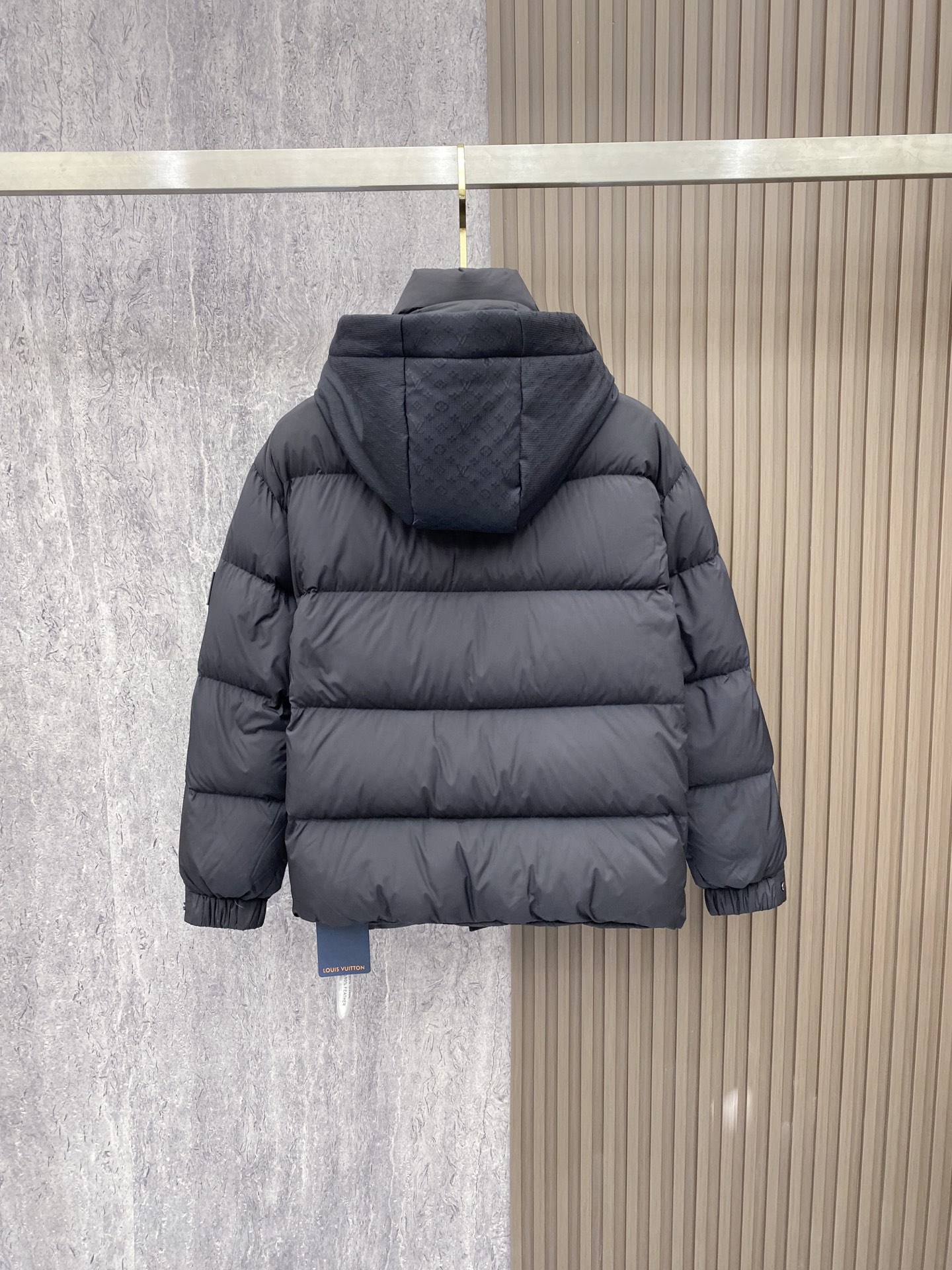 Details: Down jacket with detachable hood, filled with goose down, extremely lightweight and warm, anti-tear nylon fabric, classic logo, zipper and snap closure, adjustable drawstring hem.