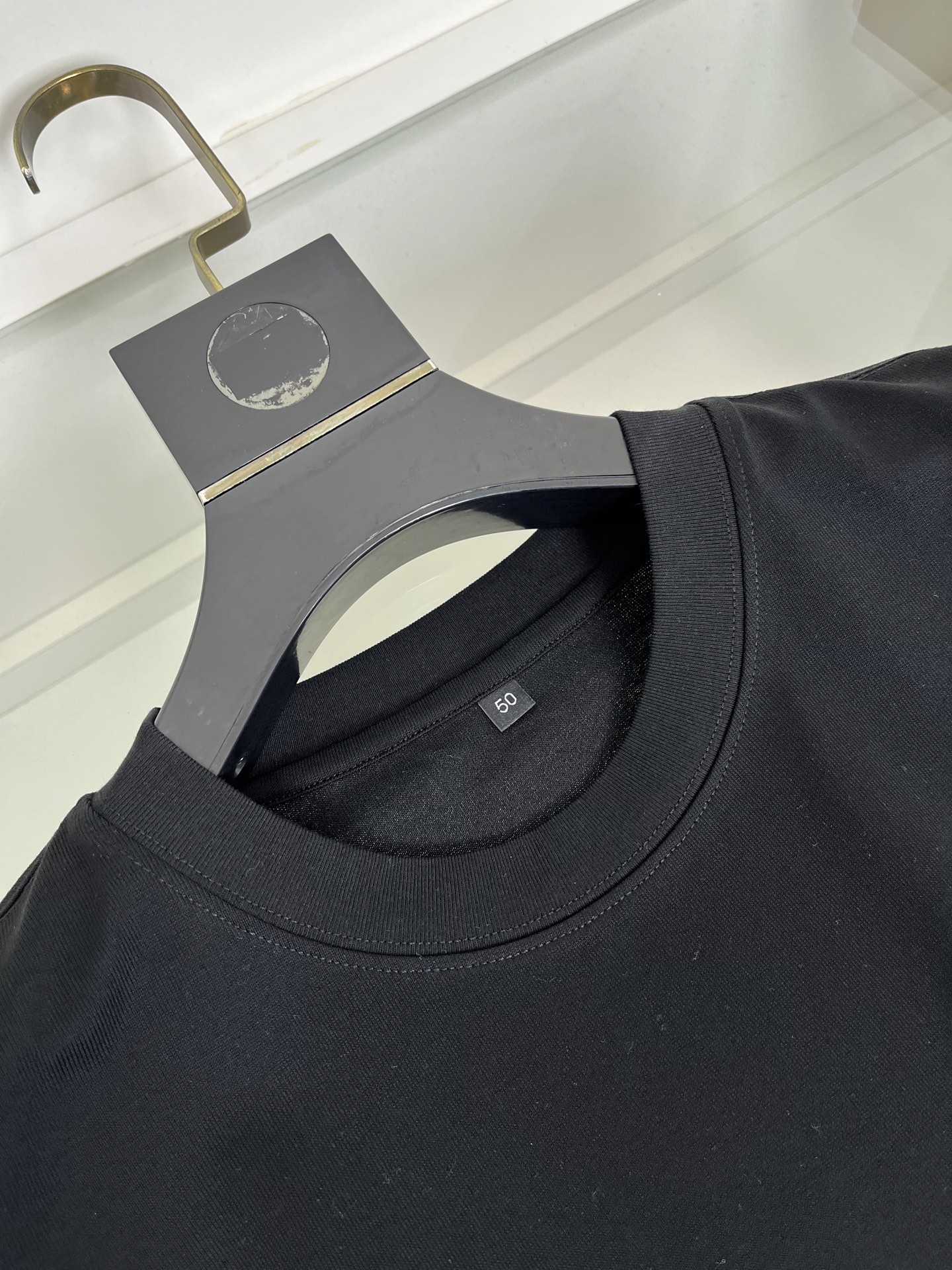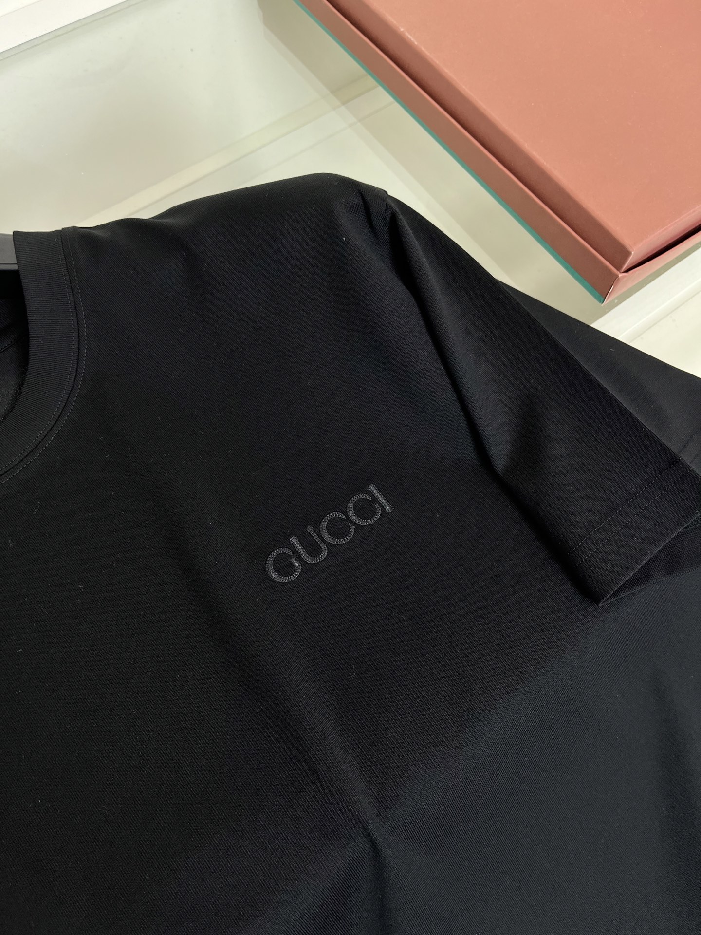 Details: Classic short-sleeve T-shirt with imported machine embroidery, presenting a simple yet elegant style that combines fashion and craftsmanship.