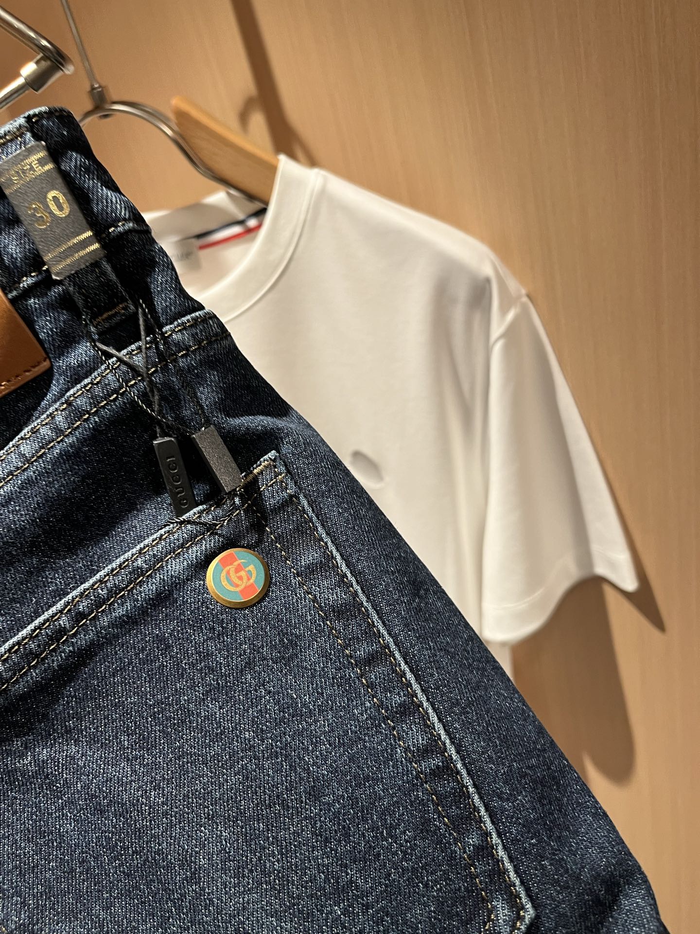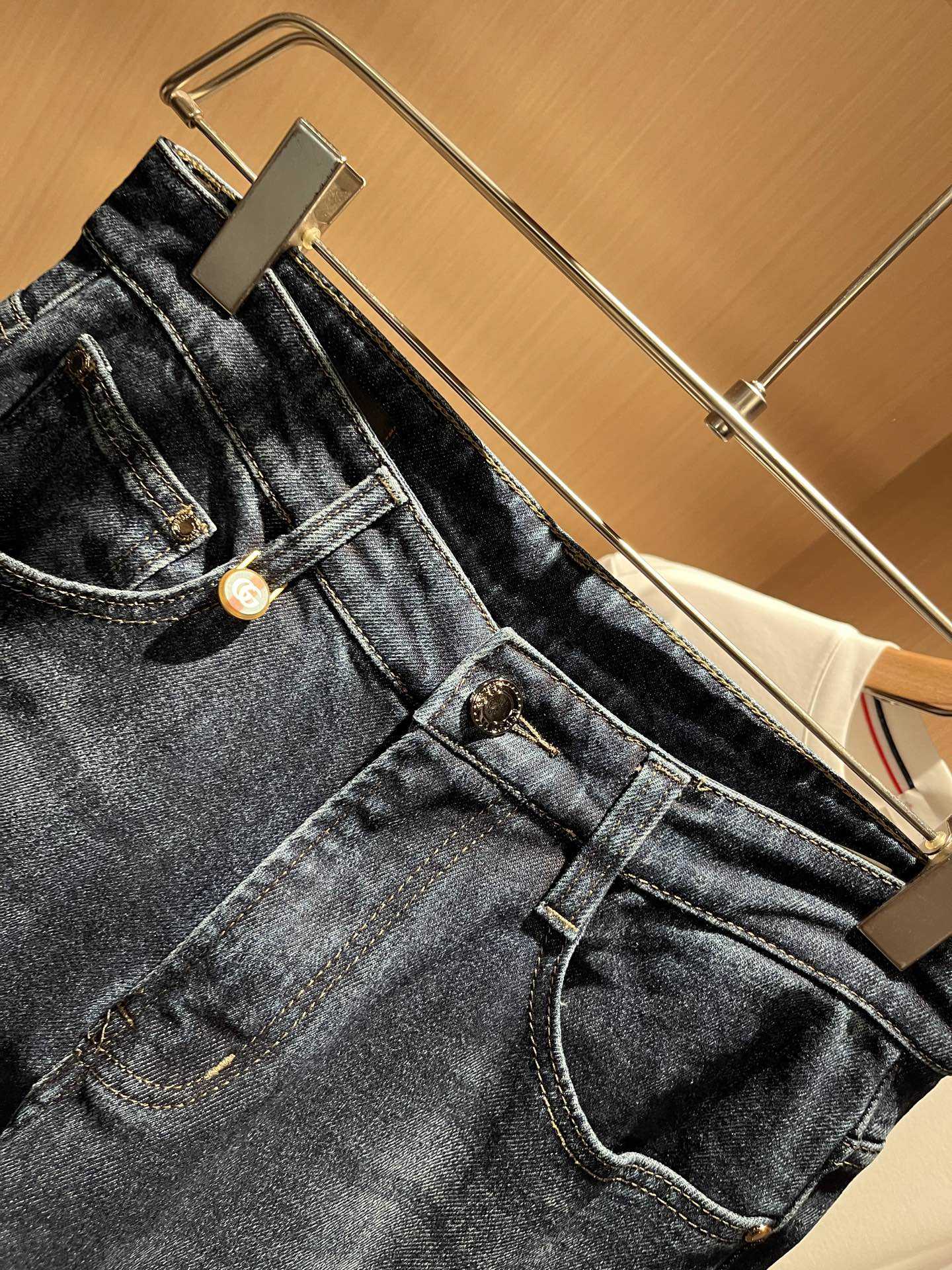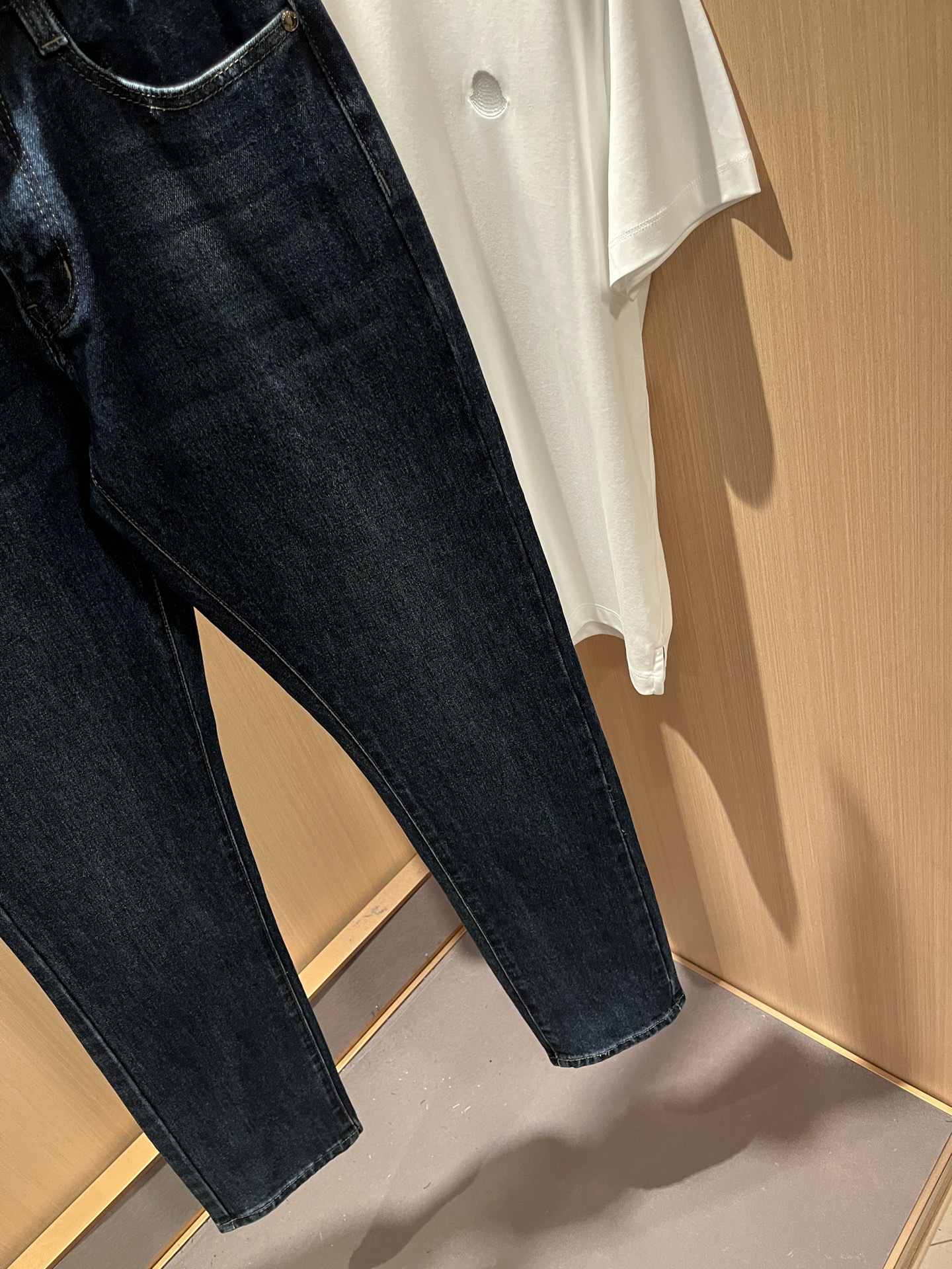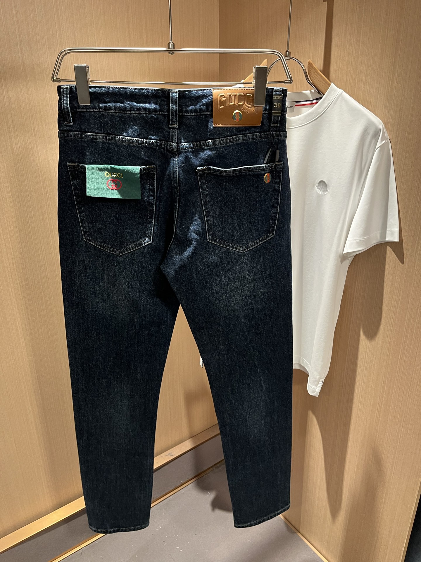 Details: Classic slim - cut jeans with a logo waist card and high comfort