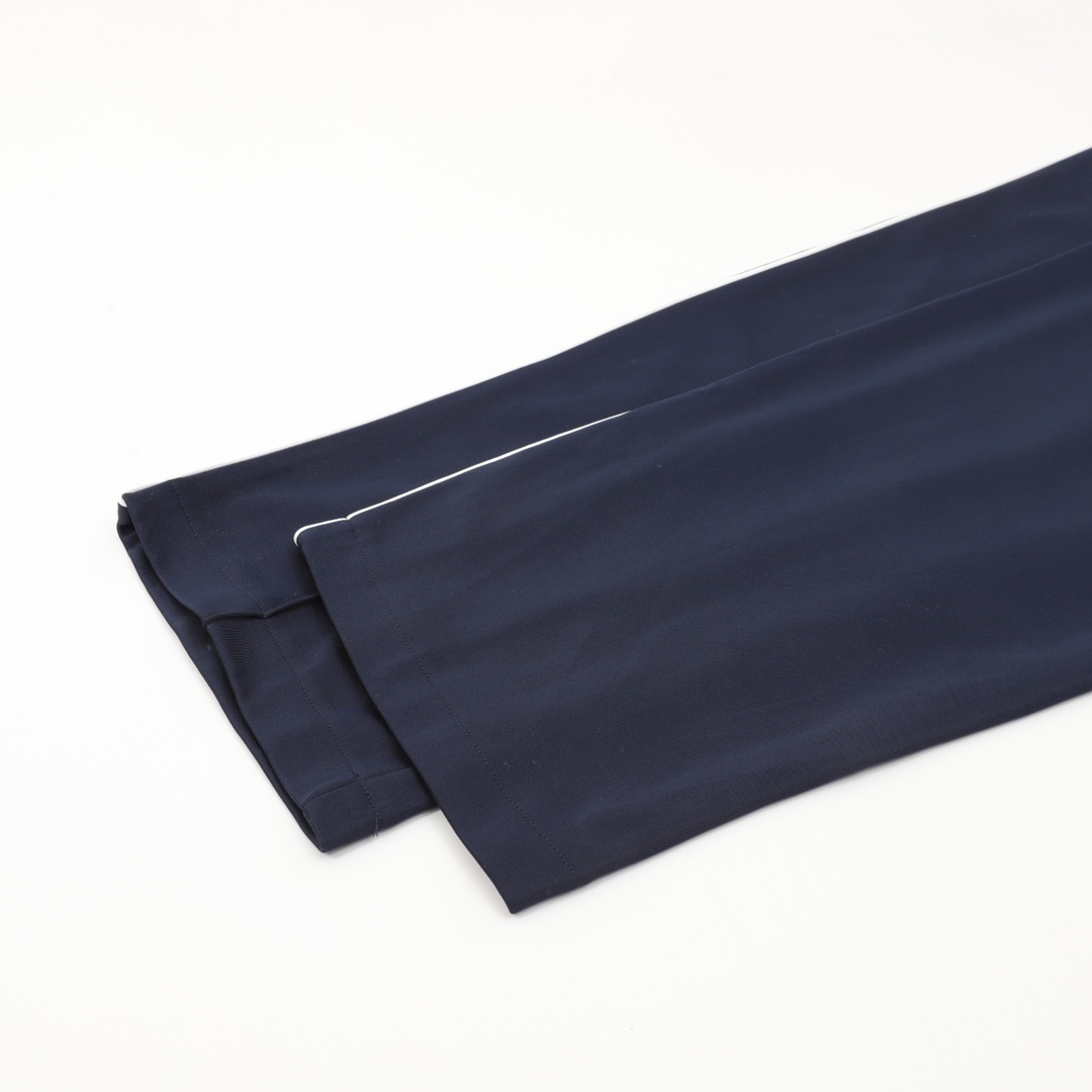 Details: Matching pants with elastic waist, custom zippers, and white trim for a cohesive look