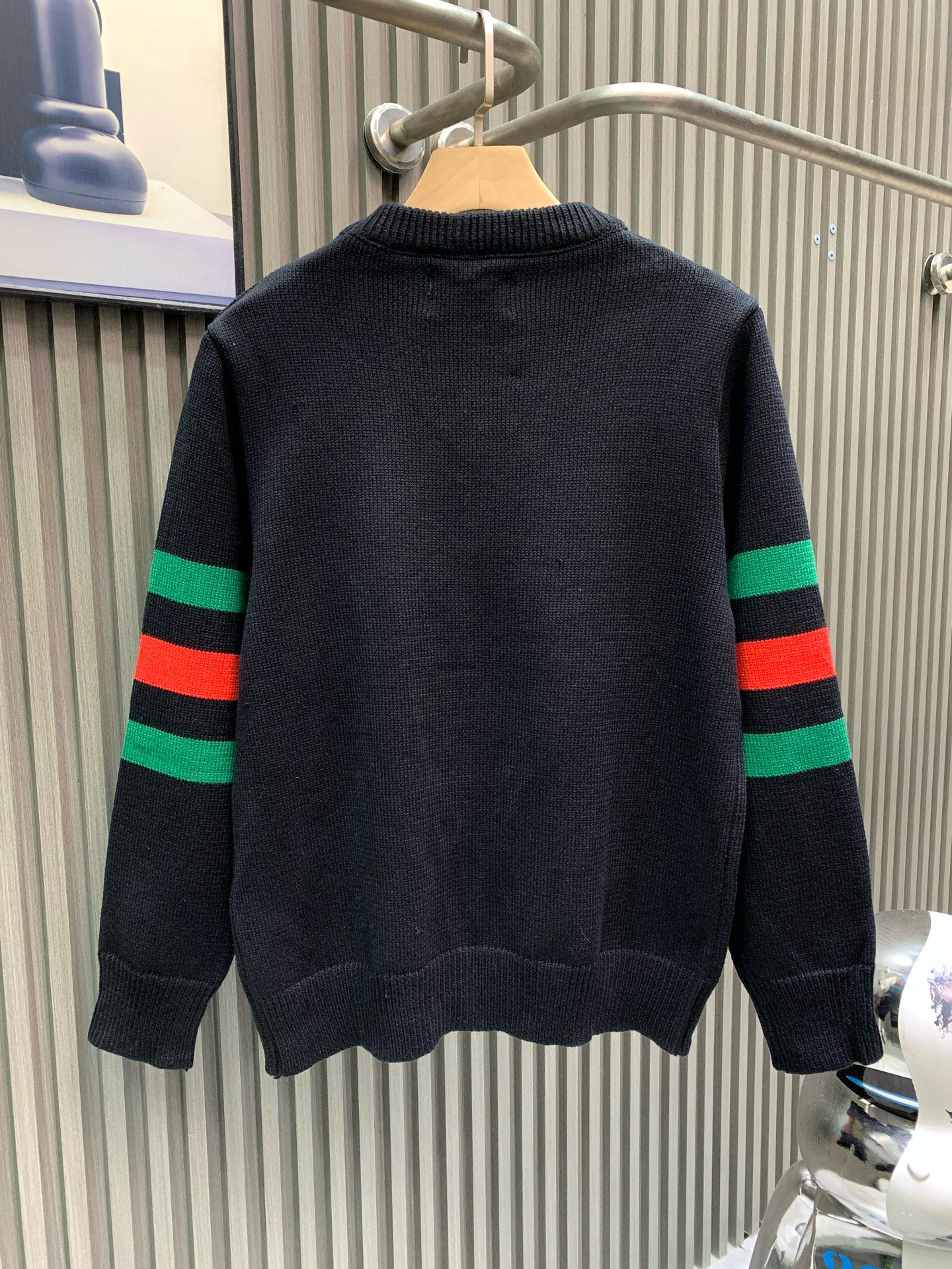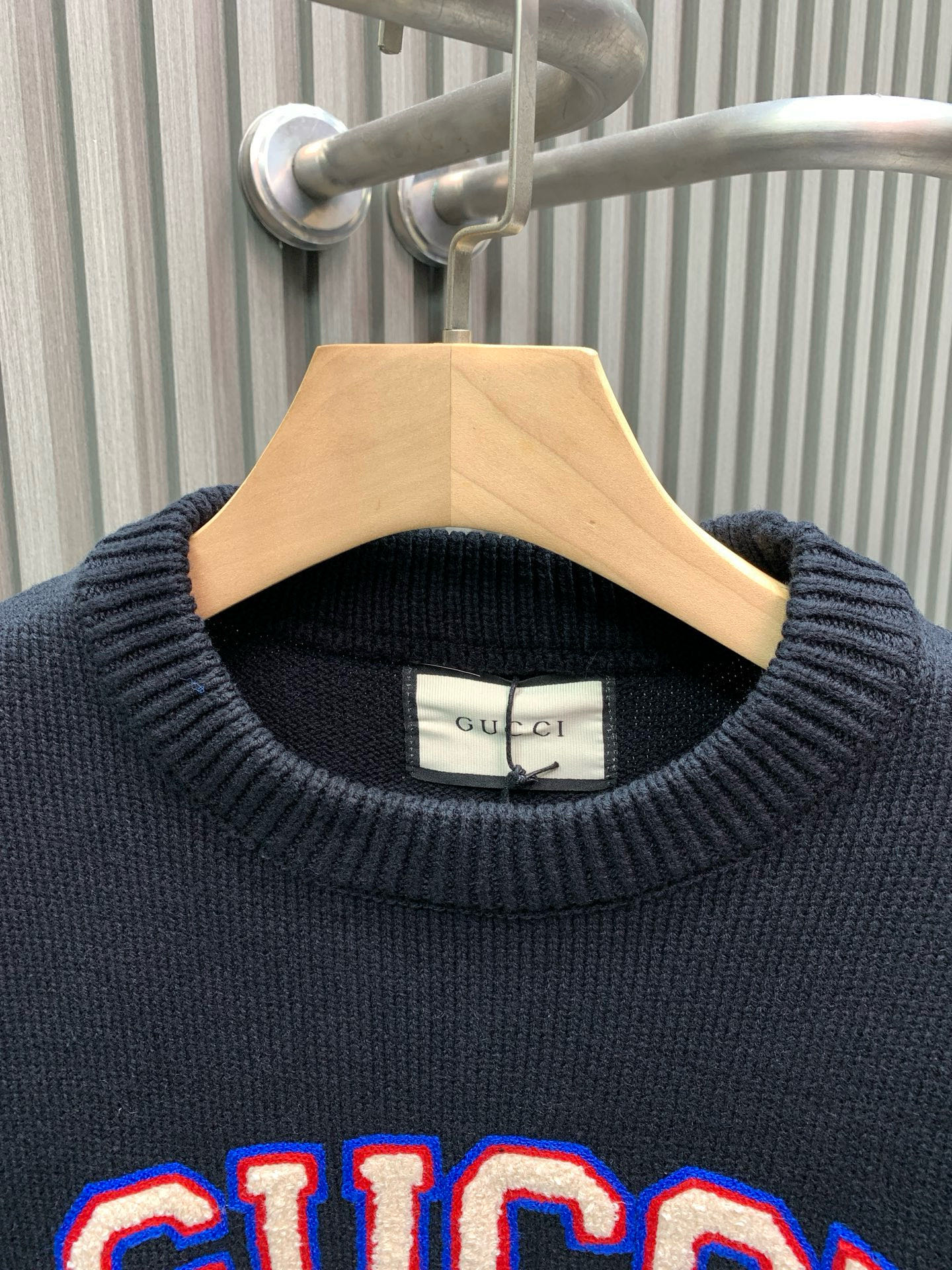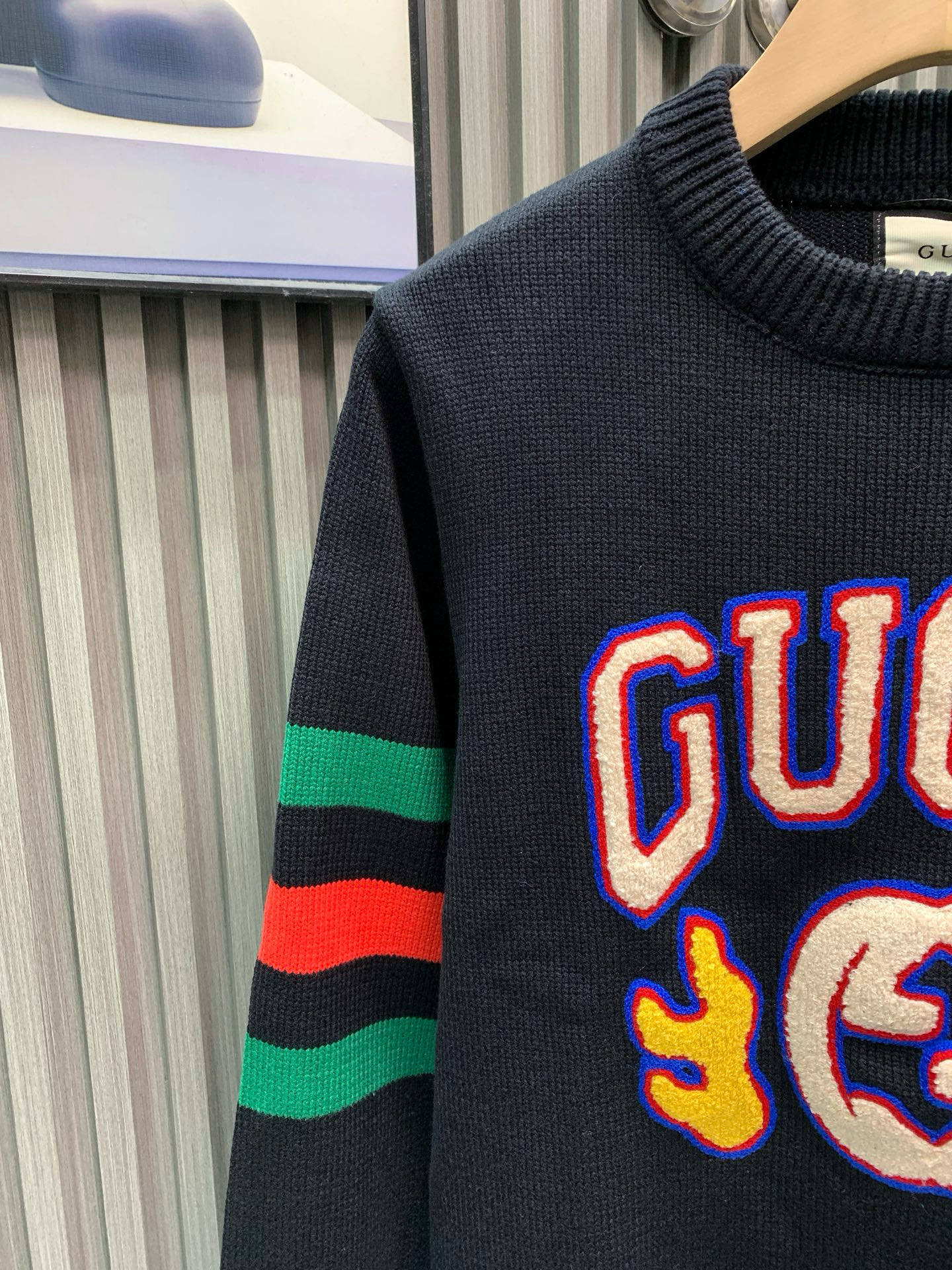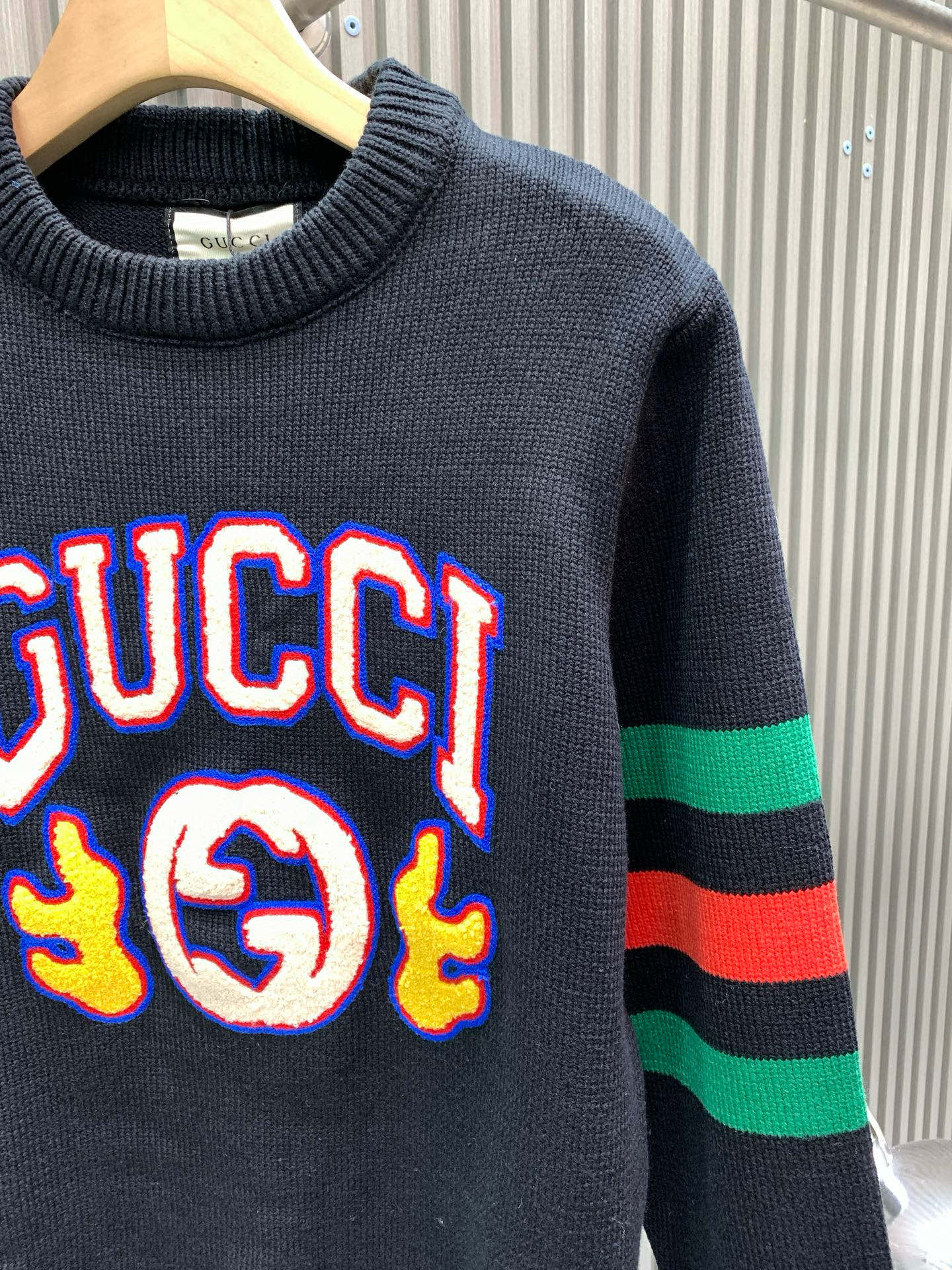 Details: Retro crew-neck sweater with logo embroidery, classic loose fit, slimming