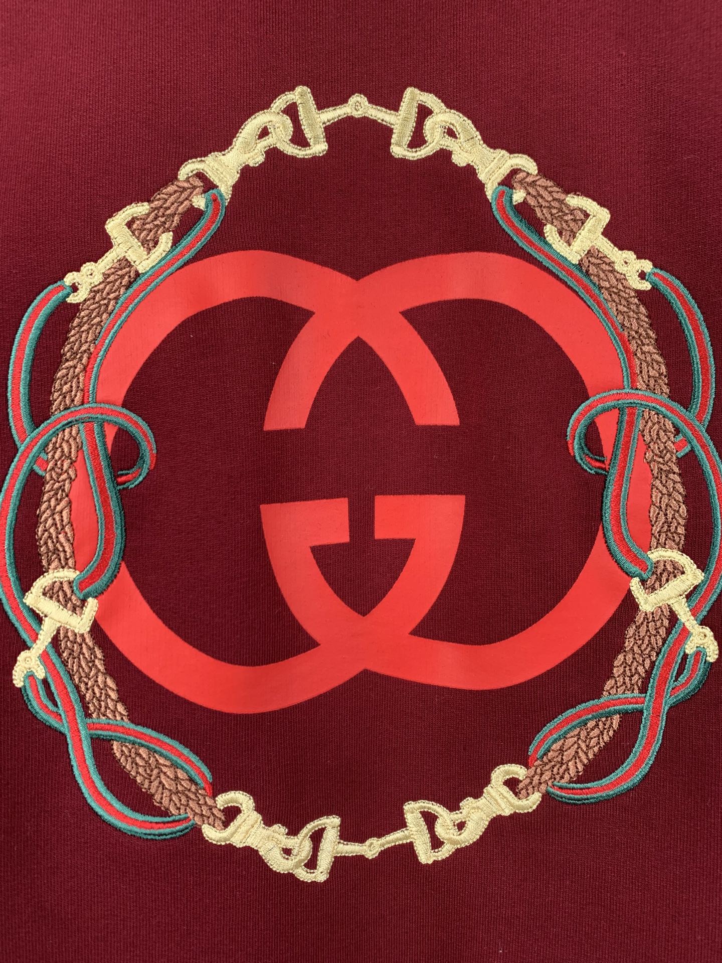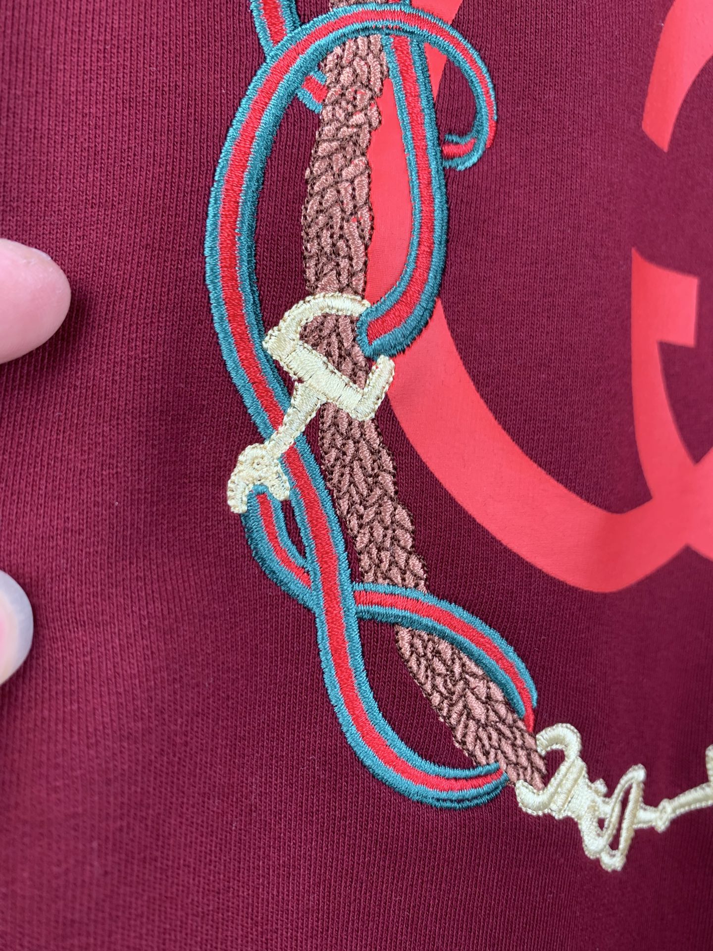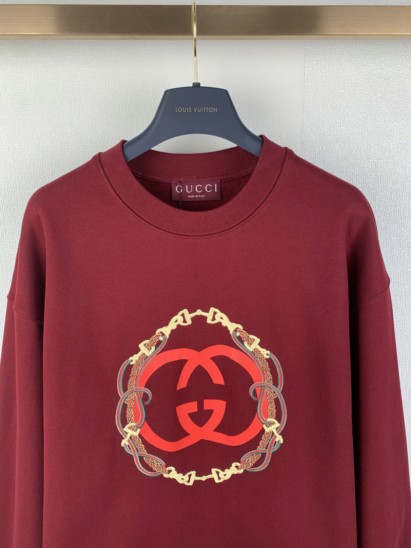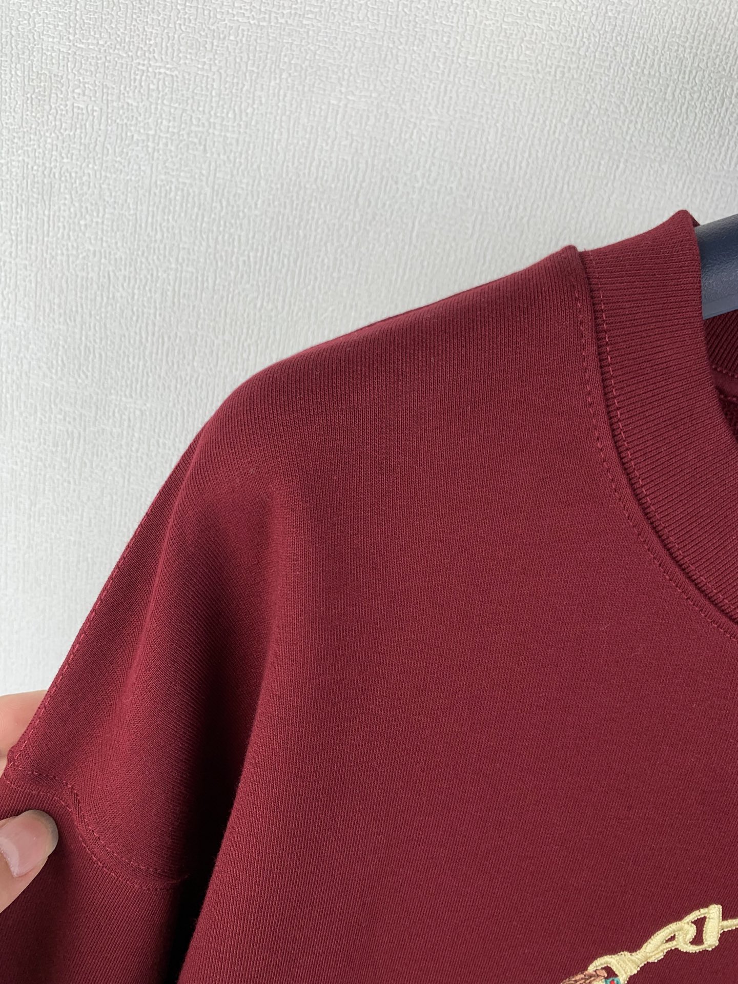 Details: Embroidered knitted cotton long-sleeved sweatshirt with dual-process print and a stable shape