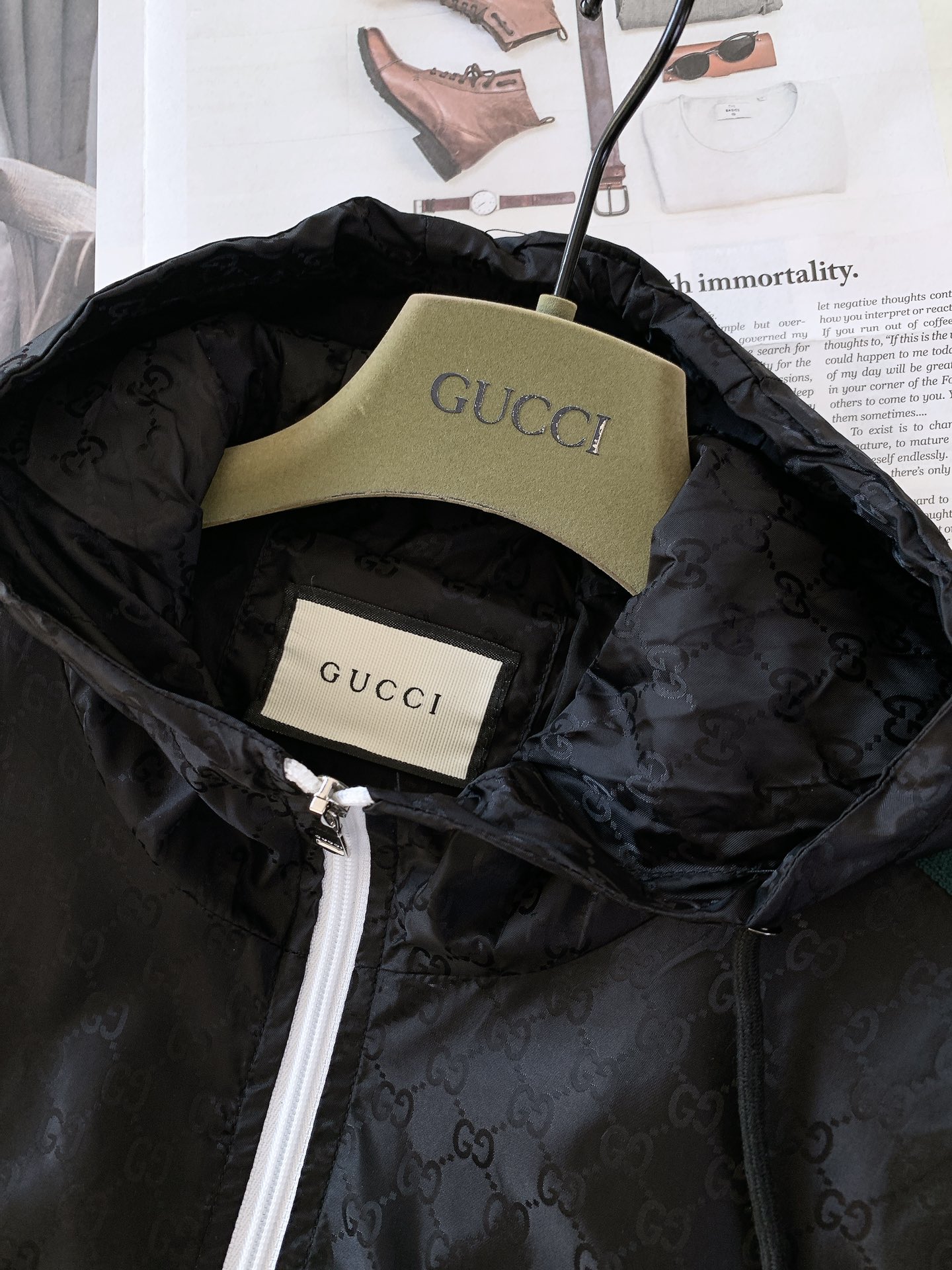 Details: Hooded jacket with GG pattern, windproof, fashionable and versatile