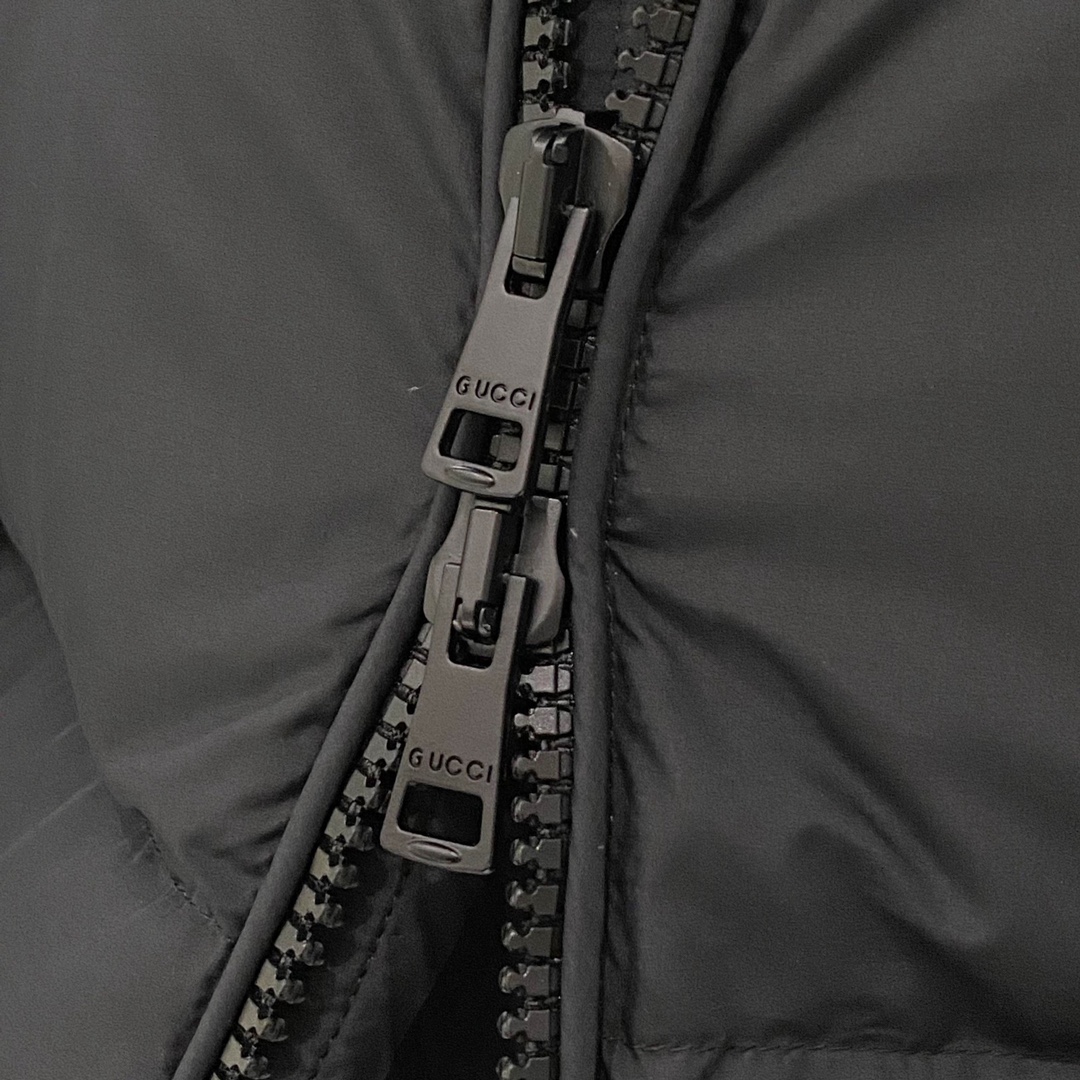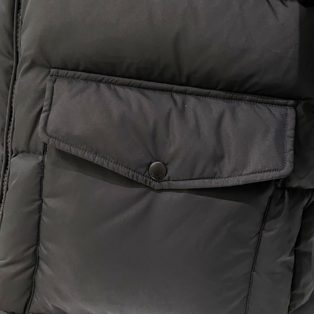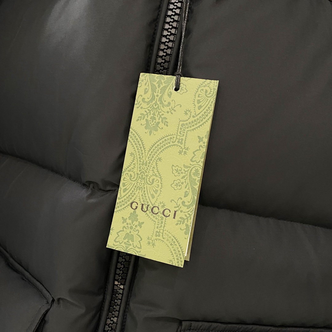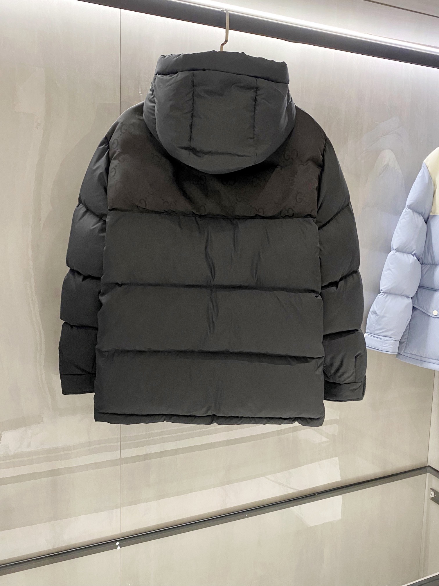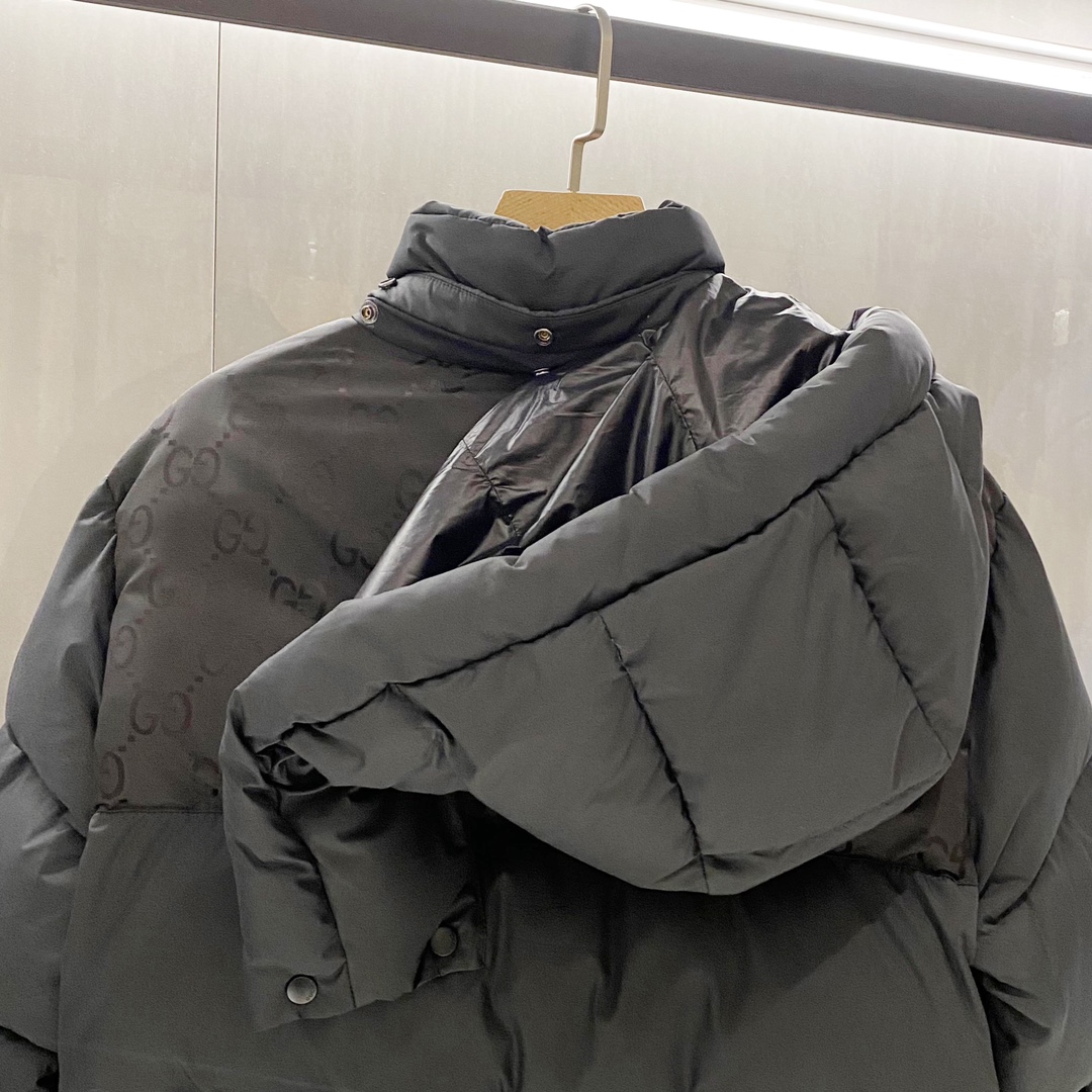 Details: Long Hooded Down Jacket with Contrasting GG Pattern, Waterproof, Breathable Lining, High-Quality Down Filling, Detachable Hood