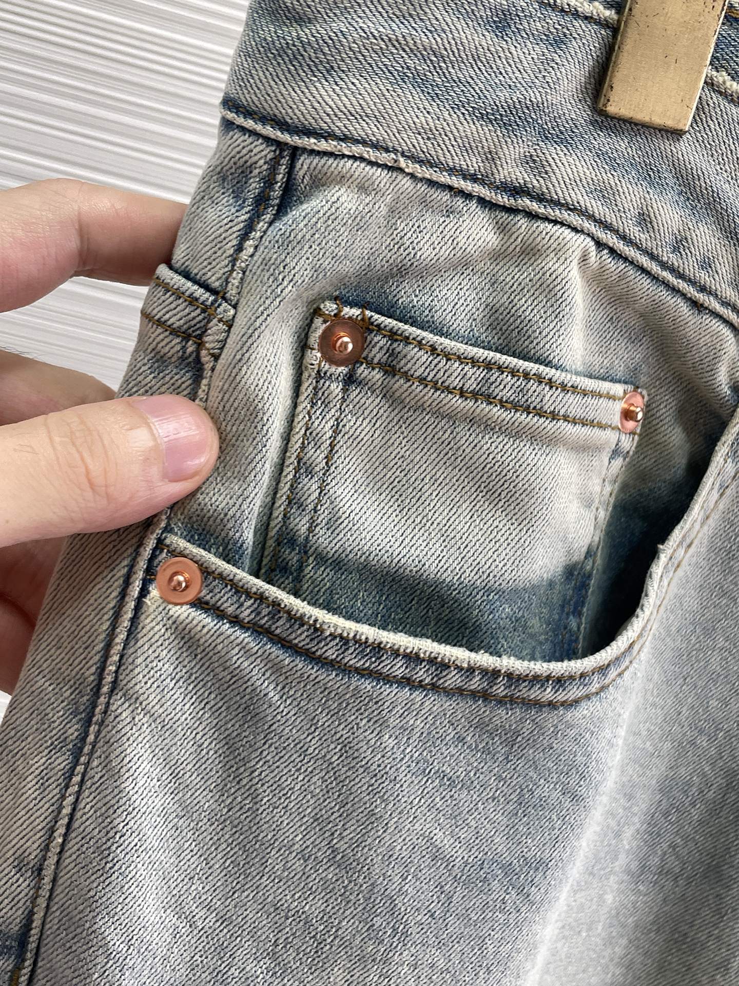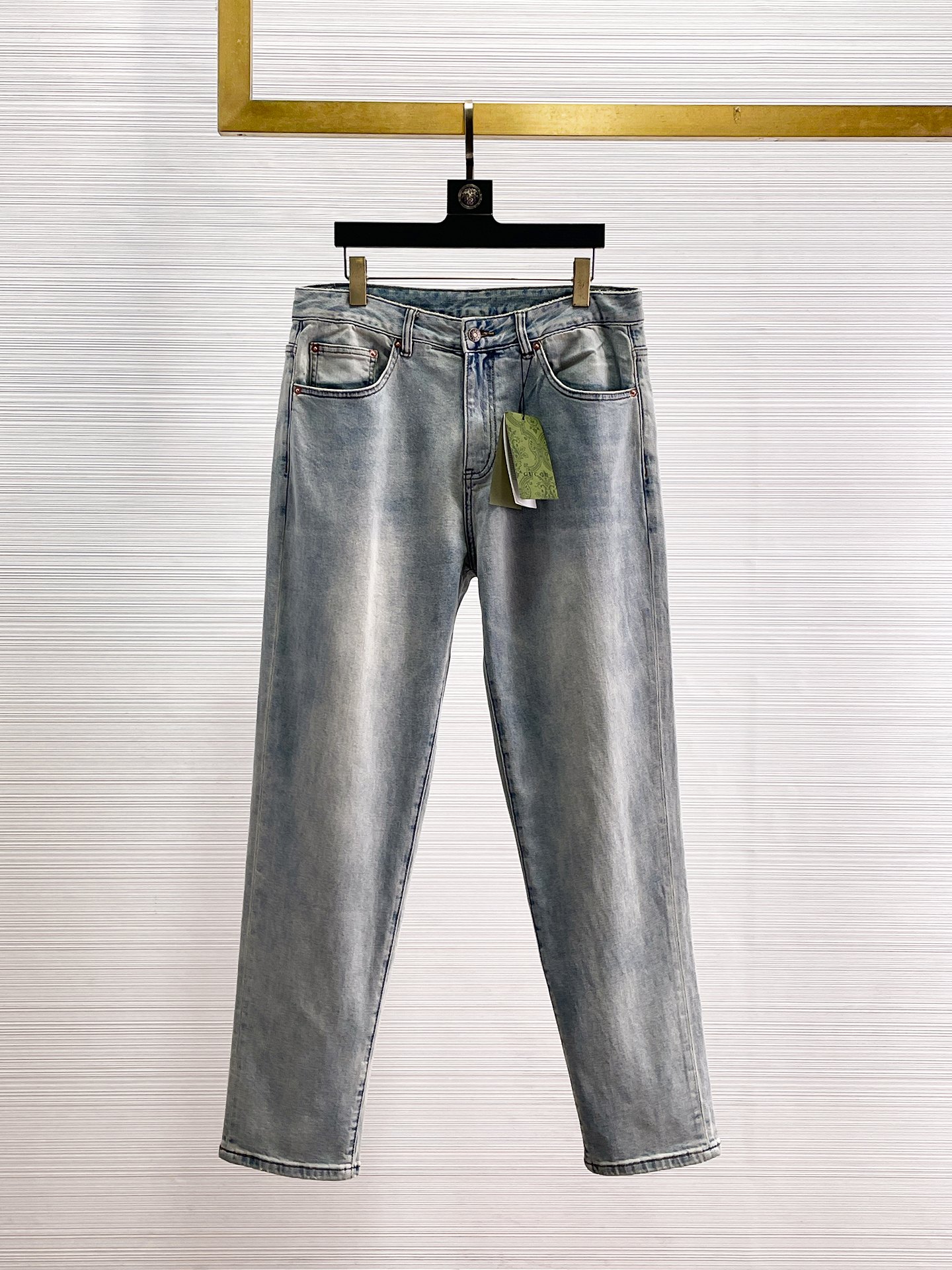 Details: Premium replica jeans featuring custom-made hardware logo, fine embroidery, soft and tough denim for a great fit
