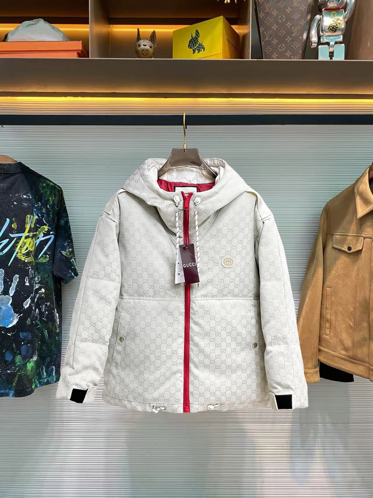 Details: Down jacket filled with 90% down, having three labels, stylish and warm