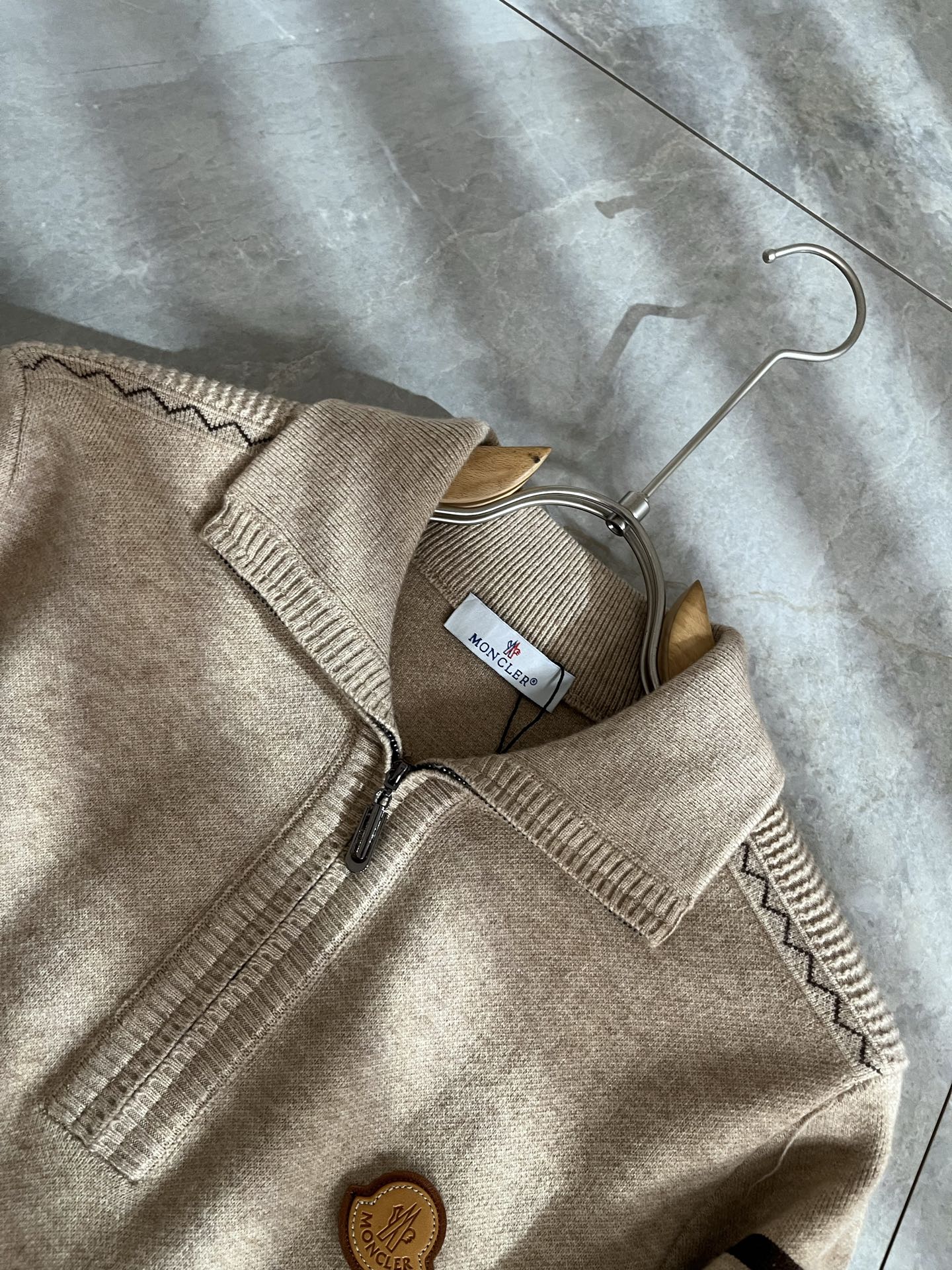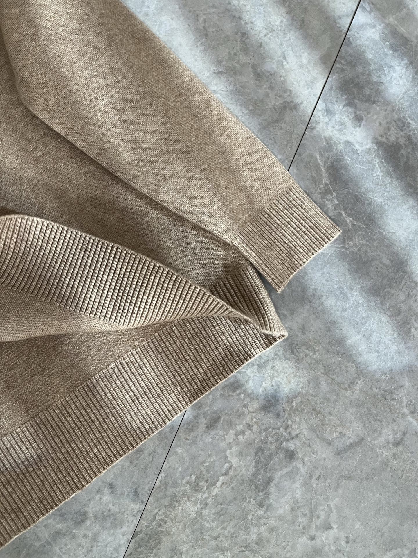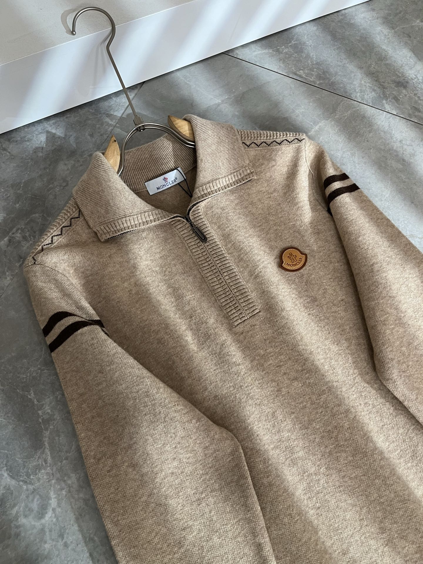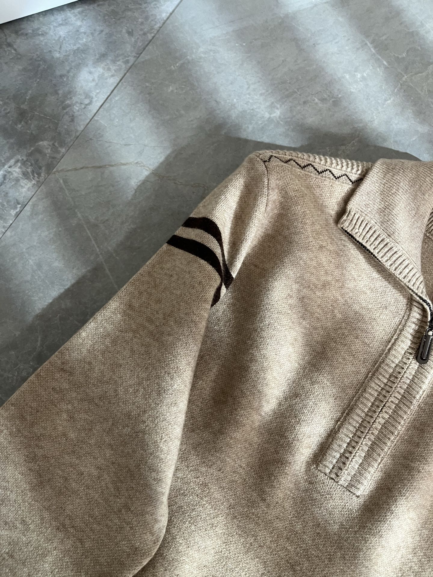 Details: Knitted wool sweater with a logo, well-fitted and suitable for commuting