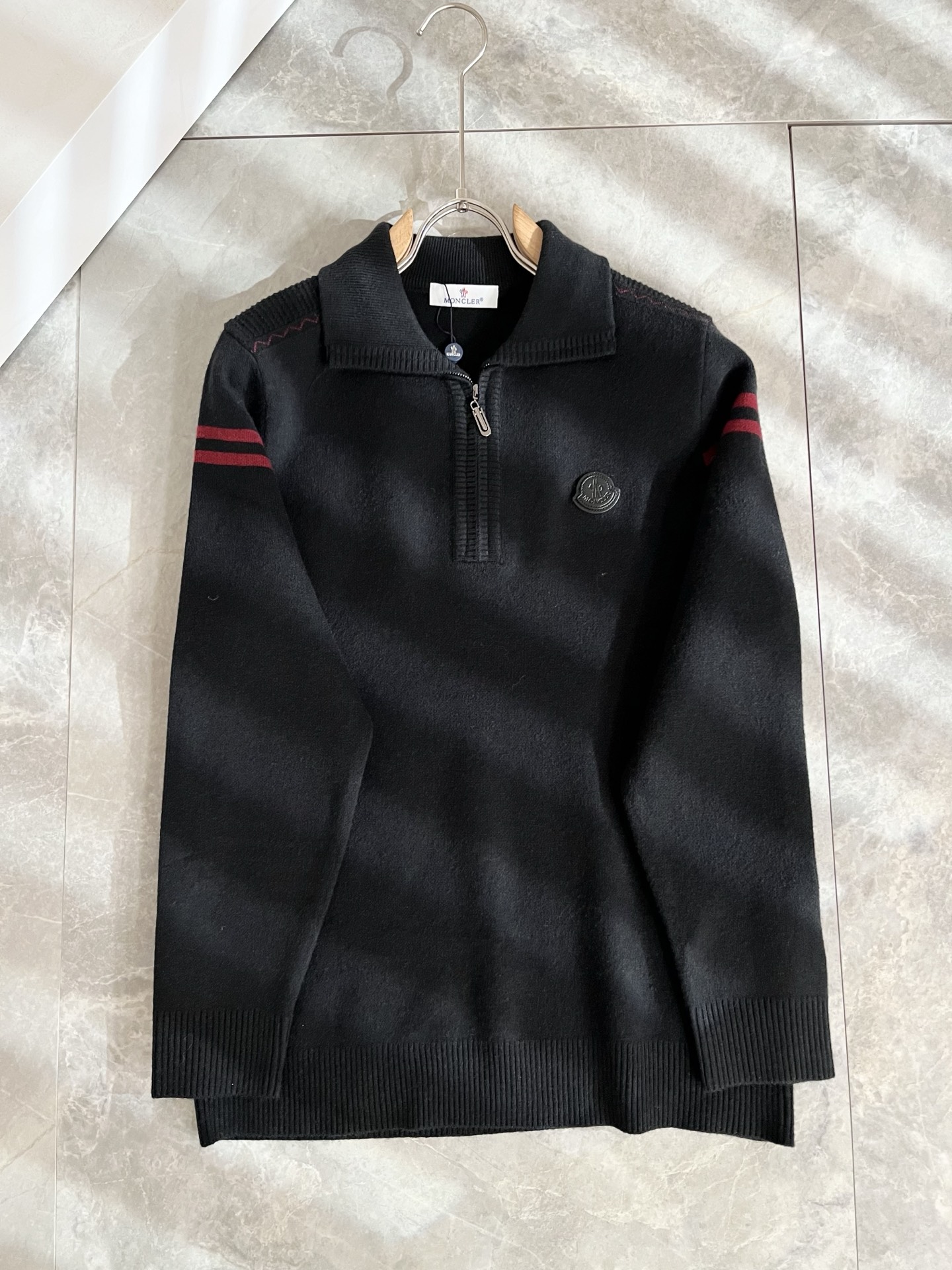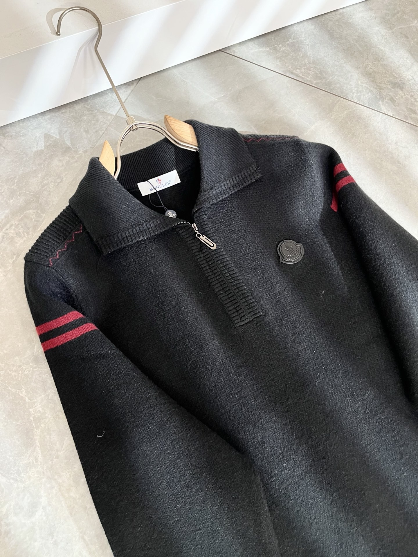 Details: Long-sleeved knit wool sweater with a simple logo, suitable for commuting and flattering the figure