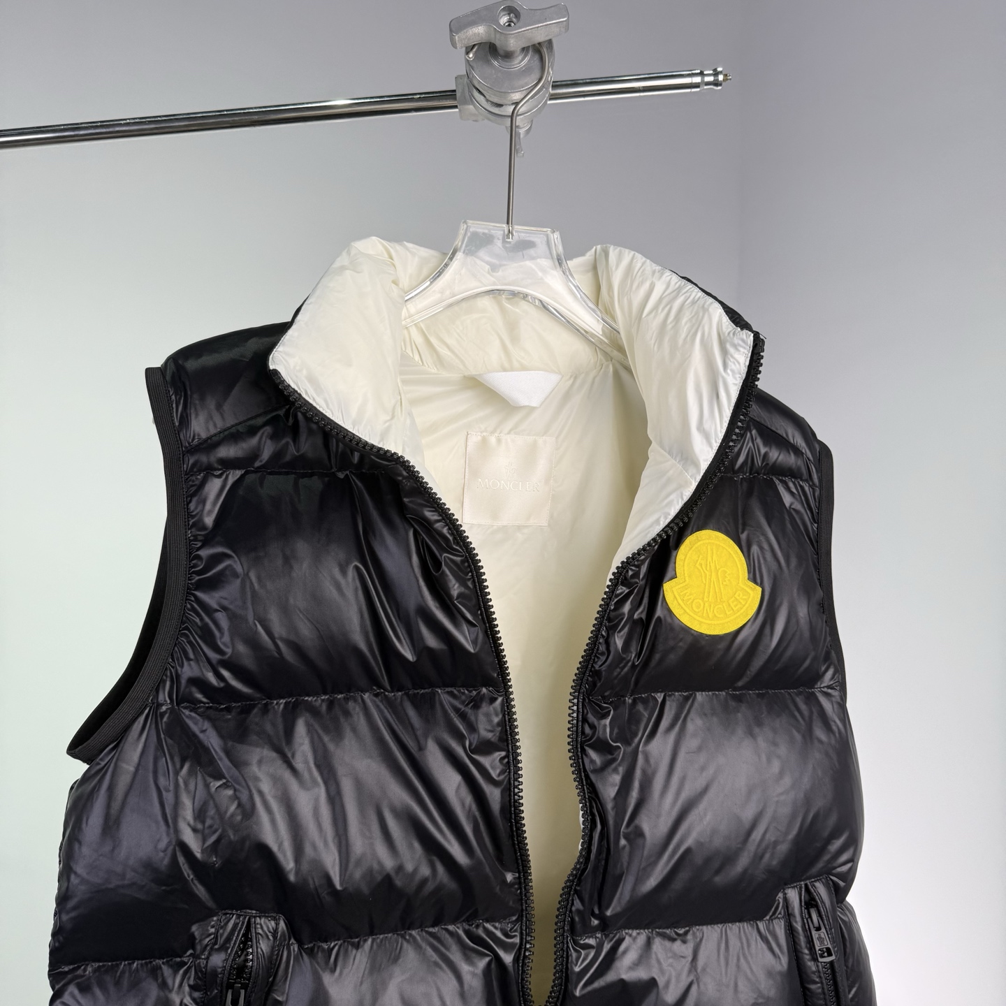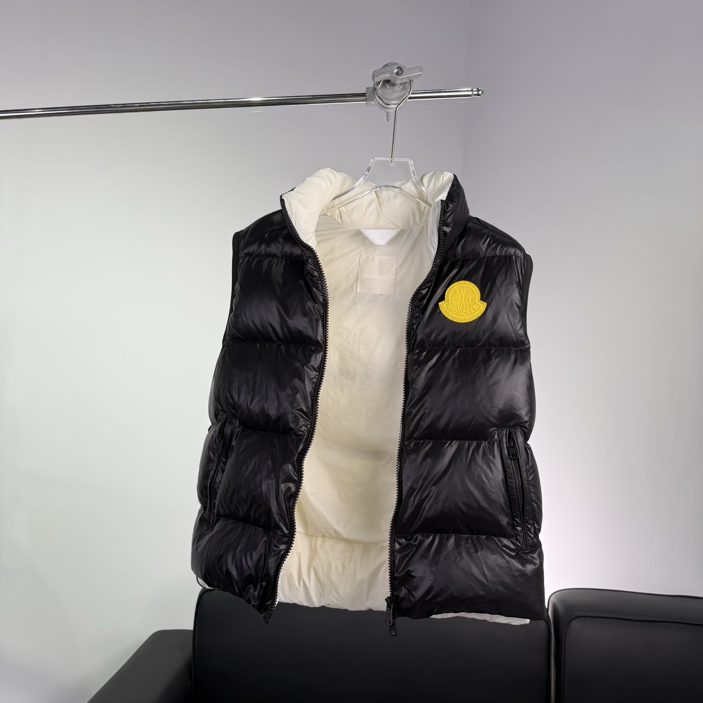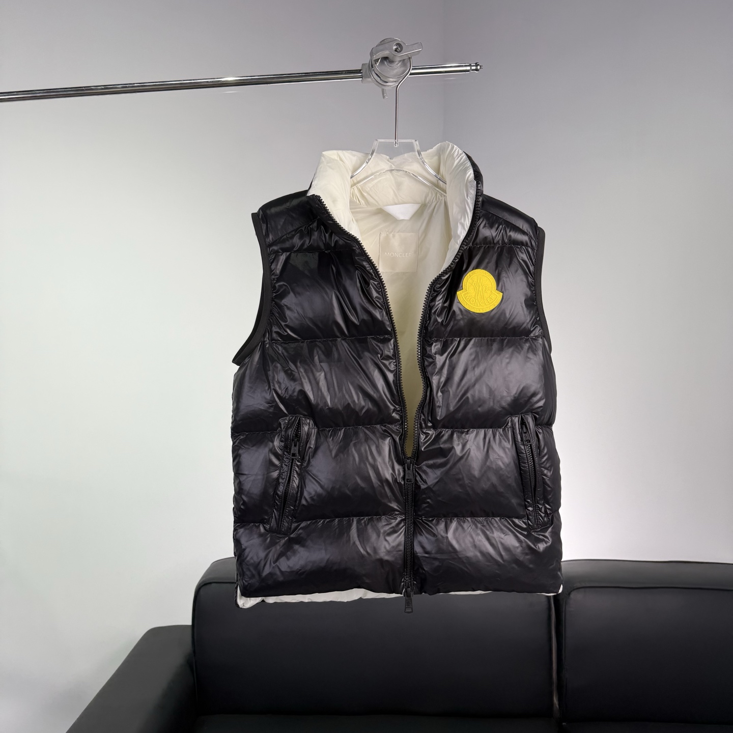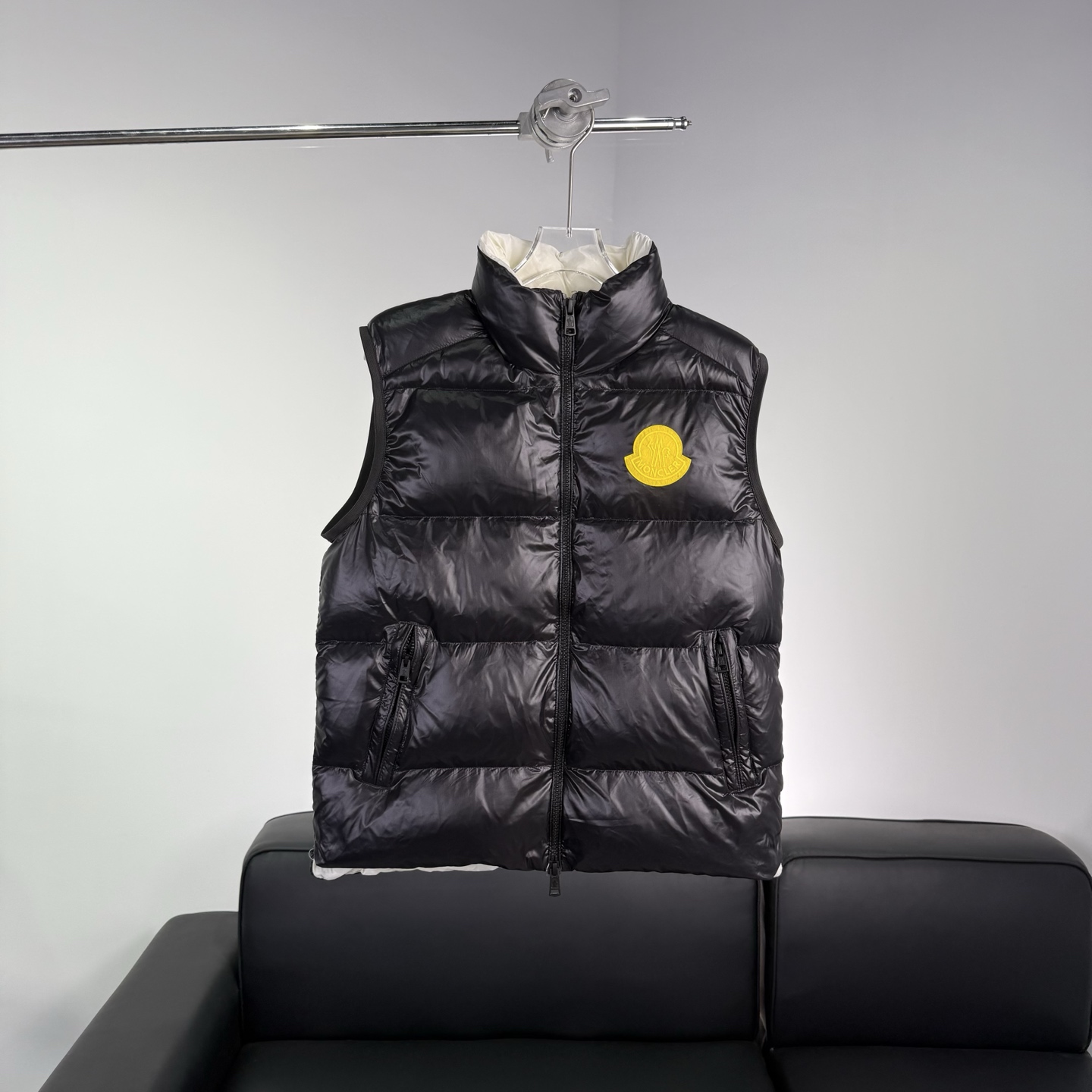 Details: Black shiny down vest, warm and practical, suitable for daily use