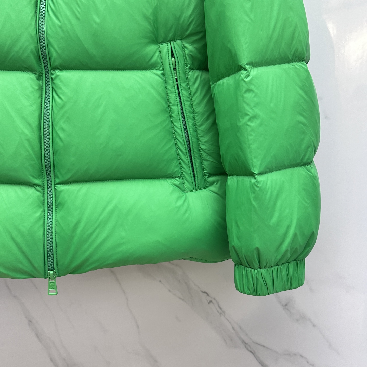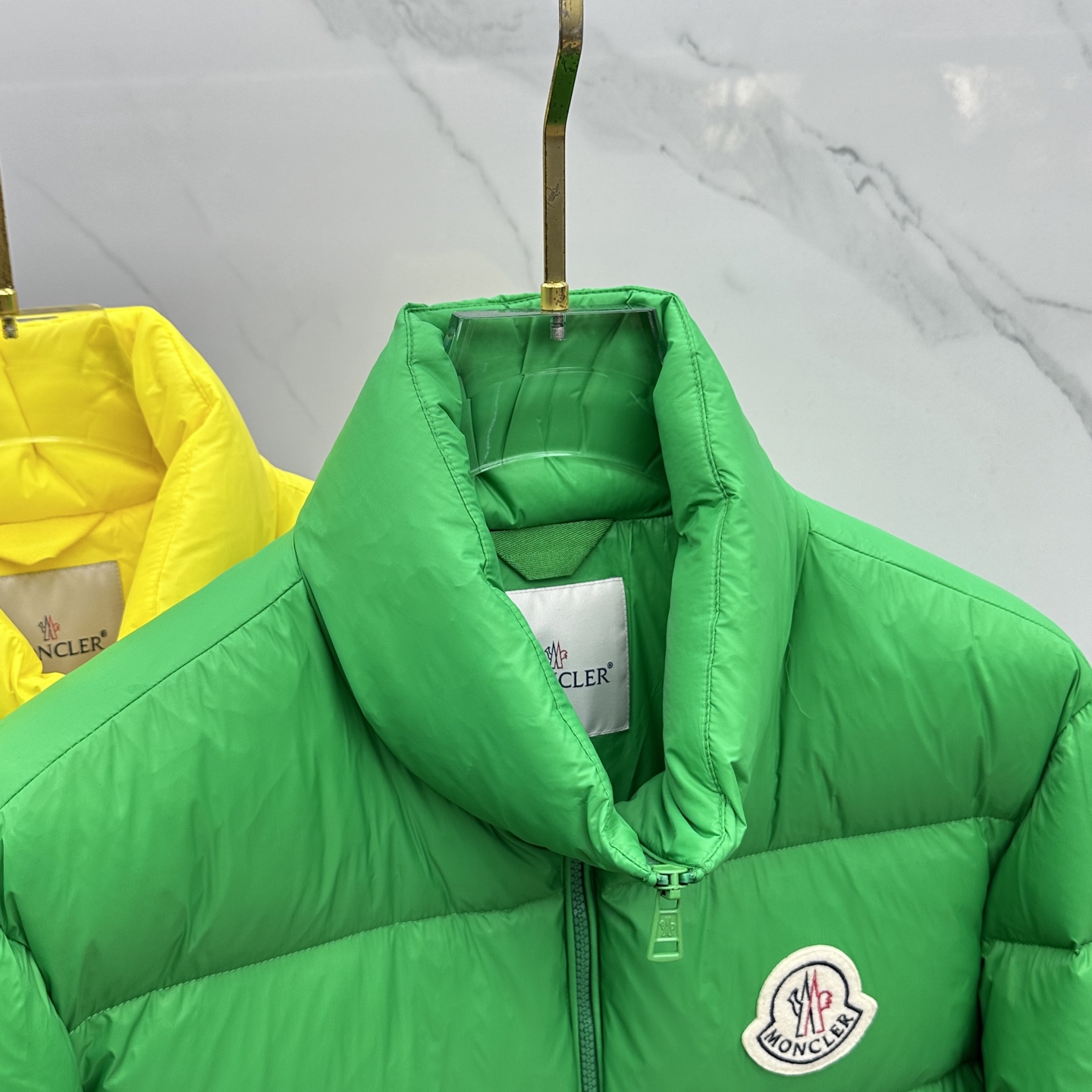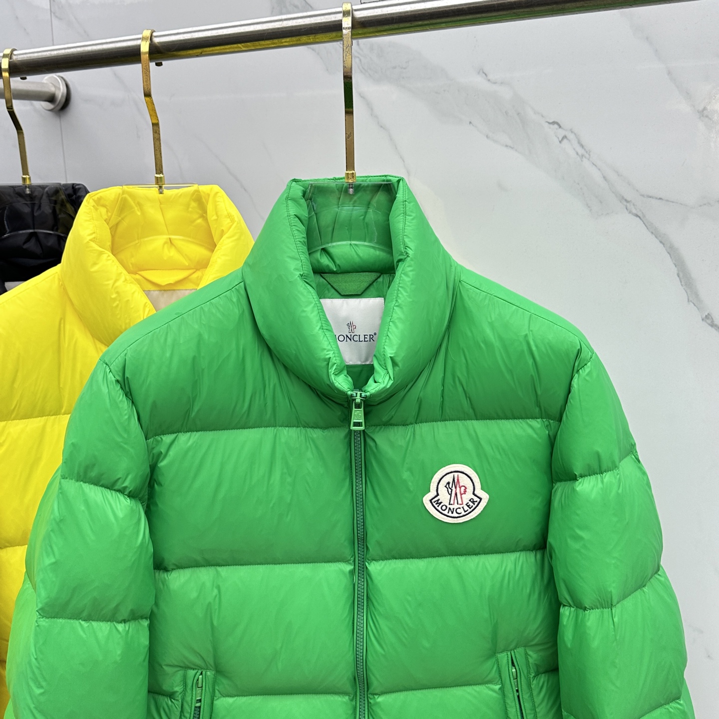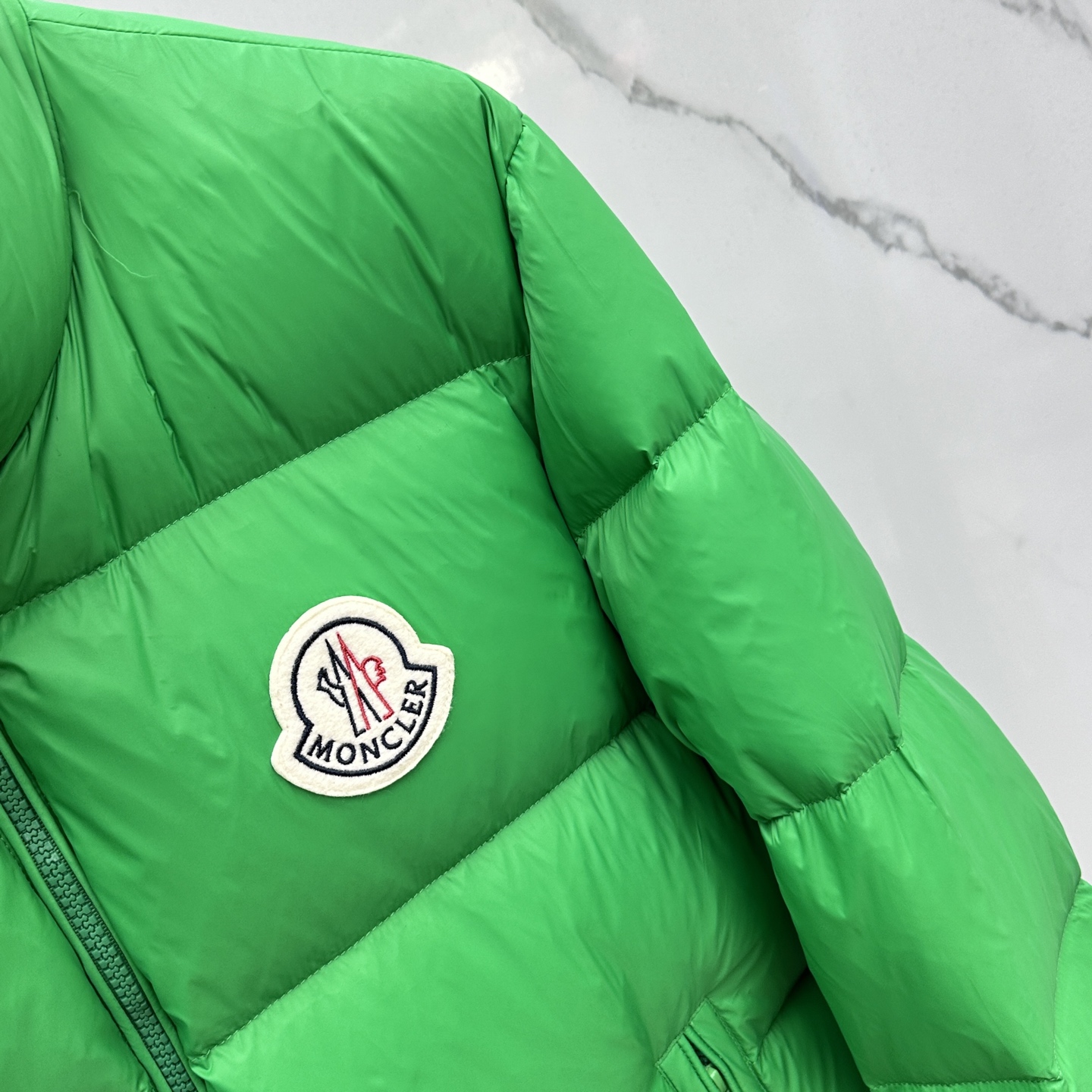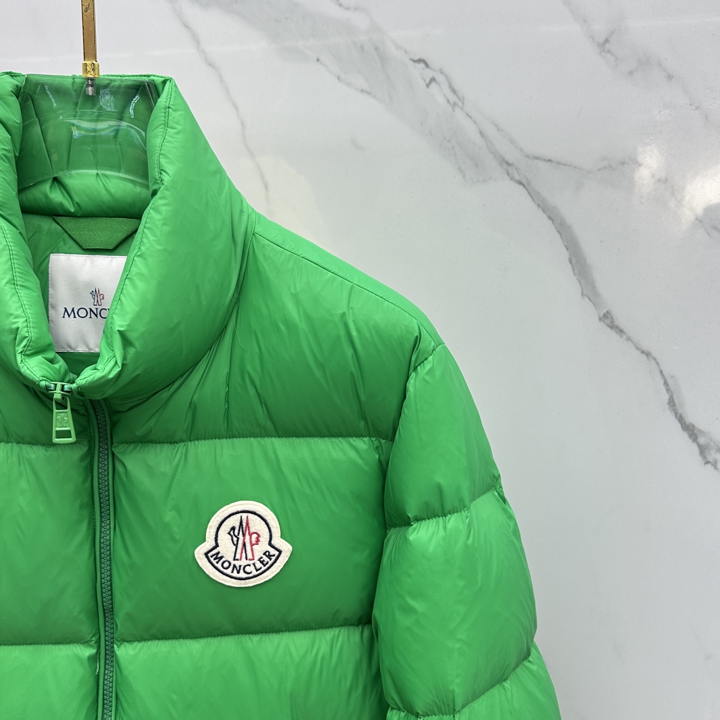 Details: Fashionable down jacket featuring a classic logo and filled with 90% white goose down
