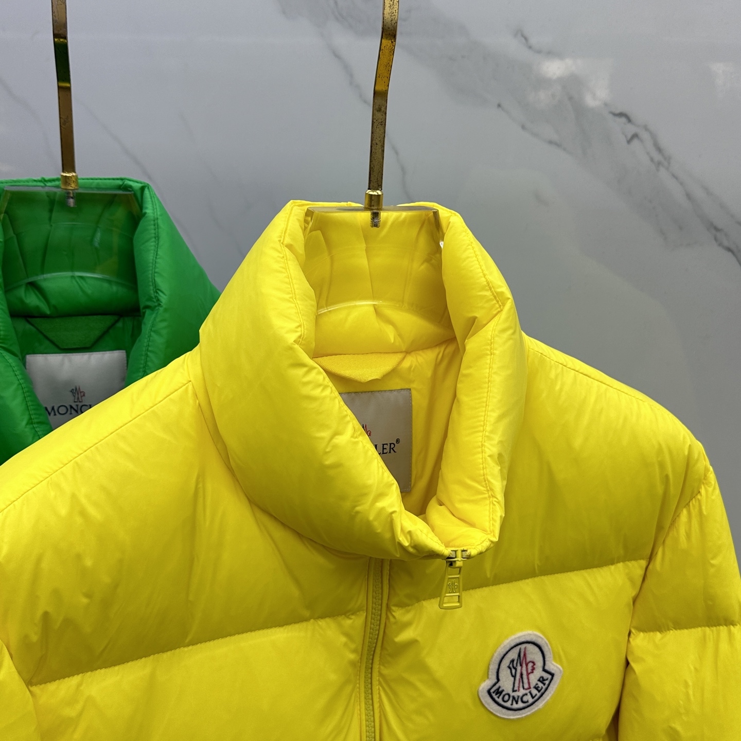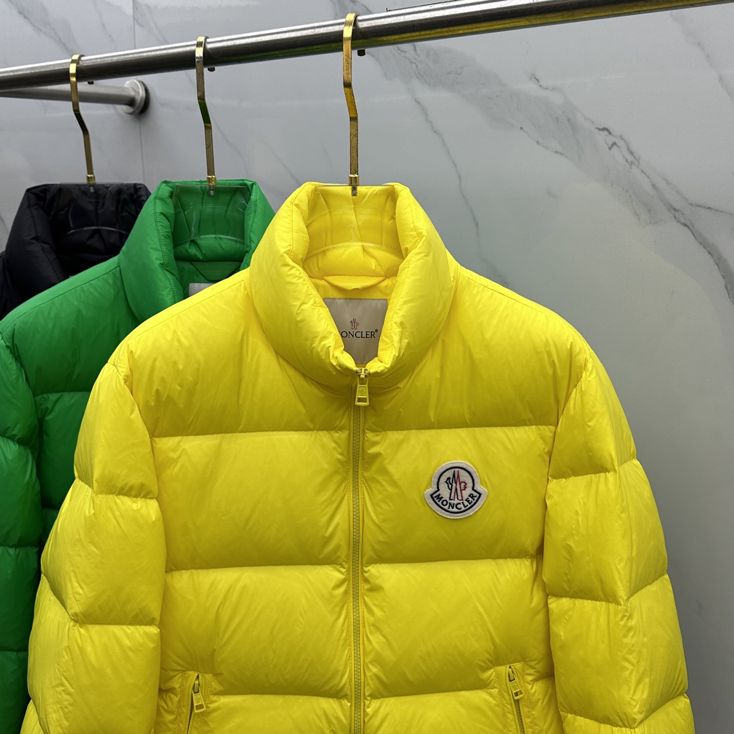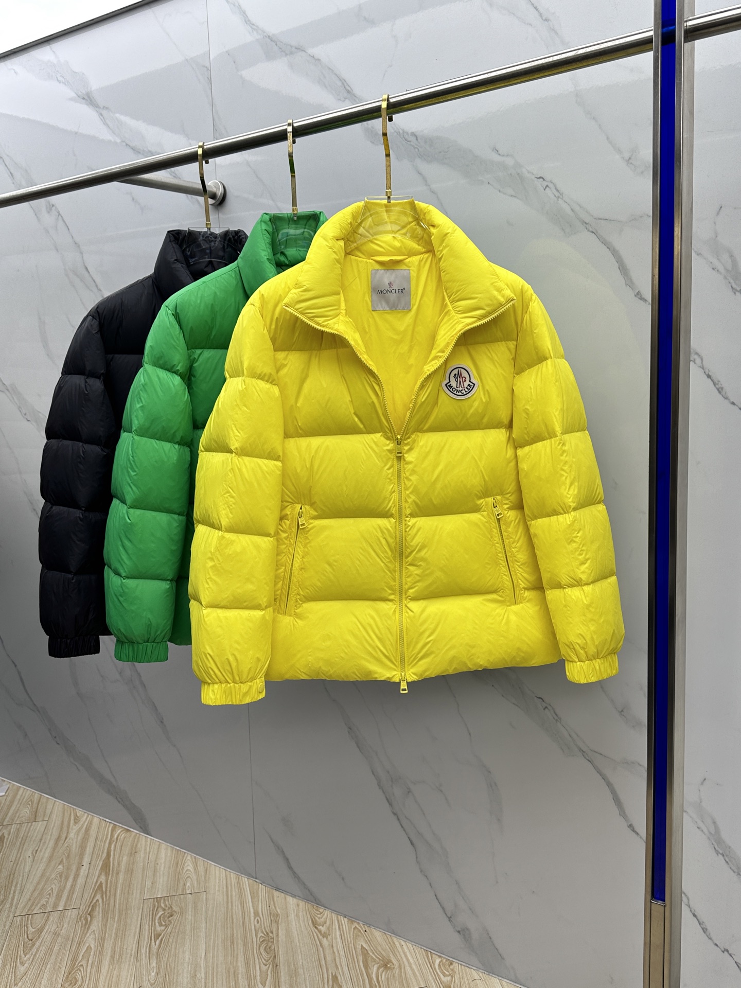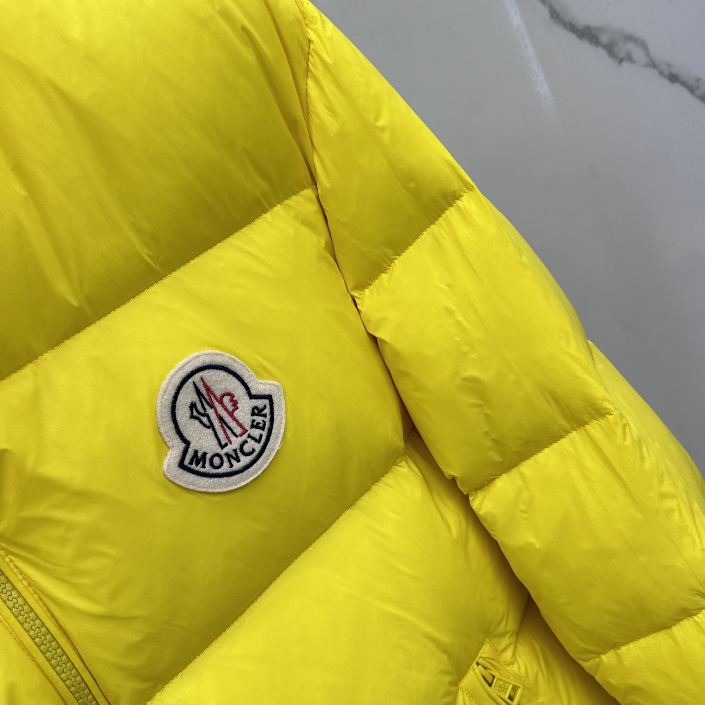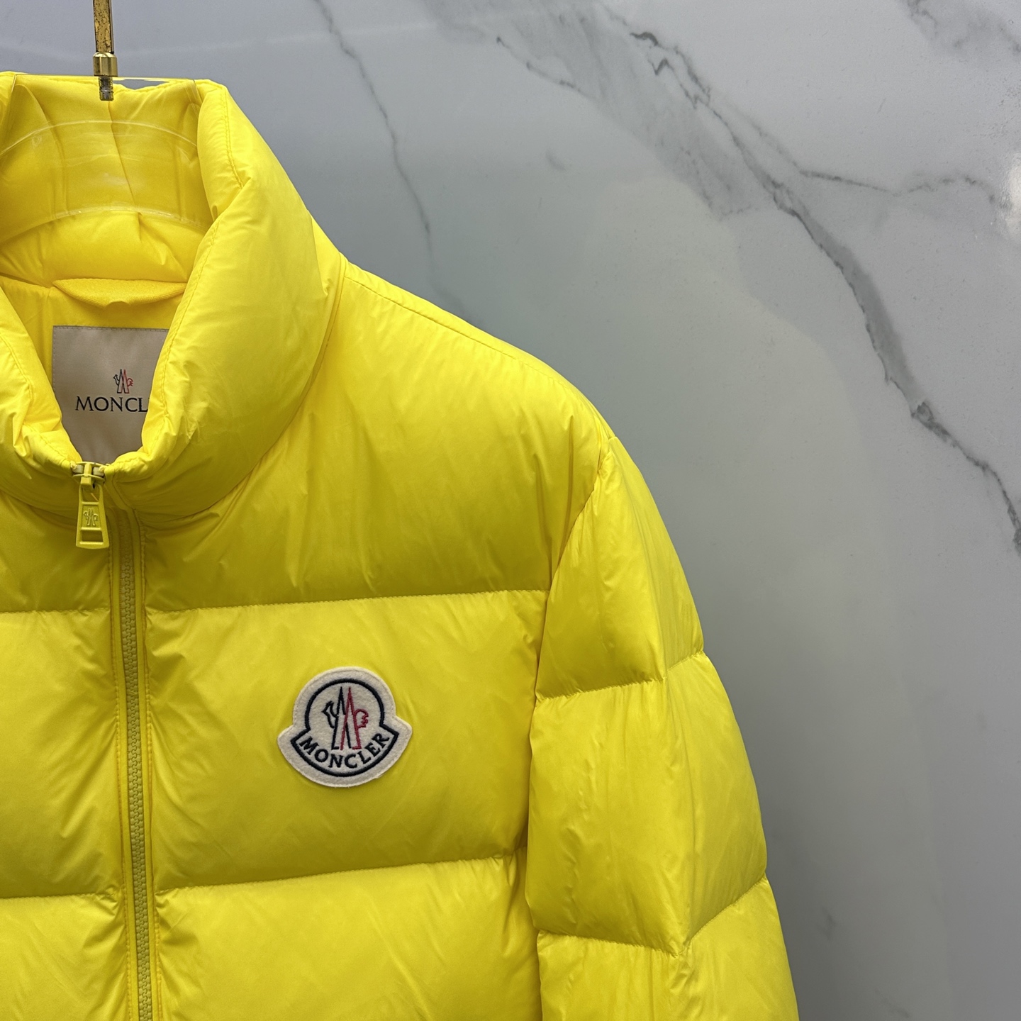 Details: Fashionable down jacket featuring a classic logo and filled with 90% white goose down