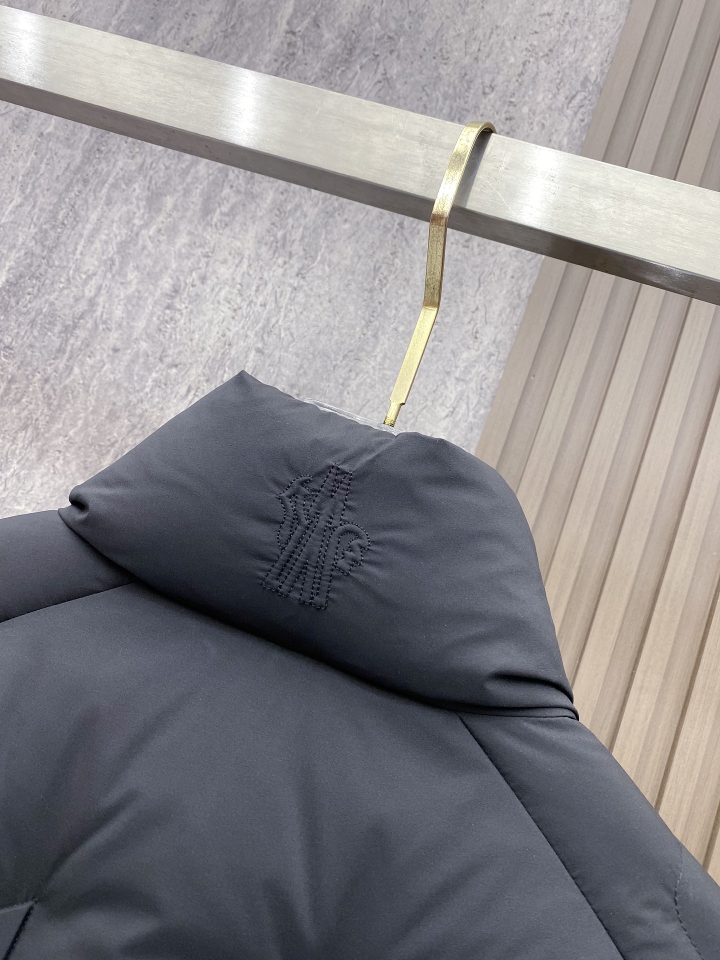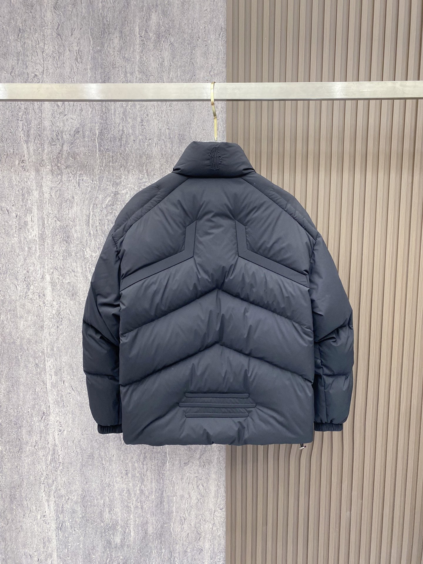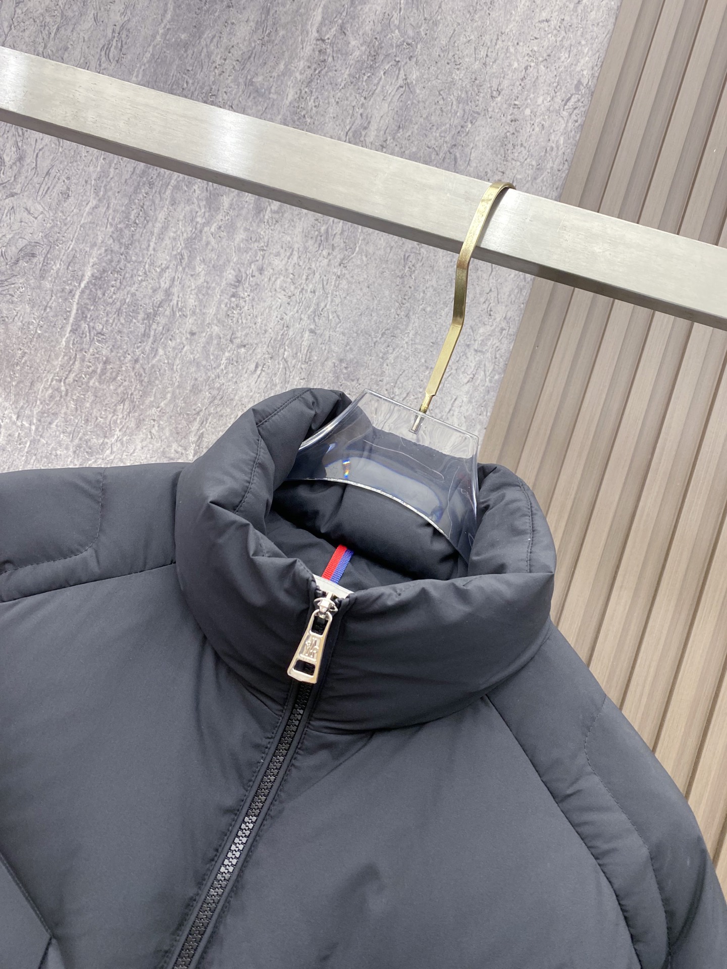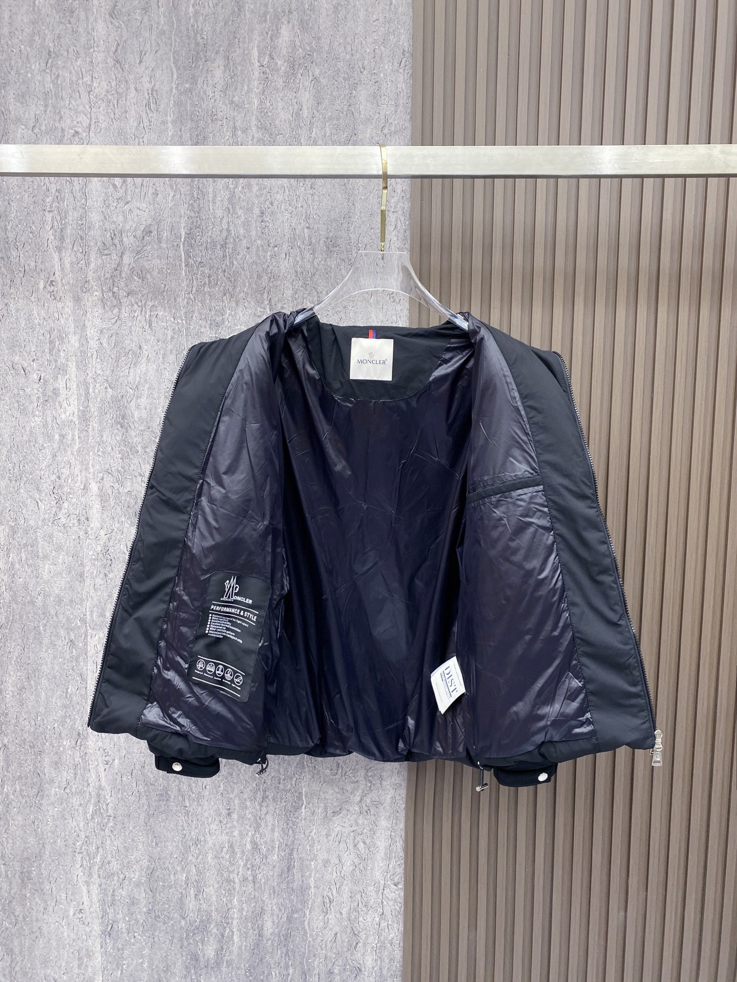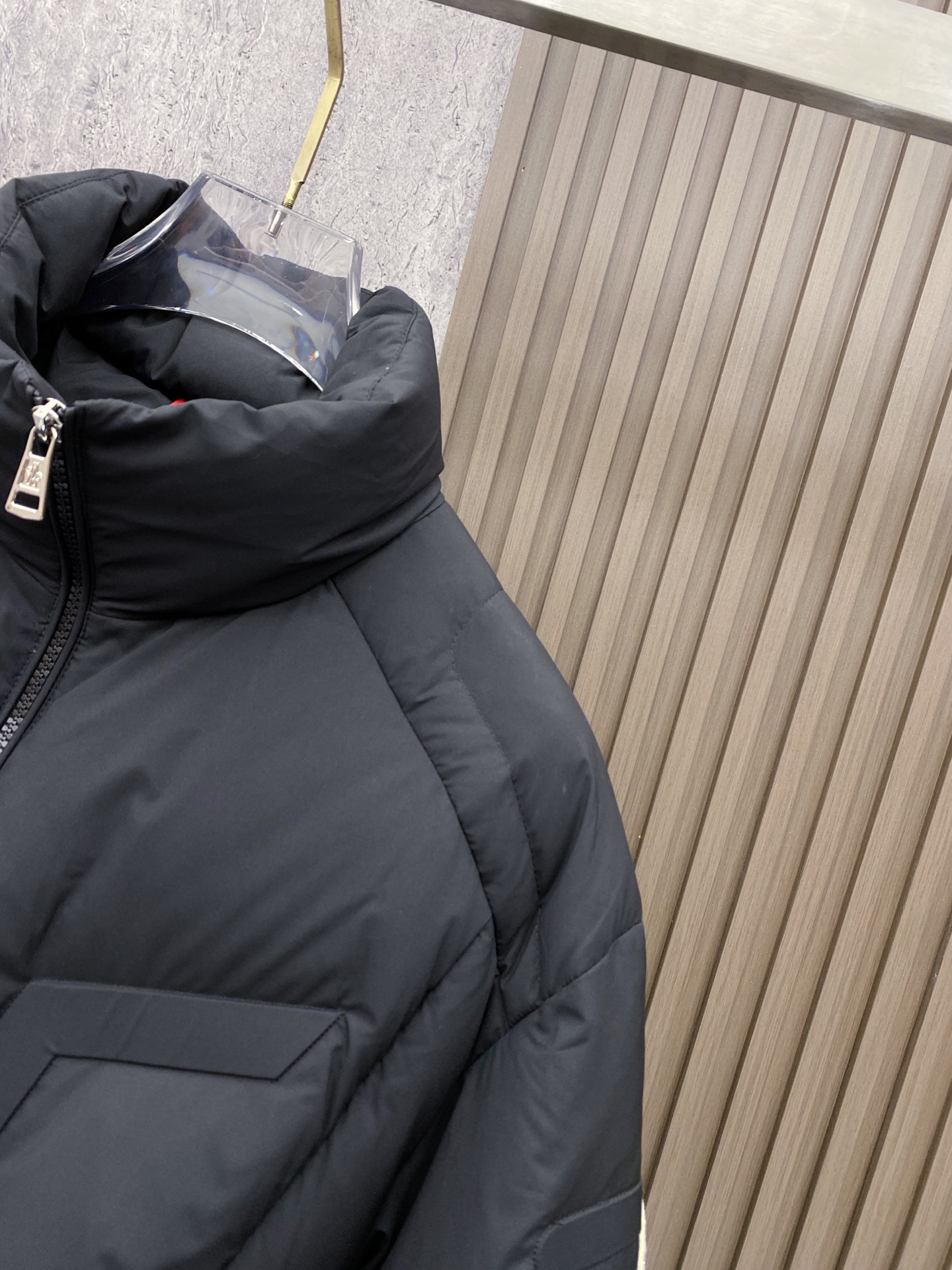 Details: Heavy-duty jacket with a unique cut, stand-up collar, water-repellent nylon fabric, embroidered logo, hidden pockets, and adjustable cuffs and hem